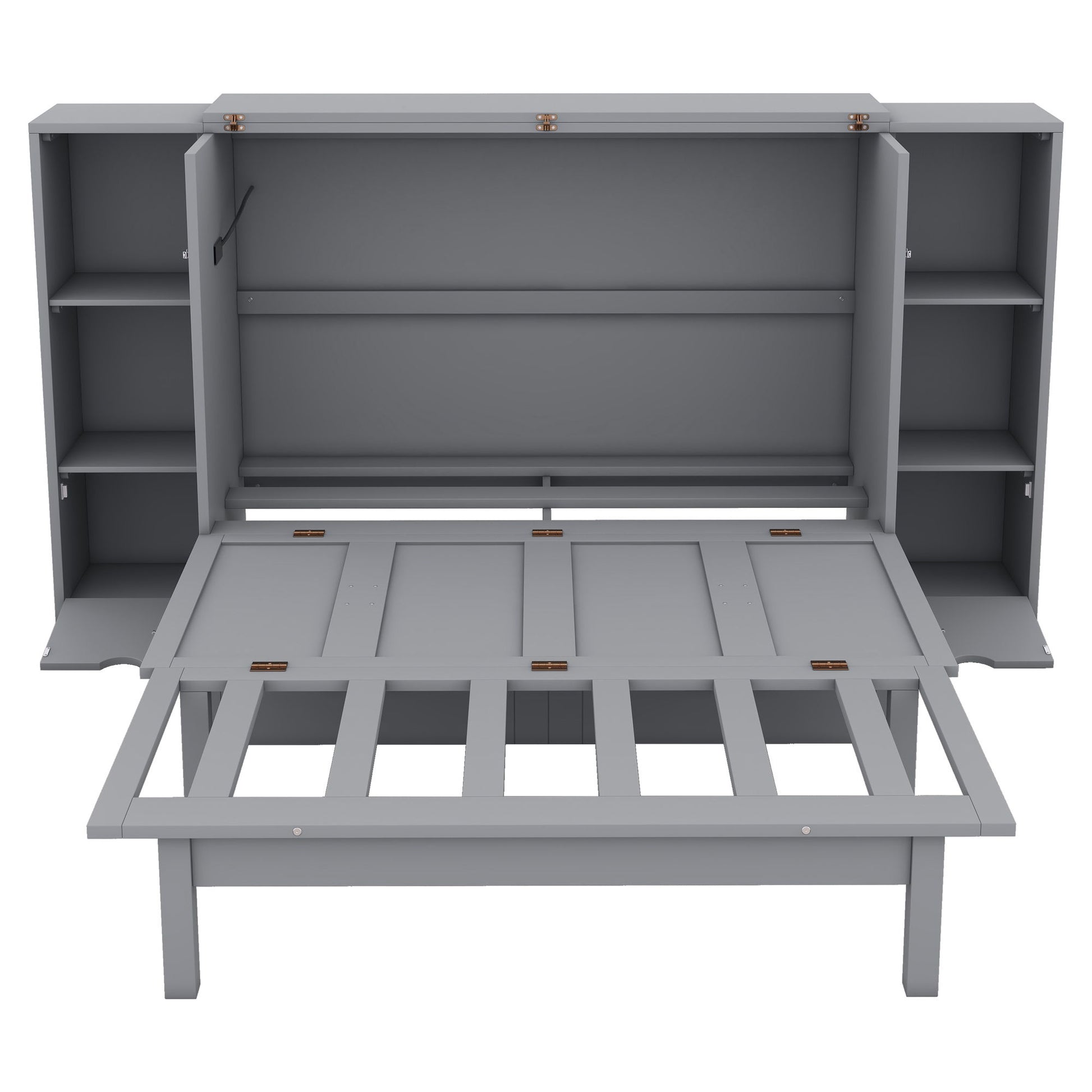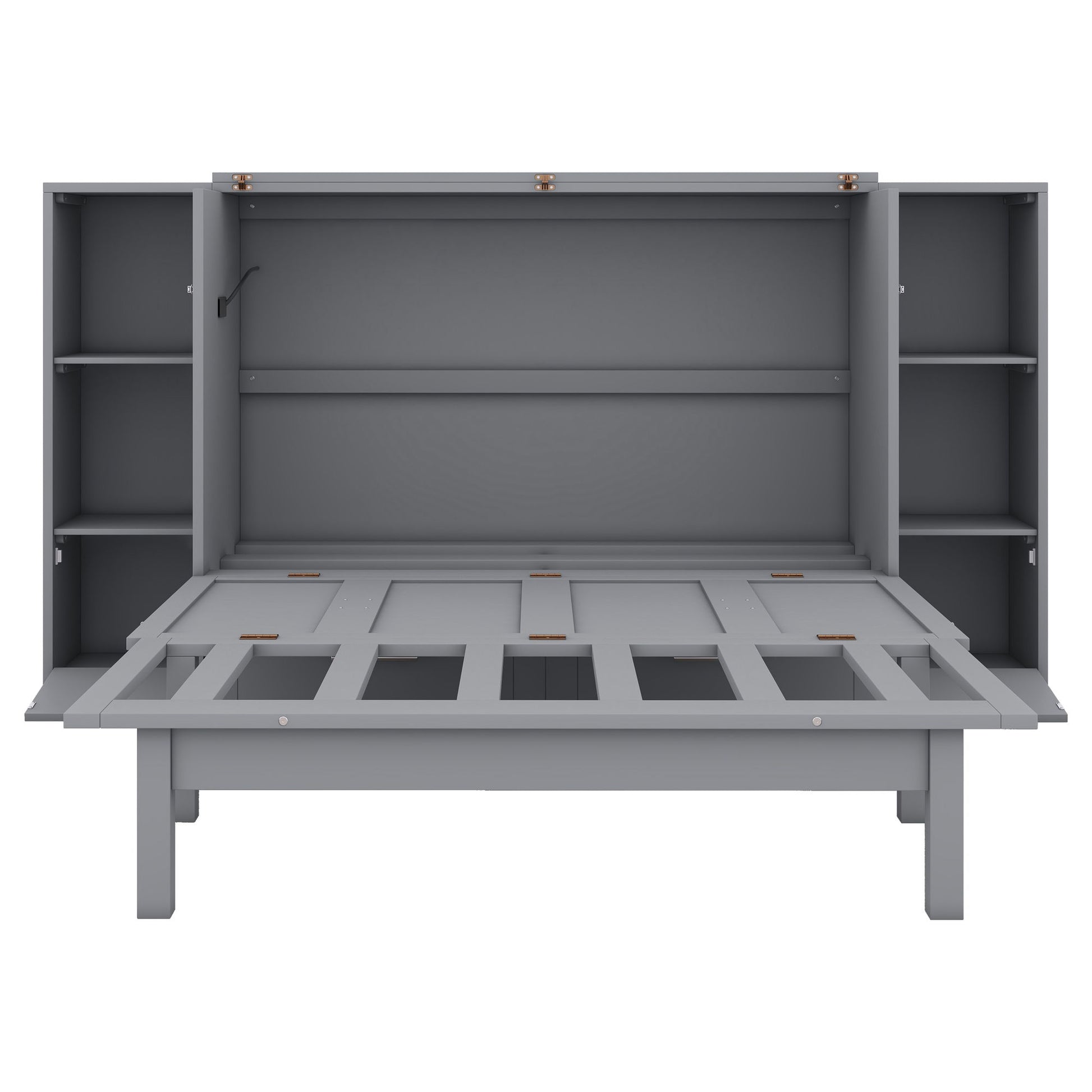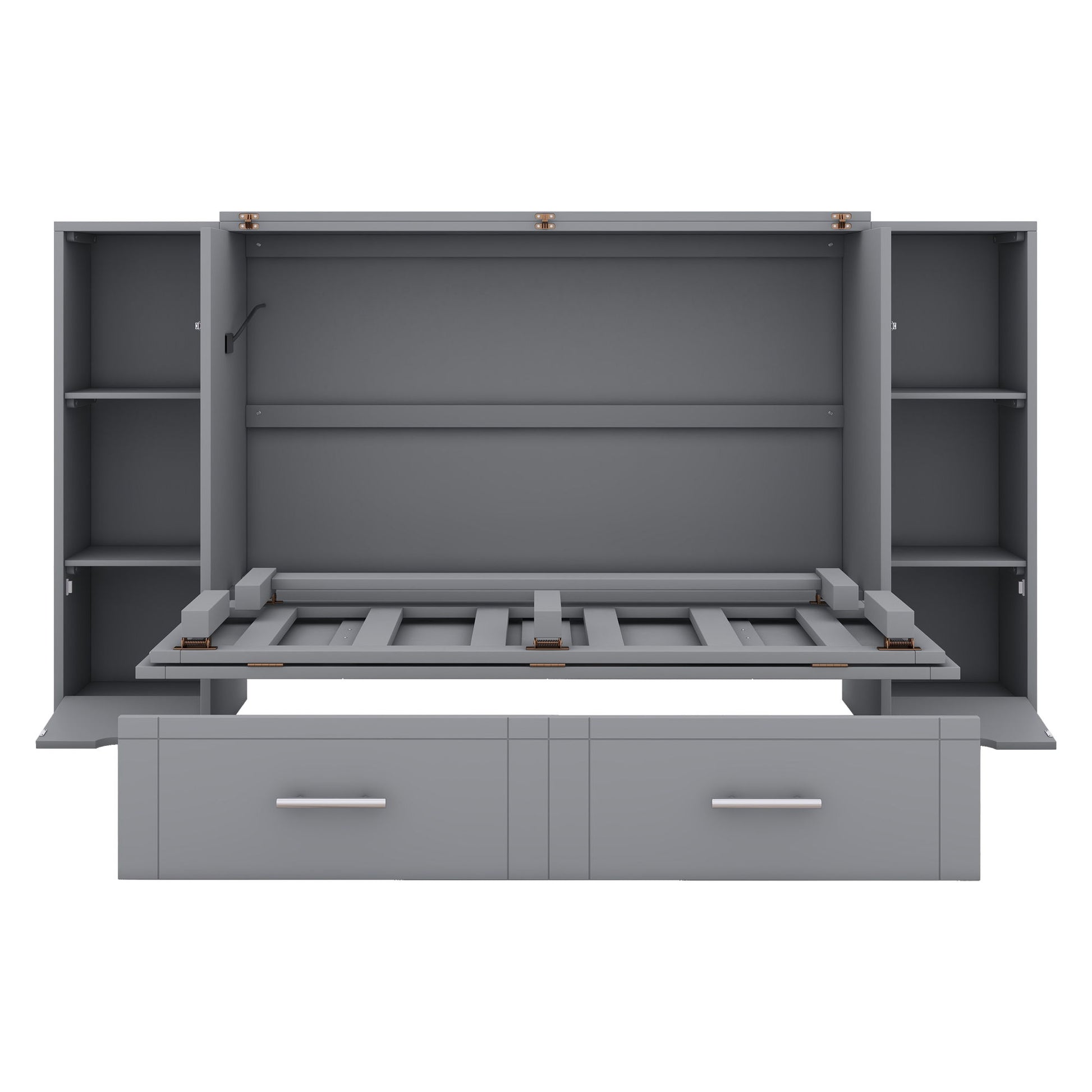 Queen Size Murphy Bed With Shelves, Drawers And USB Ports - Gray