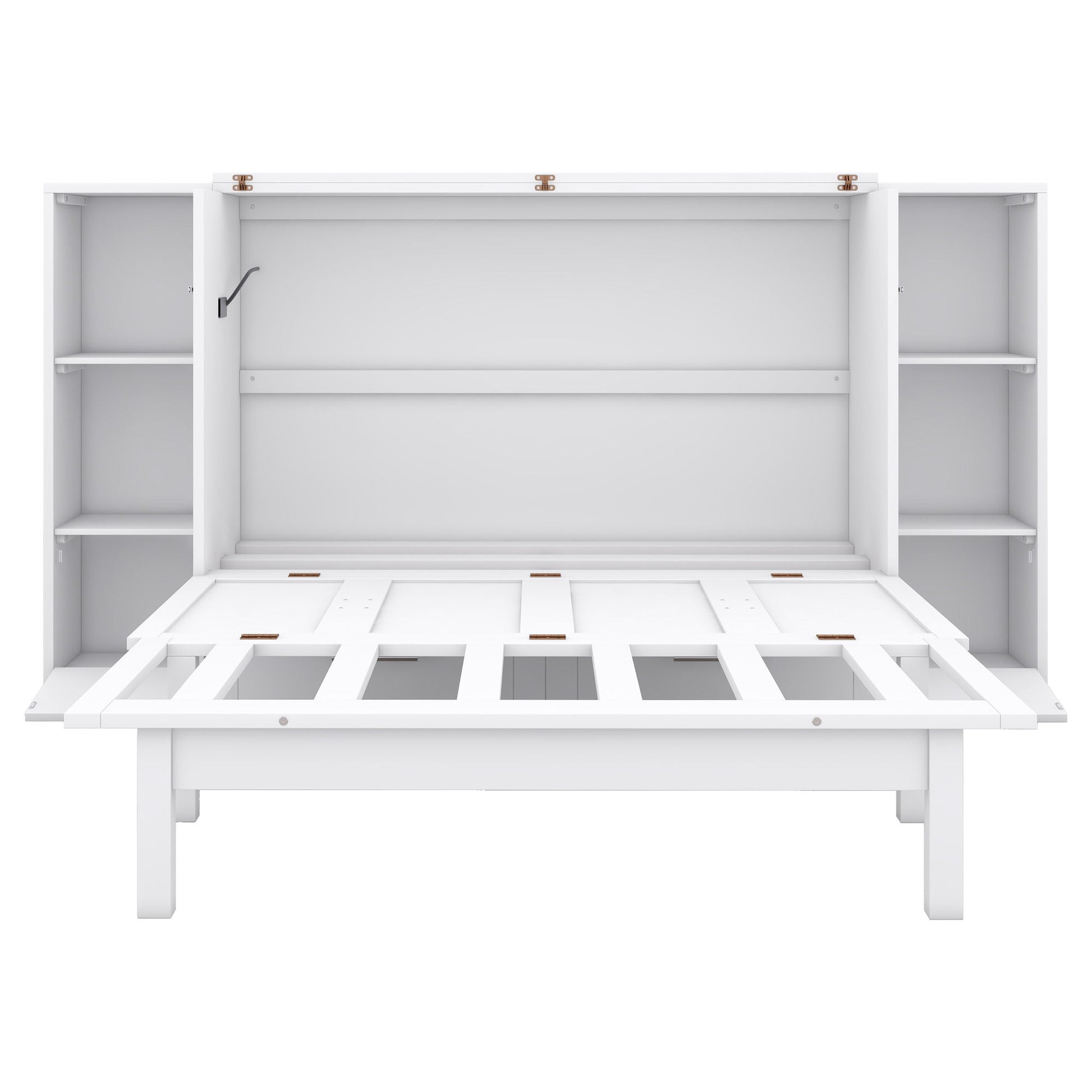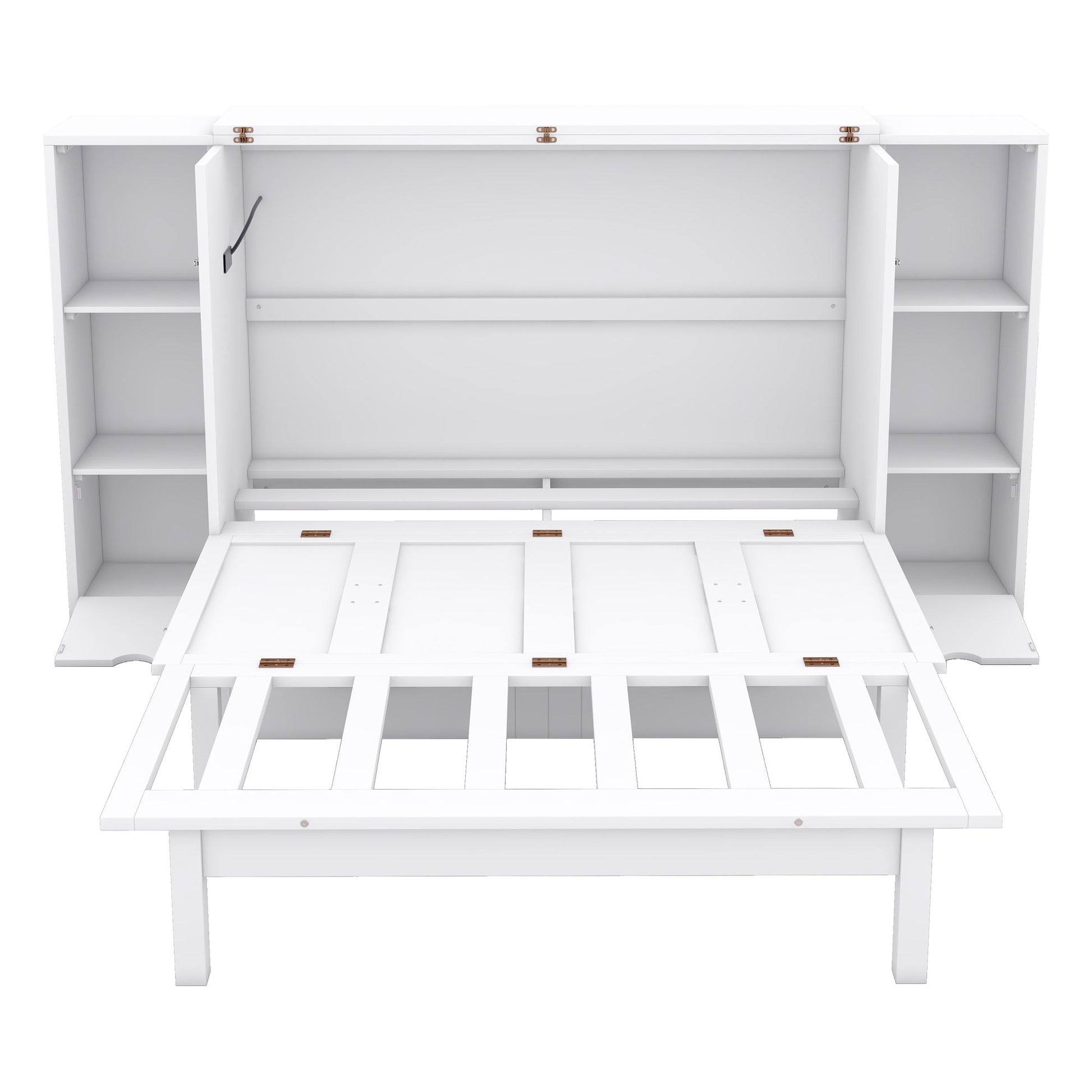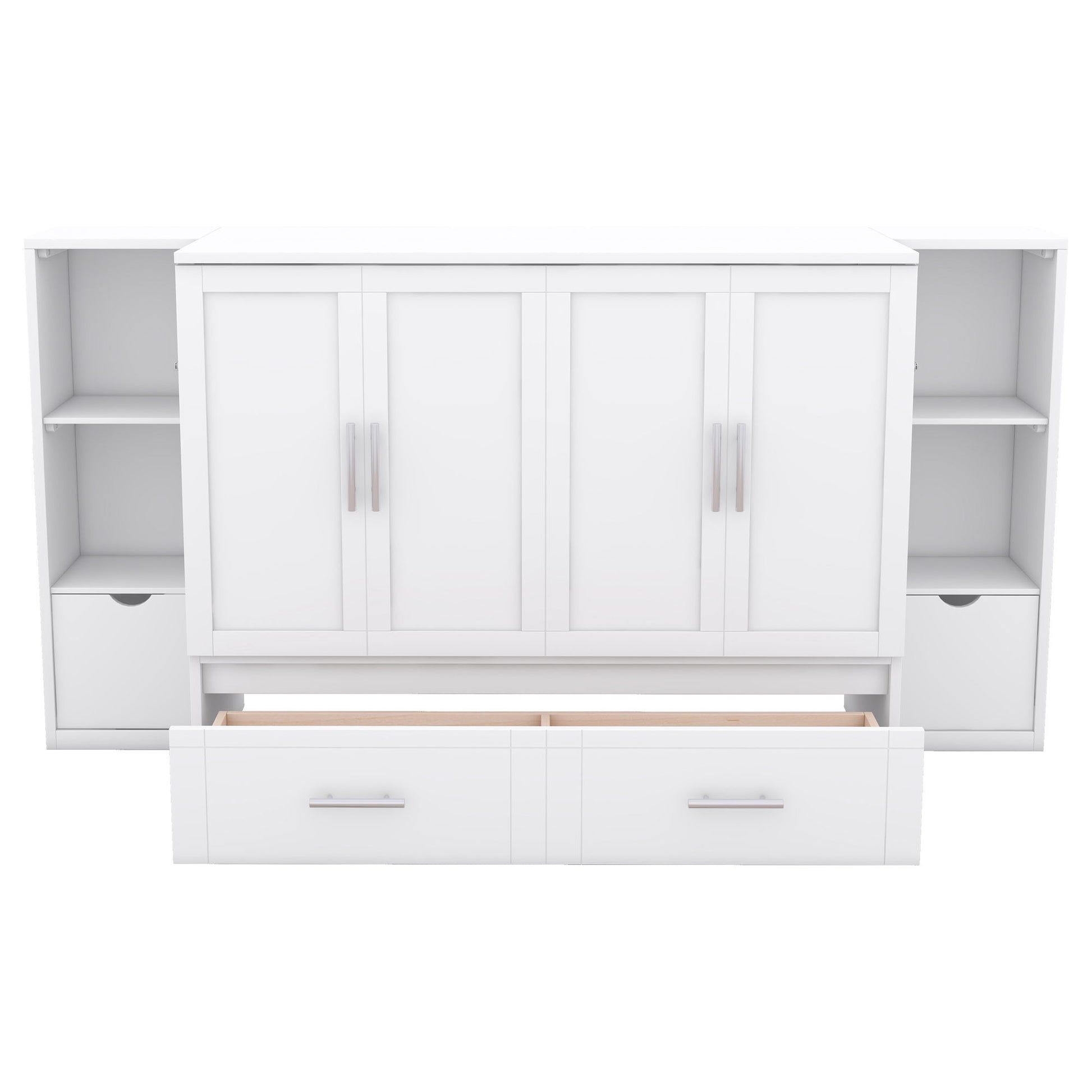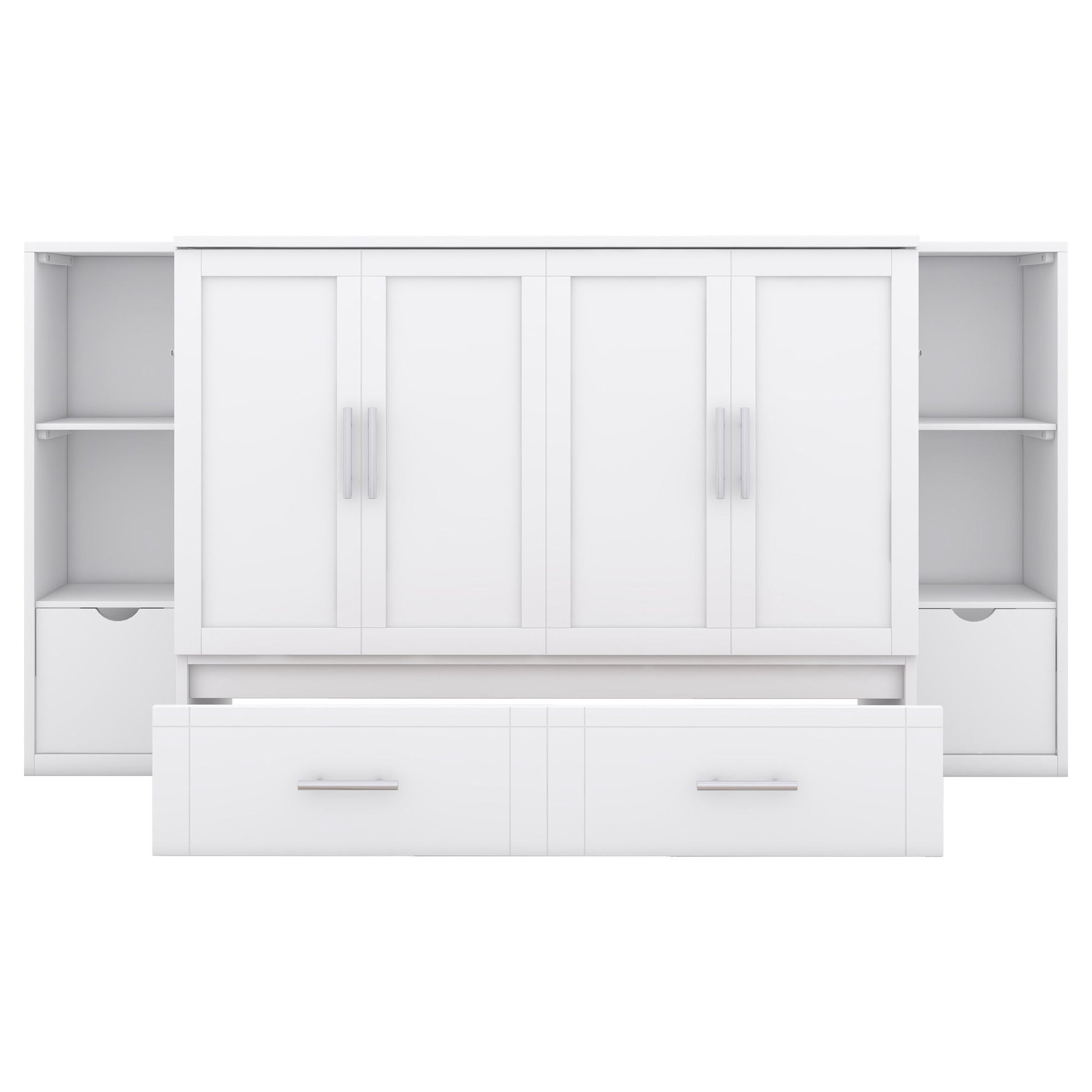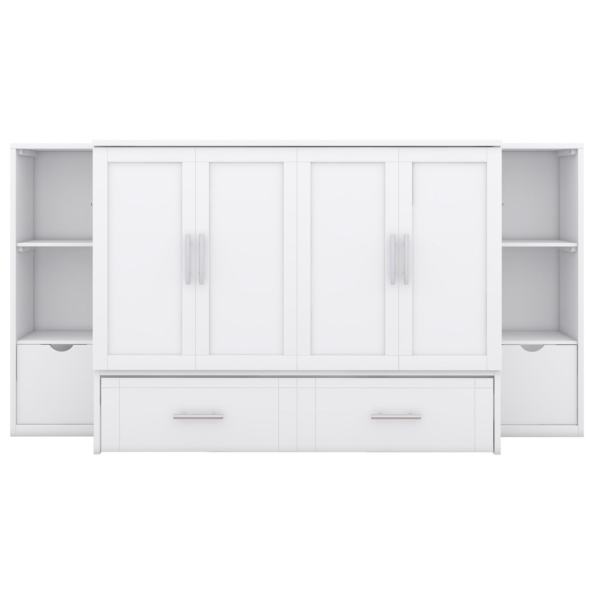 Queen Size Murphy Bed With Shelves, Drawers And USB Ports - White