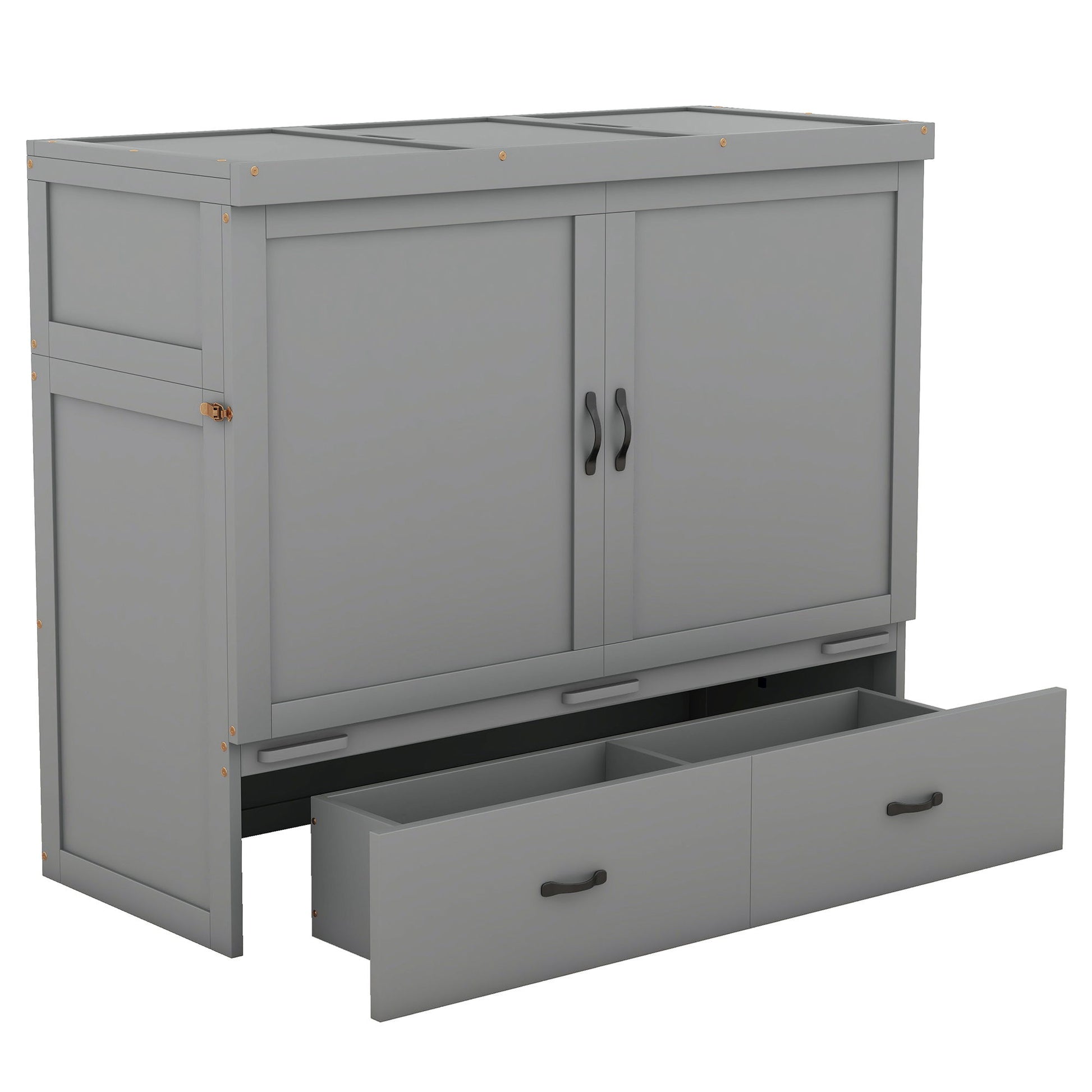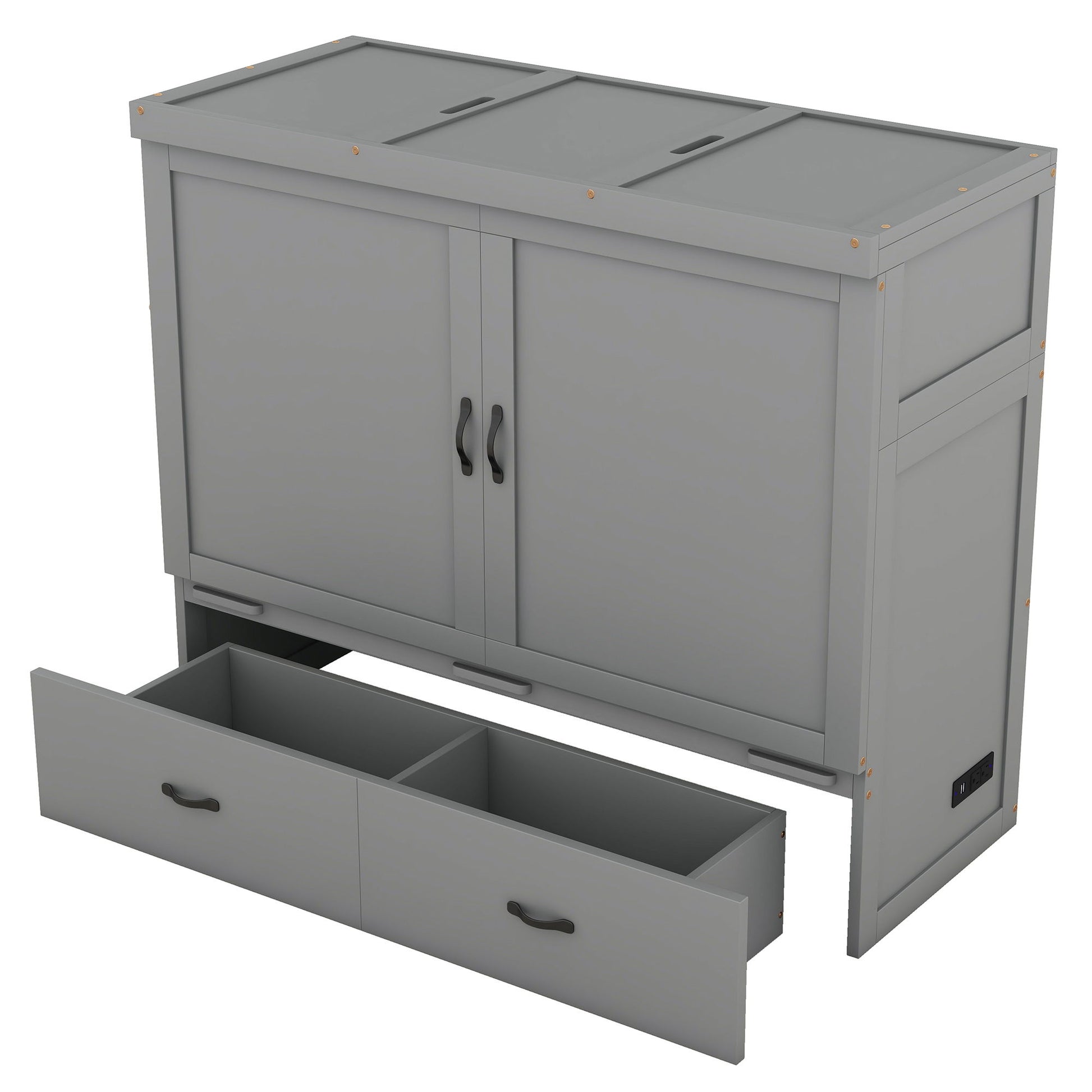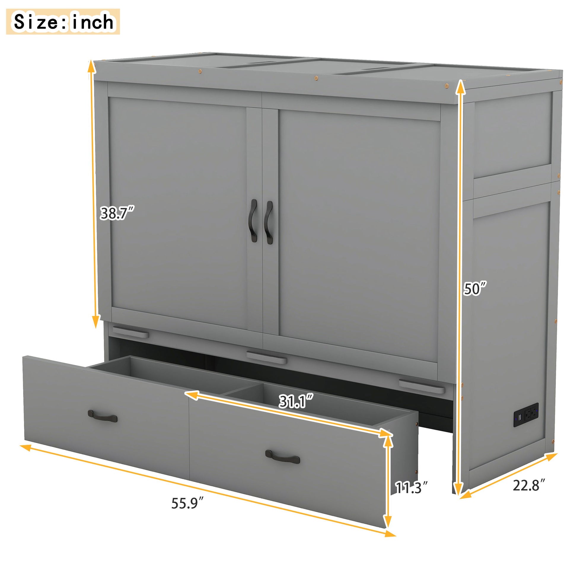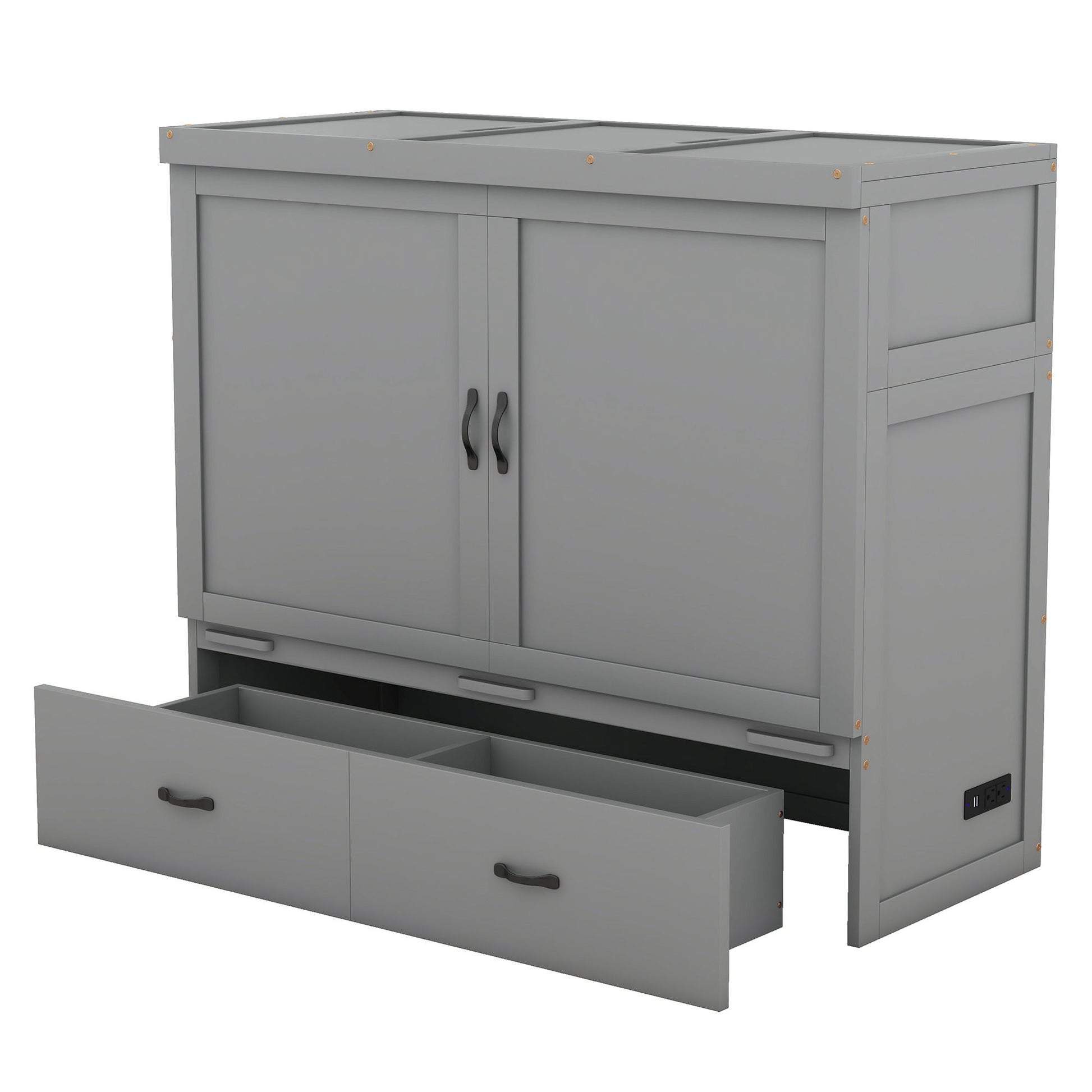 Full Size Murphy Bed With USB Port And A Large Drawer - Gray