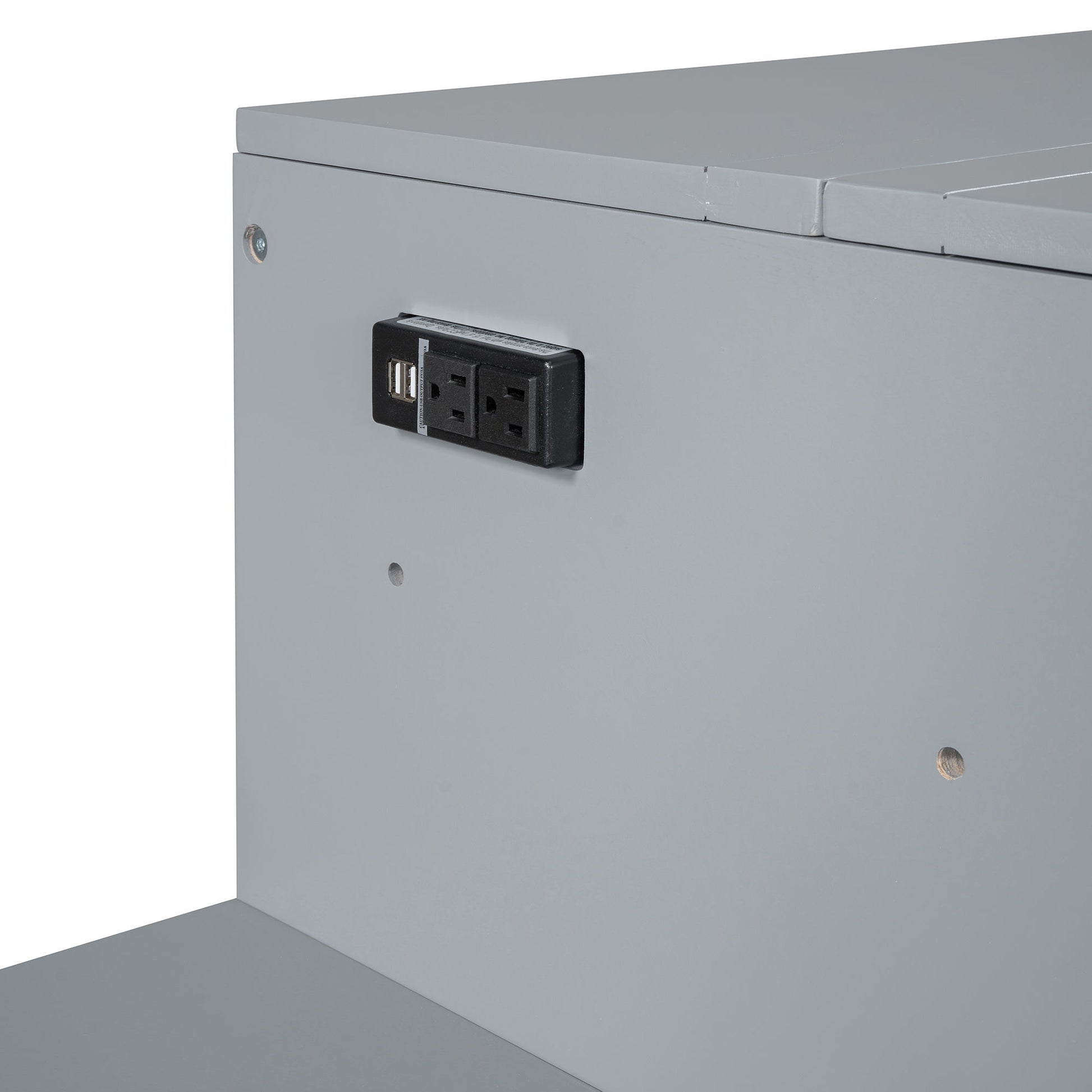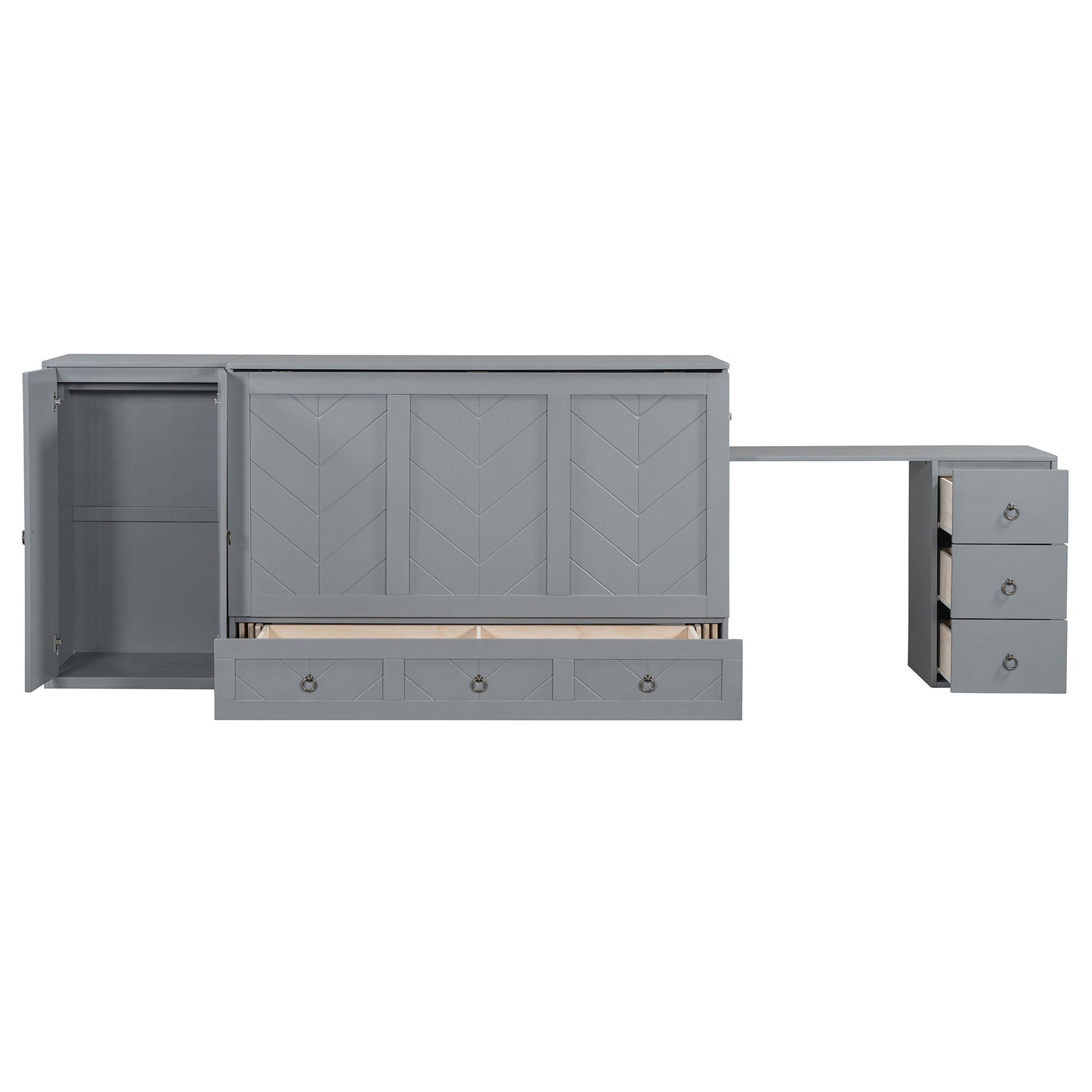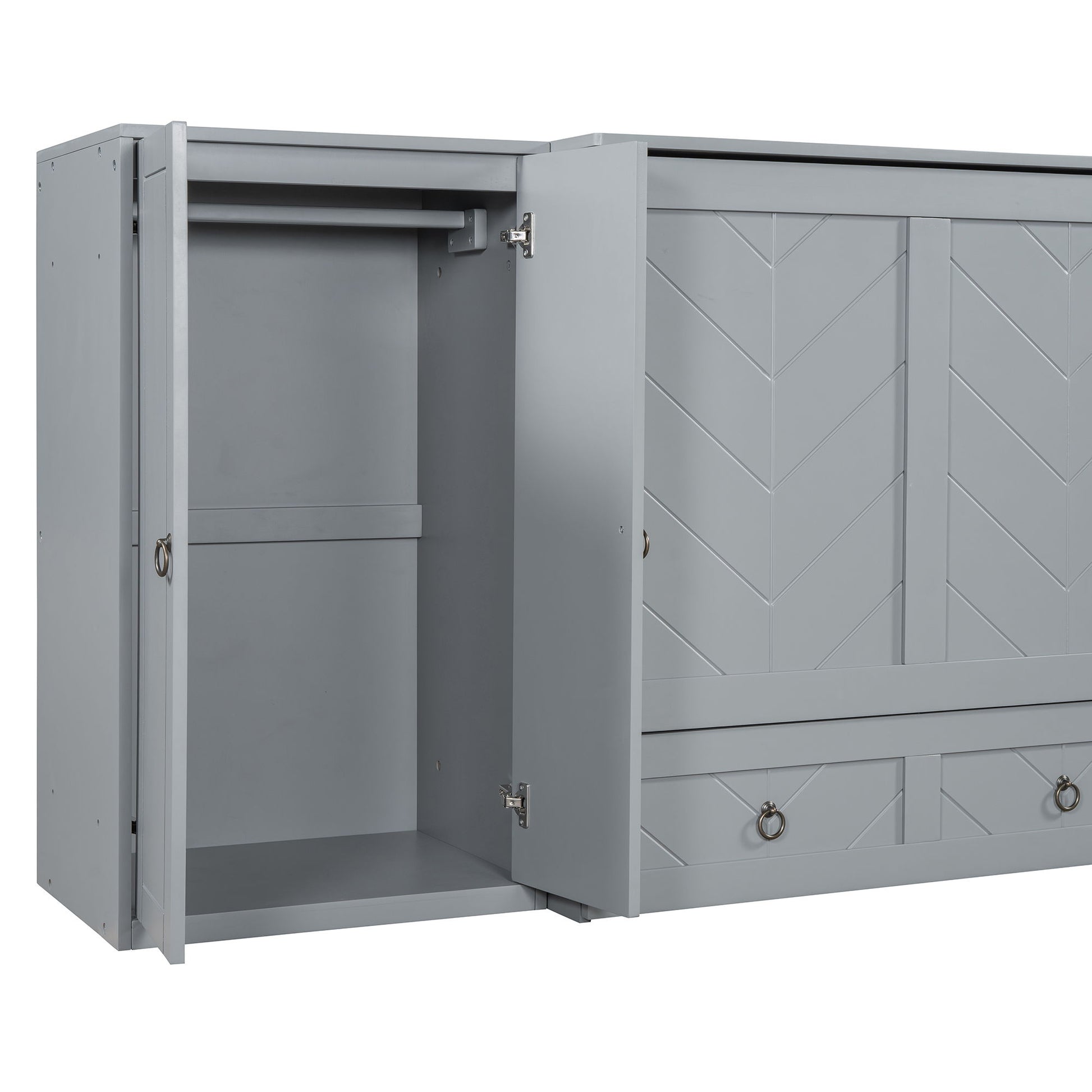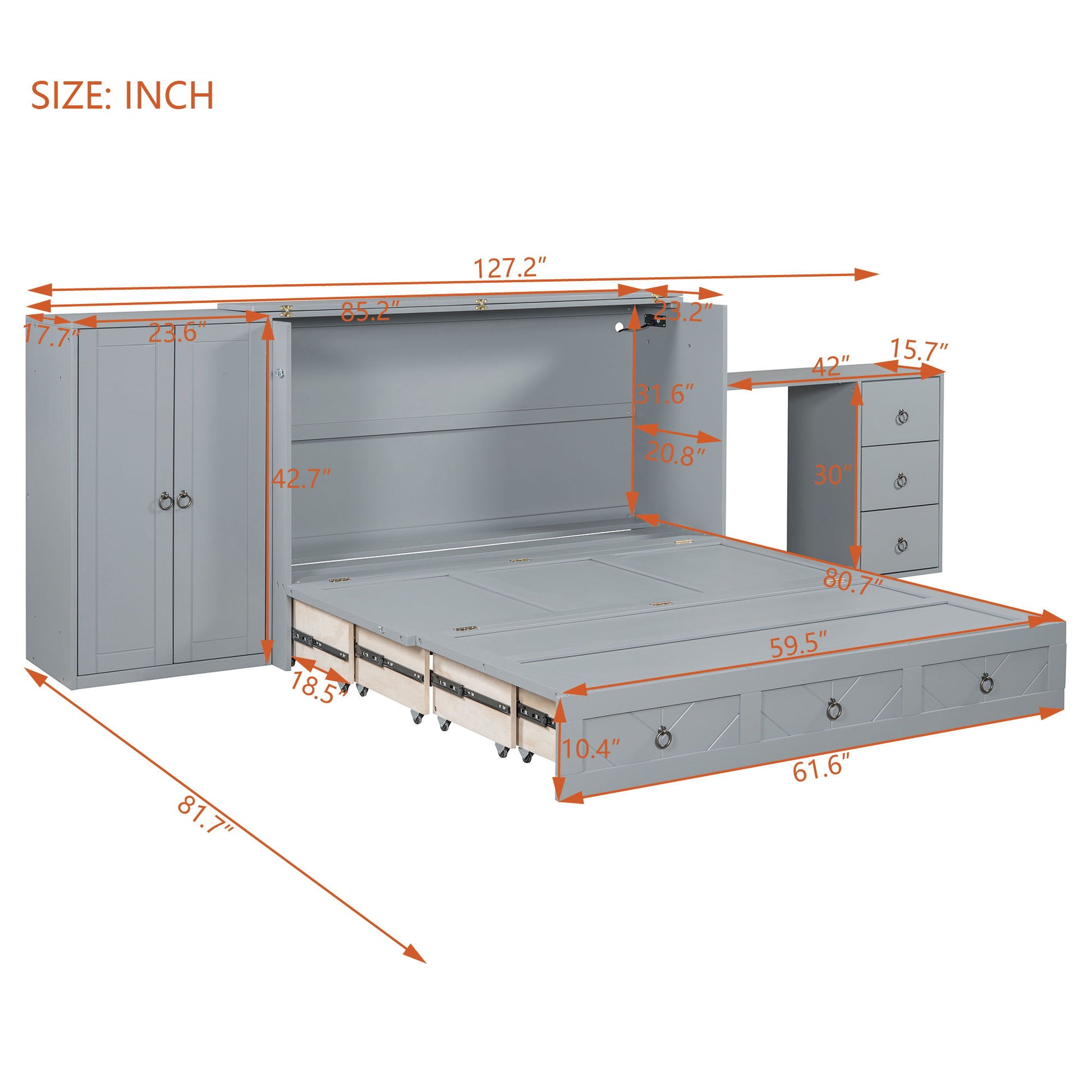 Queen Size Murphy Bed With USB Port, Large Drawer, And Wardrobe / Desk Combo Versatile Cabinet Bed - Gray