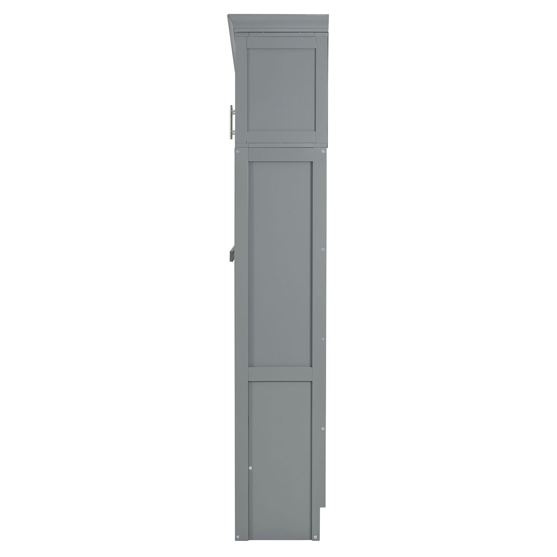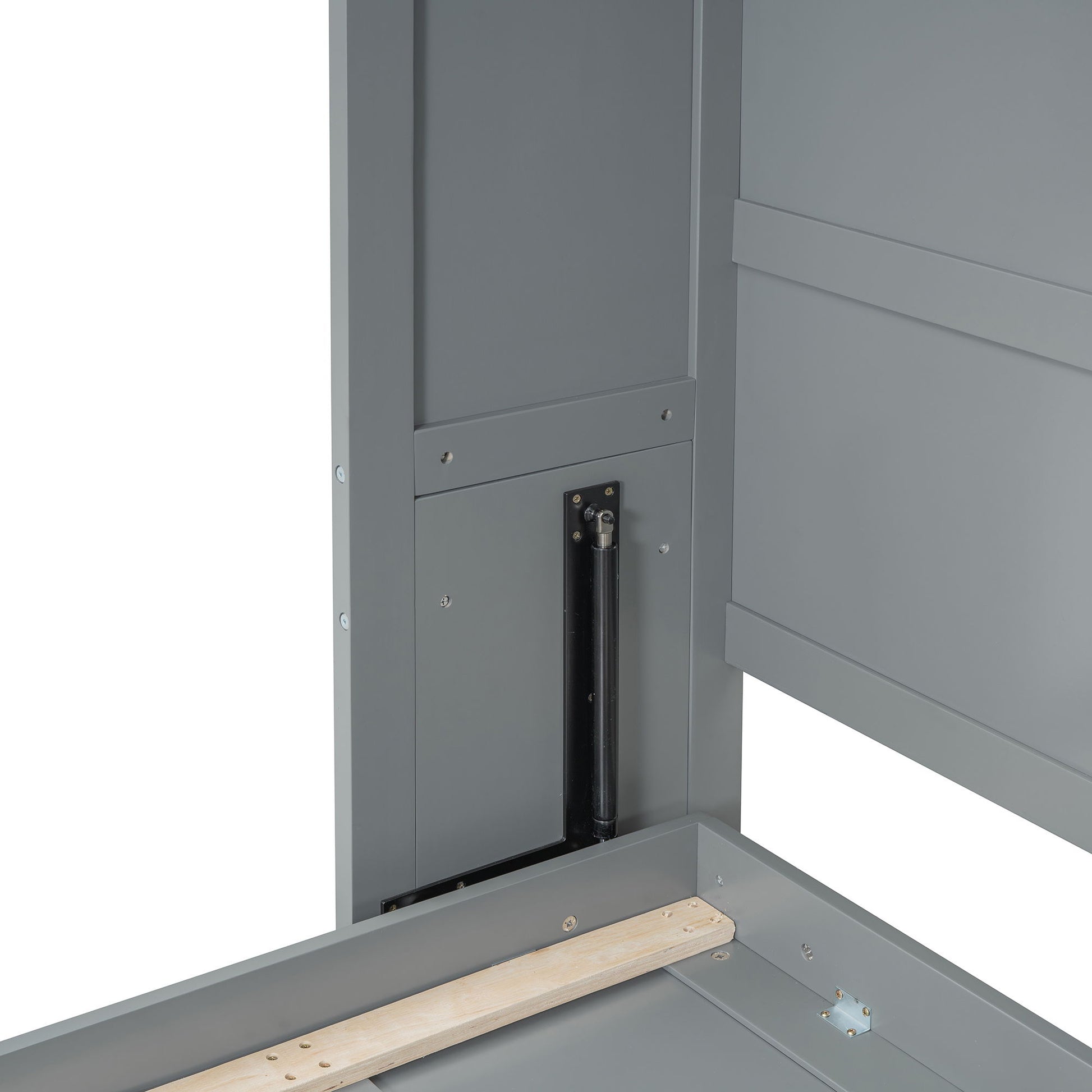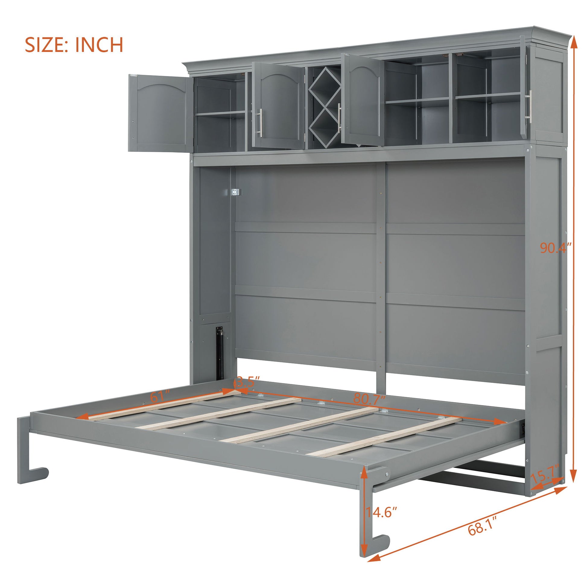 Queen Size Murphy Wall Bed With Top Cabinets & Wine Rack - Gray