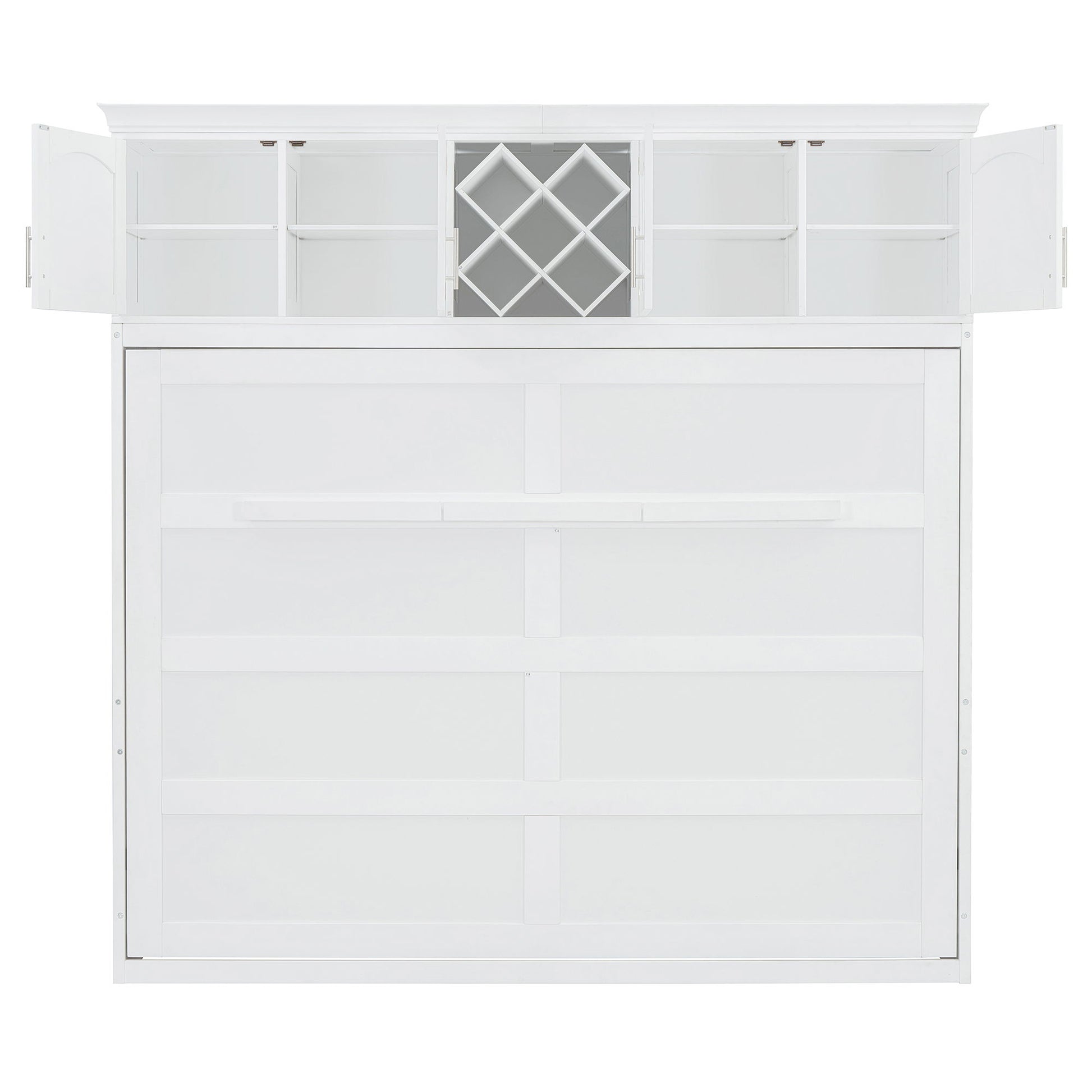 Queen Size Murphy Wall Bed With Top Cabinets & Wine Rack - White