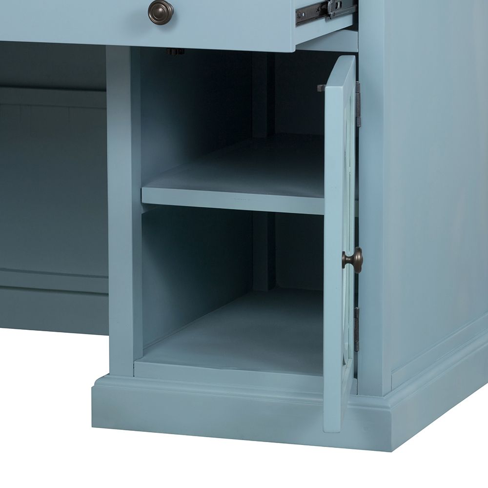 - Stylish Design: This striking blue desk features a half-circle glass front cabinet, adding a modern touch to your workspace.