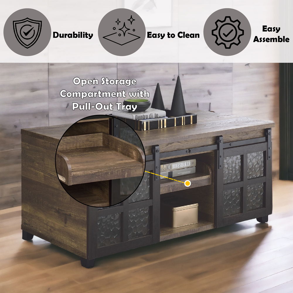 Nineel - Coffee Table - Obscure Glass, Rustic Oak & Black