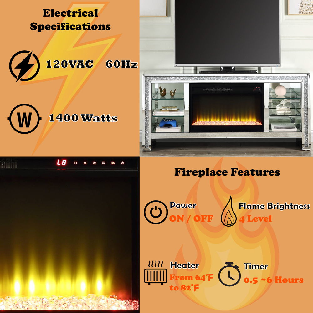 - Materials: Fireplace, Composite Wood, Mirror, Acrylic Diamond