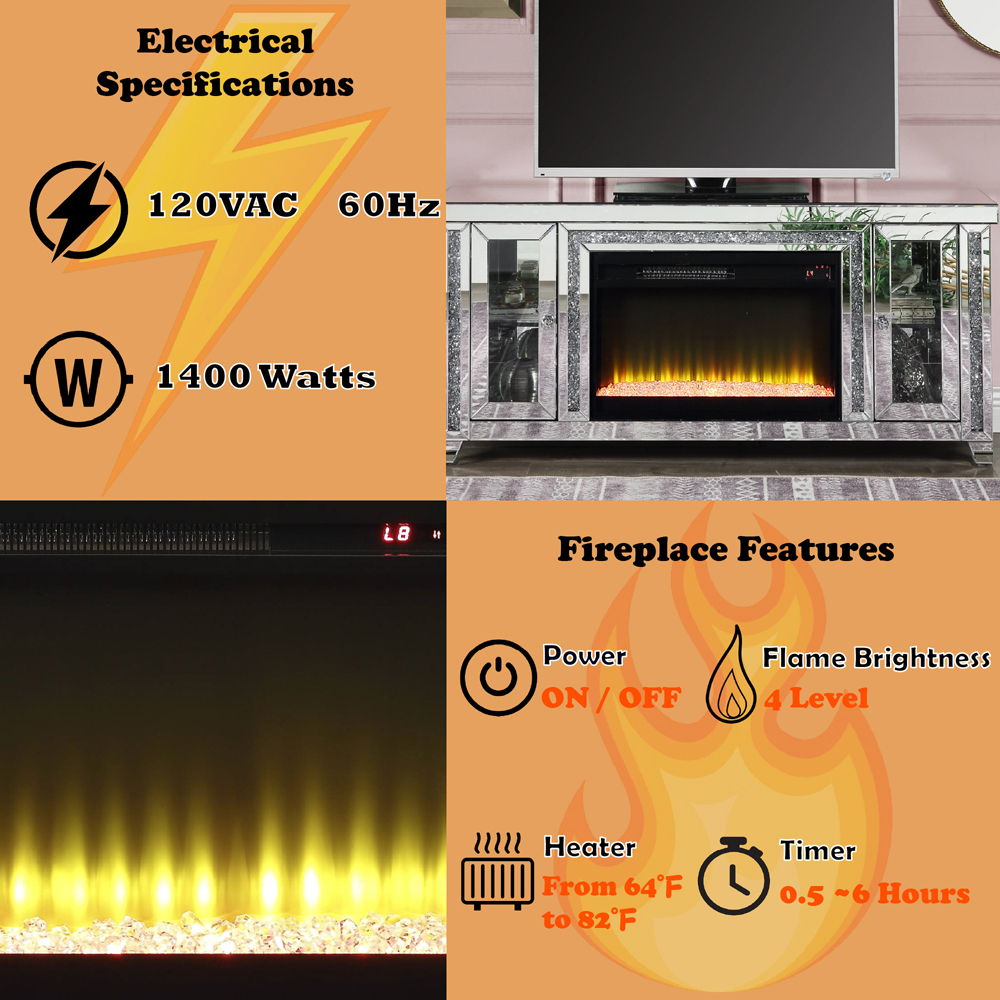 - Materials: Fireplace, Composite Wood, Mirror, Acrylic Diamond