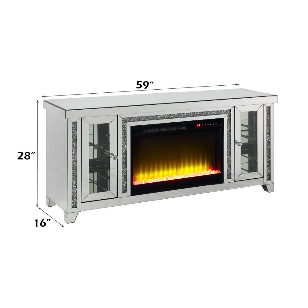 Noralie - TV Stand With Fireplace & LED - Mirrored & Faux Diamonds