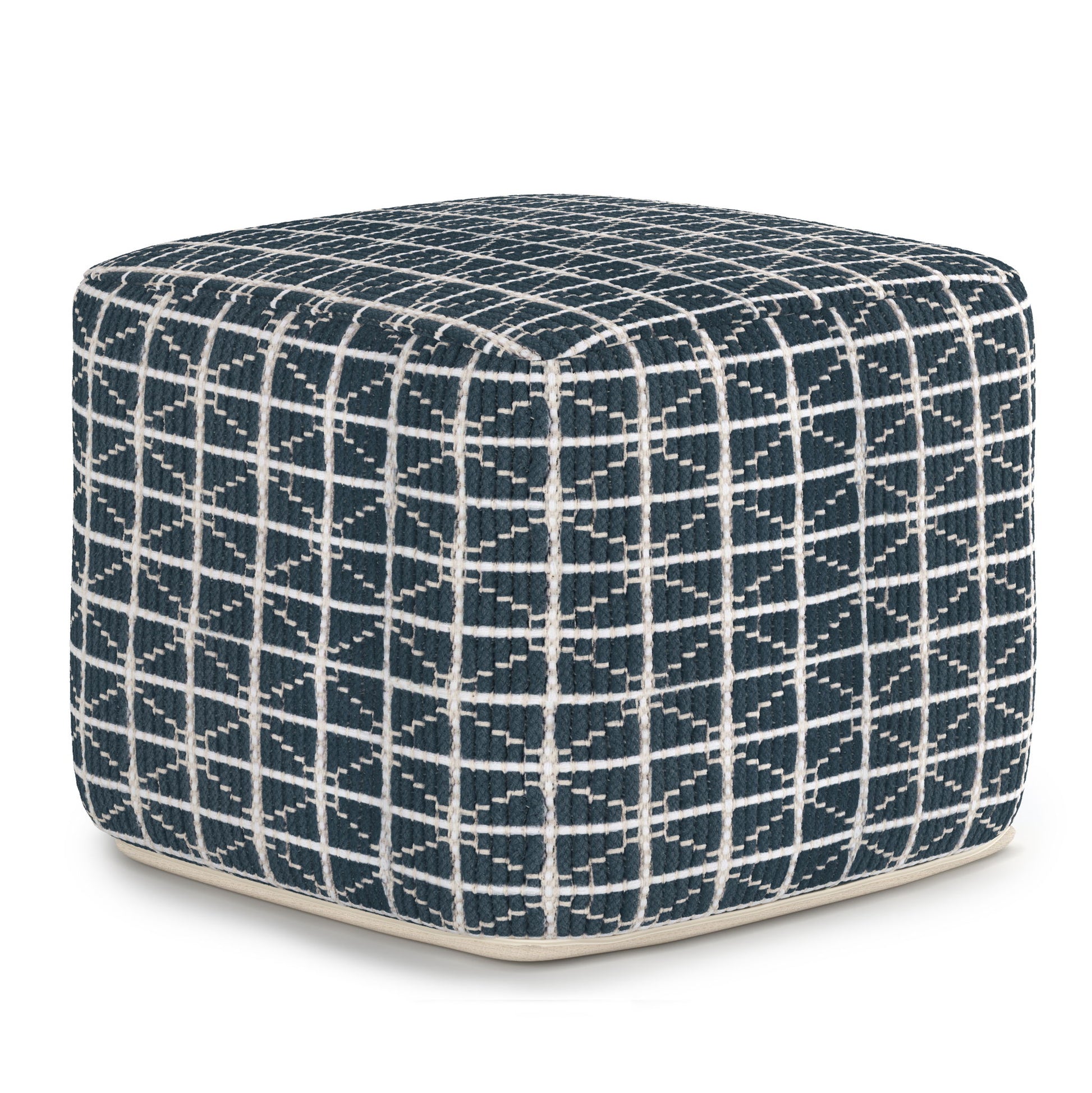 - Upholstered with Hand Woven Dark Blue and White Cotton