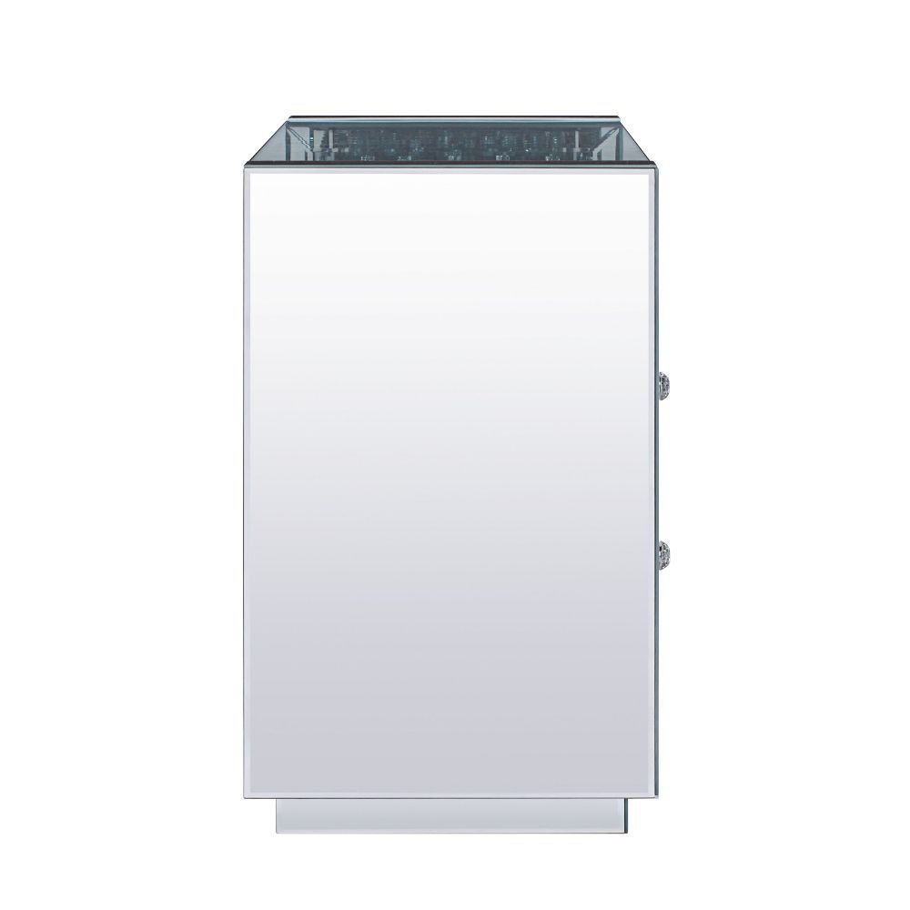 - Features: Beveled Mirrored Finish, Clear Glass Top with Faux Crystals Inlay (Back Unfinished)