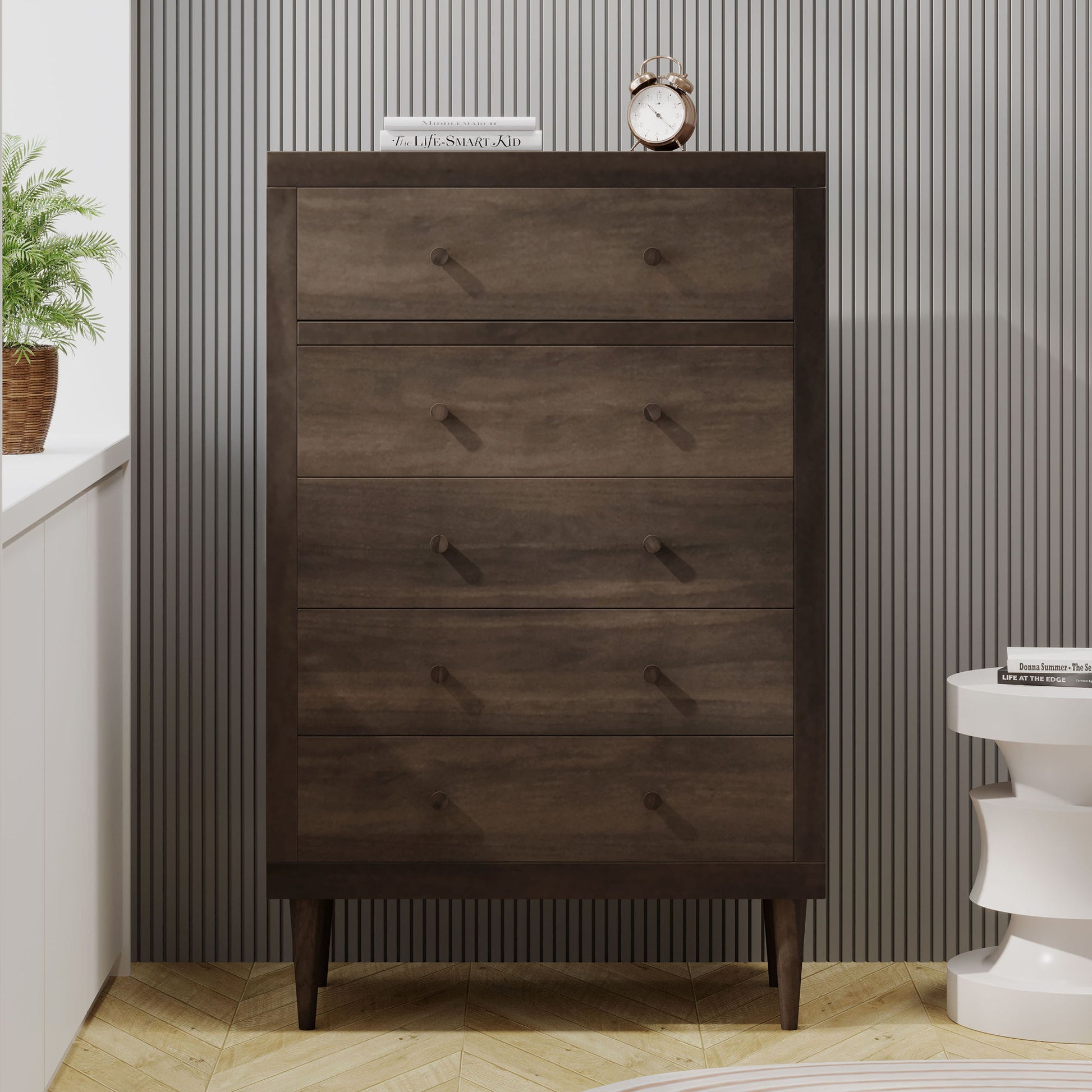 Nystrom - Mid Century Modern 5 Drawer Dresse - Walnut