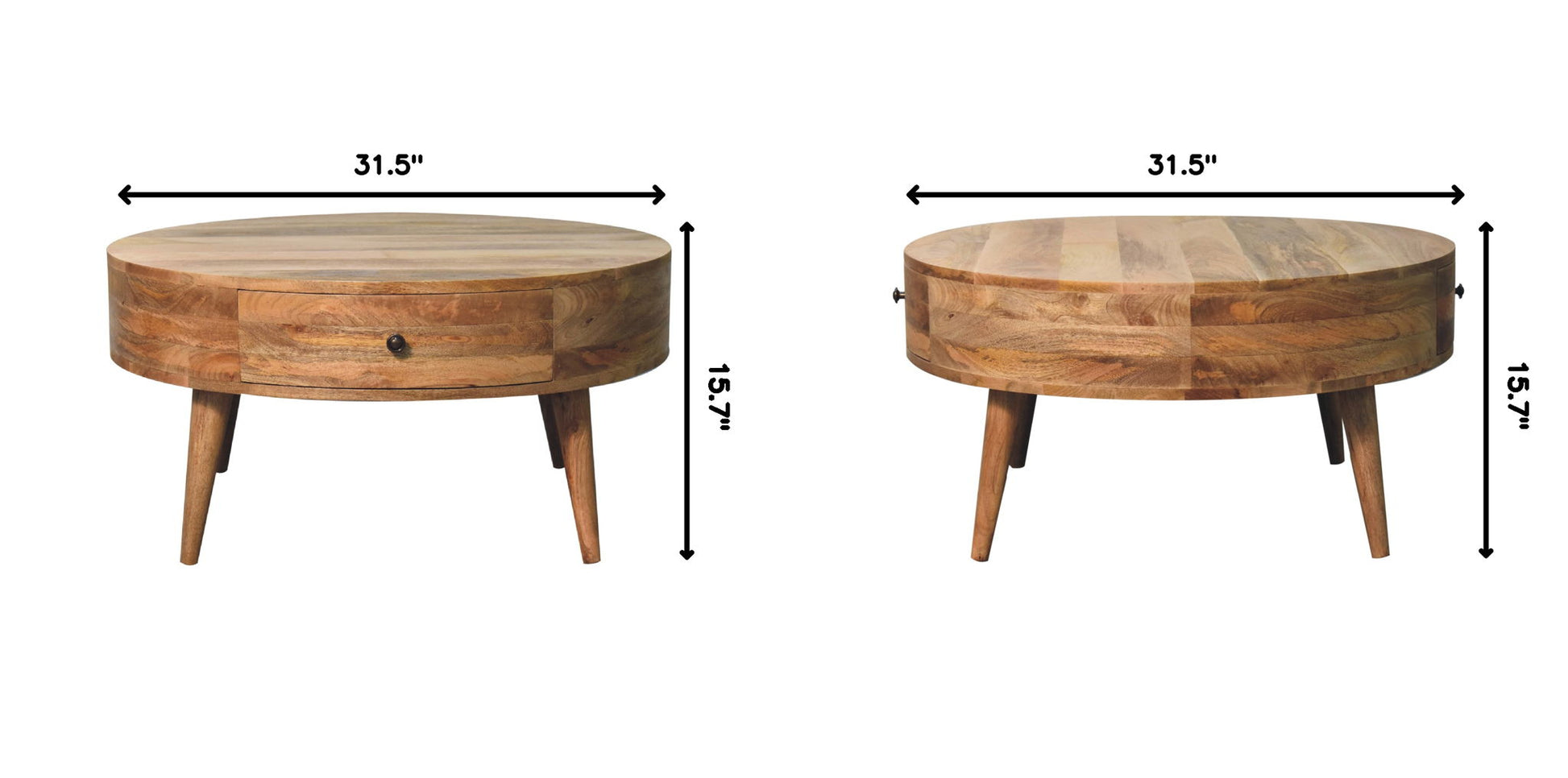 - Odyssey Table - This beautifully designed table is constructed from 100% solid mango wood in a finish and has a smooth circular design along with a shiny brass knob on the drawer for easy access. A lovely, simple addition and accent piece for the home which can be incorporated with different interiors and styles of furniture.
