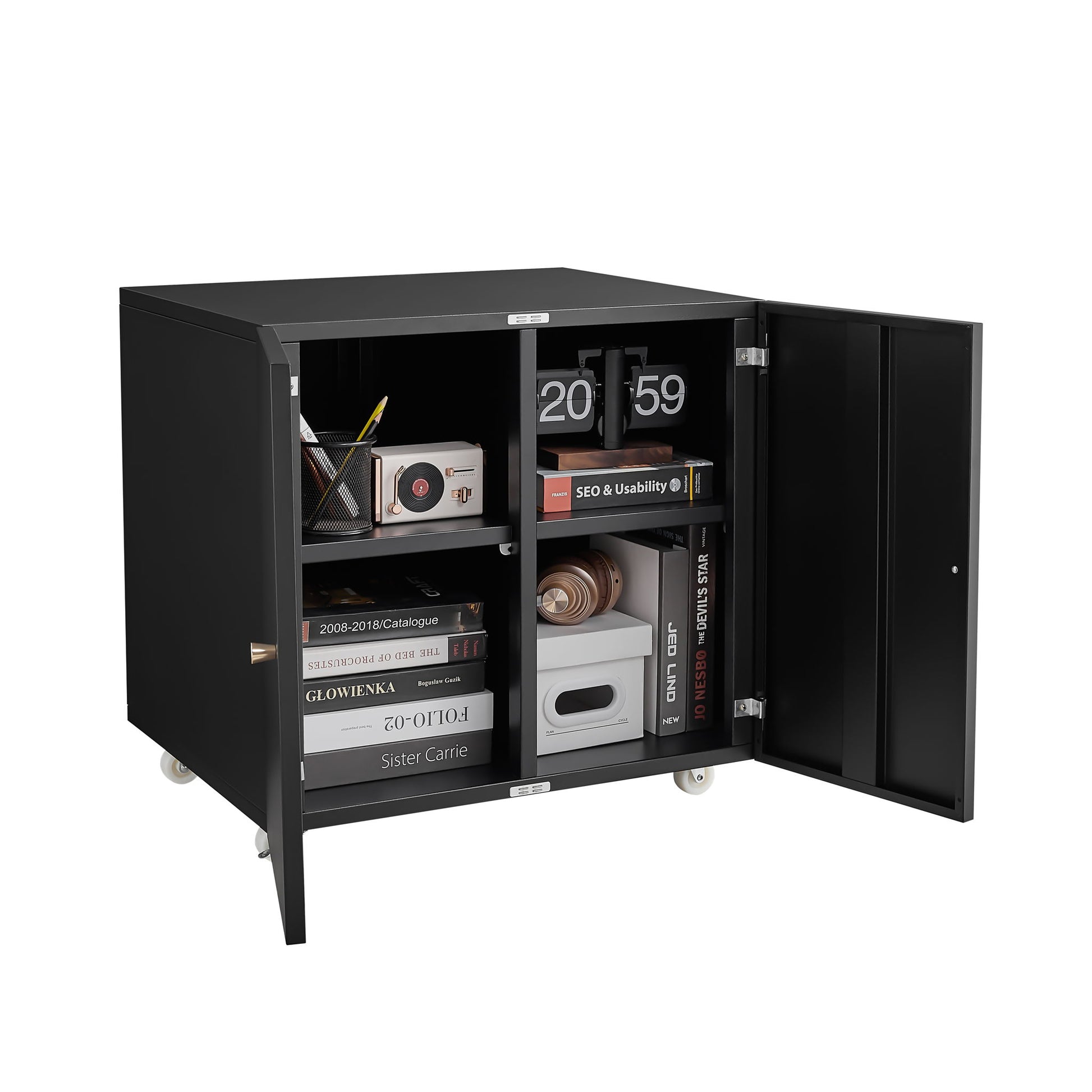 26" Office Furniture Copier Cabinet 2 Door Steel Copier Stand Mobile Pedestal File Printer Stand - Black