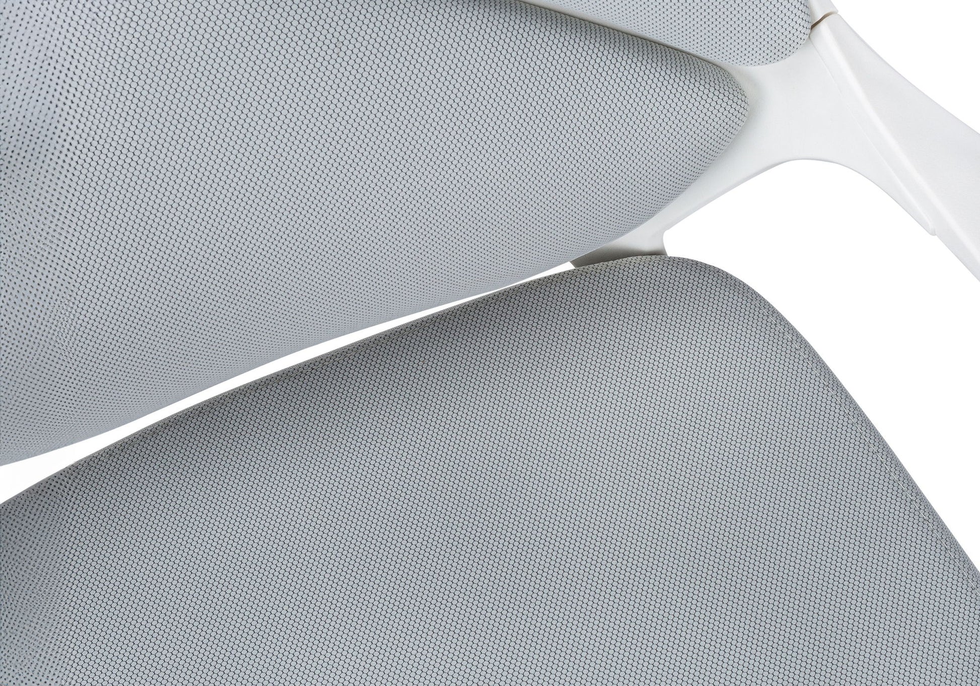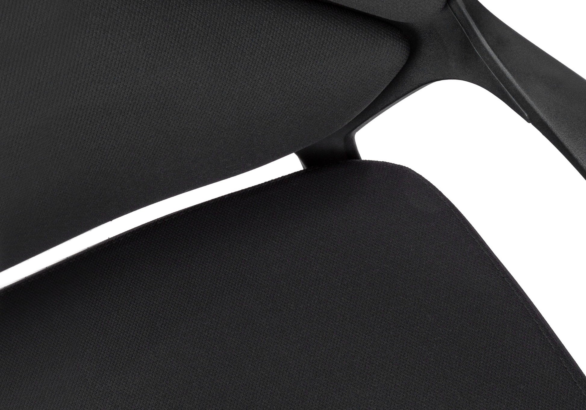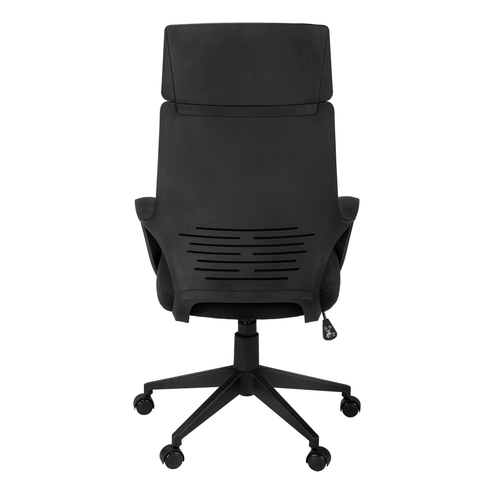 - Design and Material: This high-back executive office chair features a contemporary design with fixed armrests in a sleek finish. It is upholstered in soft, polyester fabric that complements modern office aesthetics.