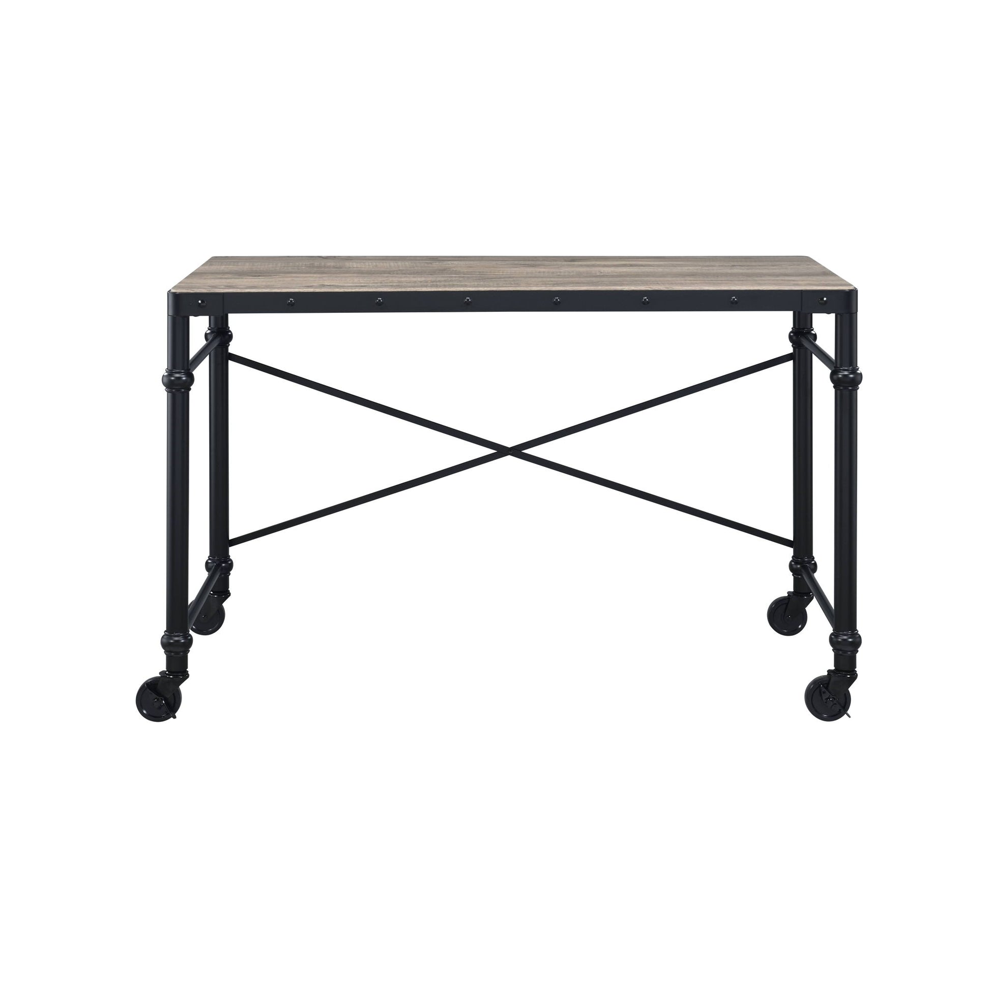 - Industrial Aesthetic: The writing desk features a rectangular wooden tabletop with nailhead accents and a metal base, creating a bold, industrial style that complements modern interiors.