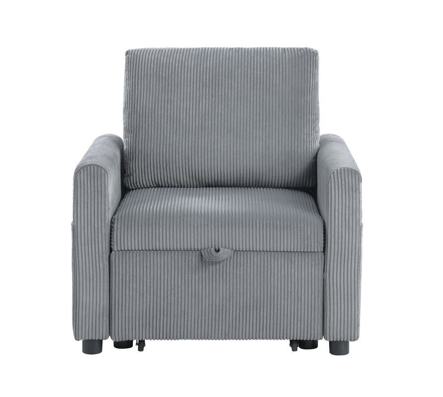 Oswin 33"W Gray Corduroy Armchair with Pull-Out Chaise and Side Pocket