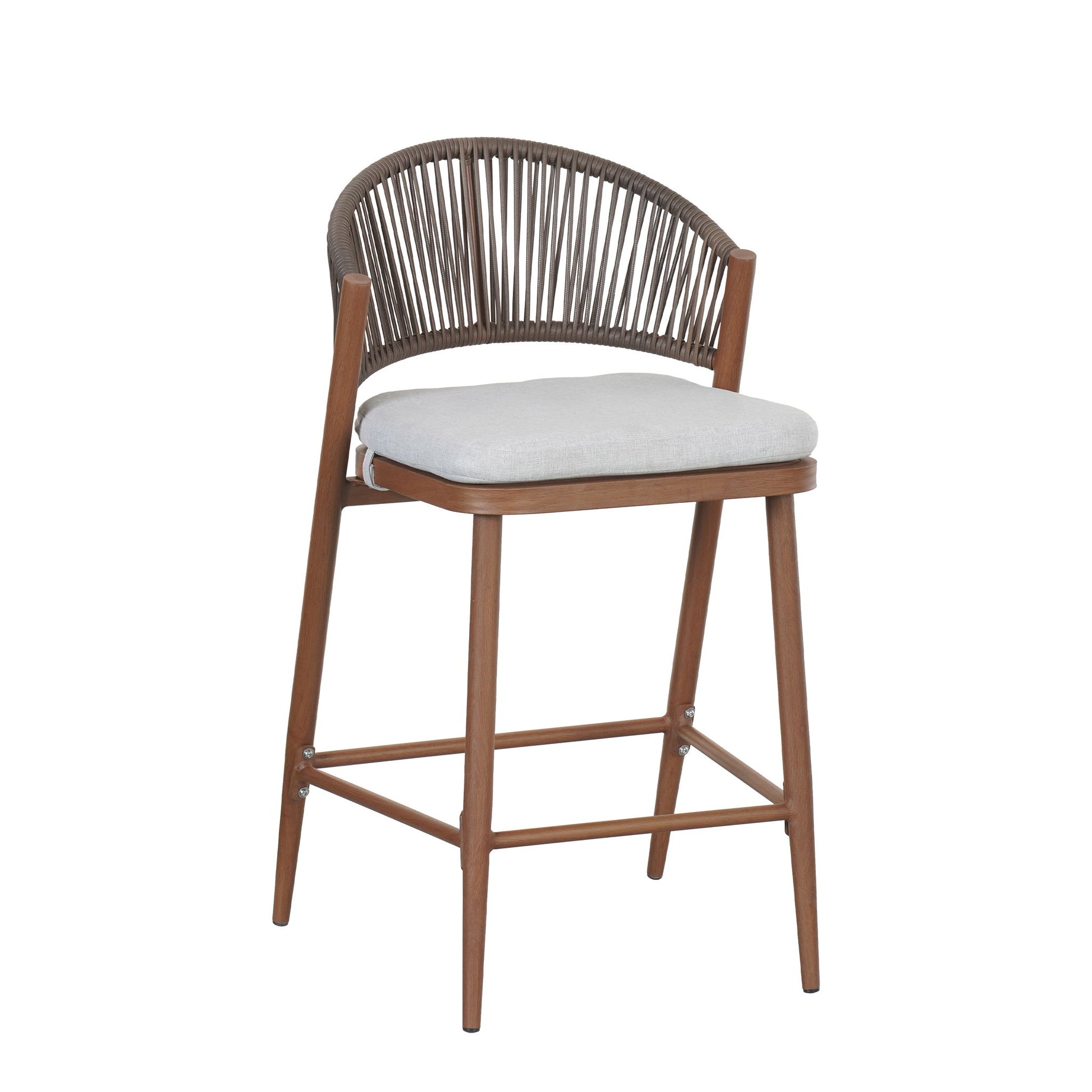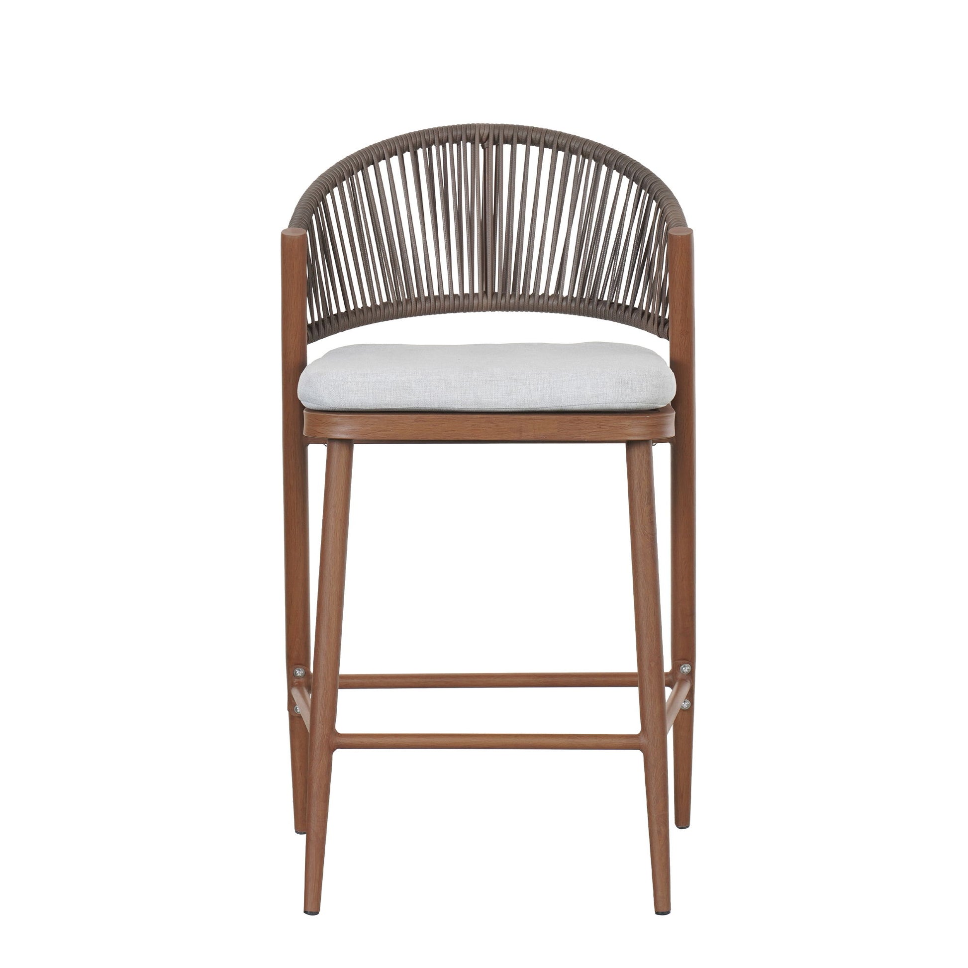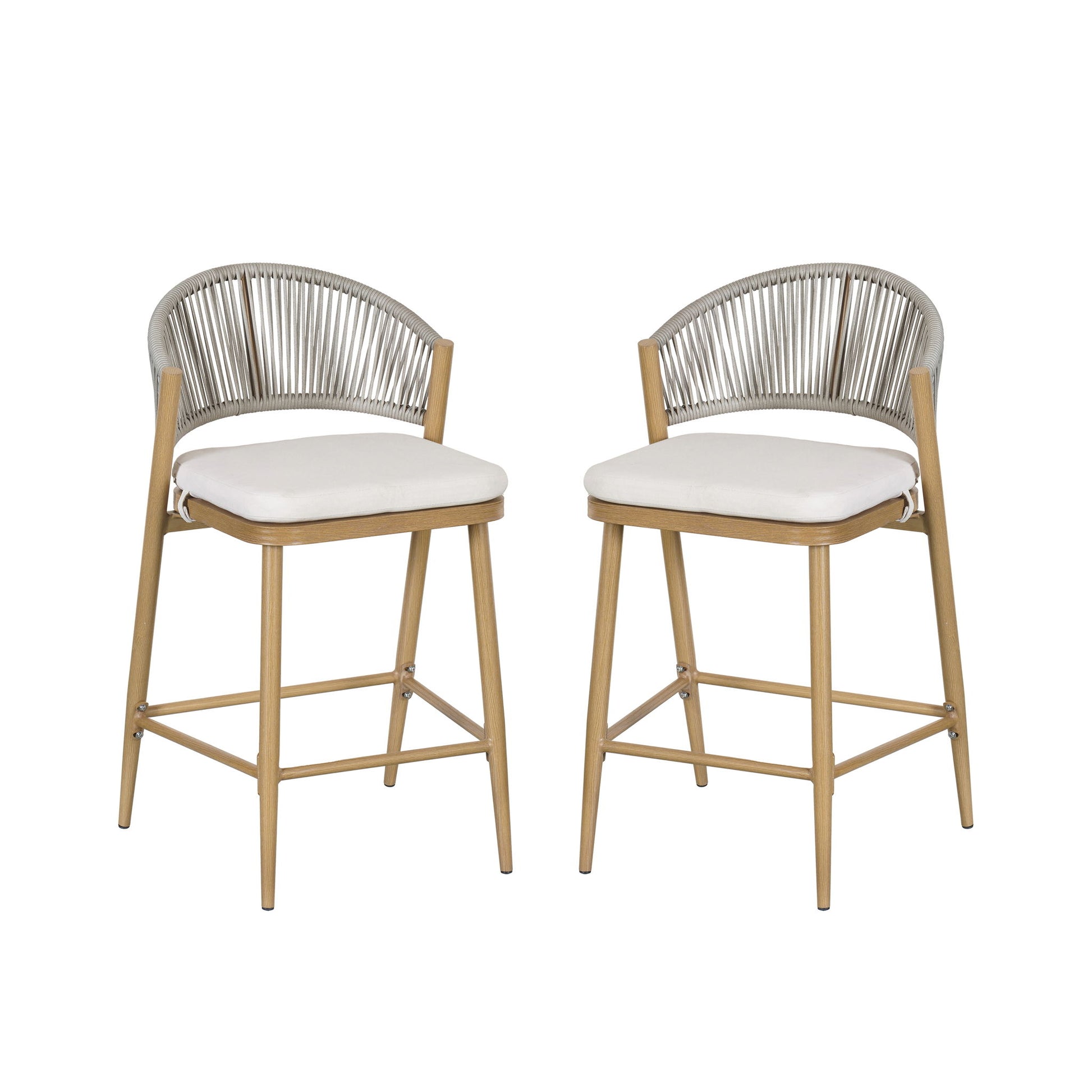Outdoor Counter Height Aluminum Frame Counter Stools With Scallop Shaped Backrest & Water Resistant Cushions (Set of 2) - Maple