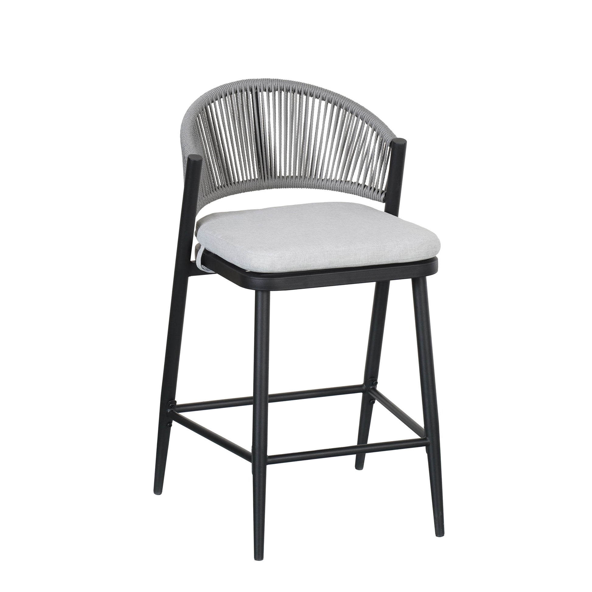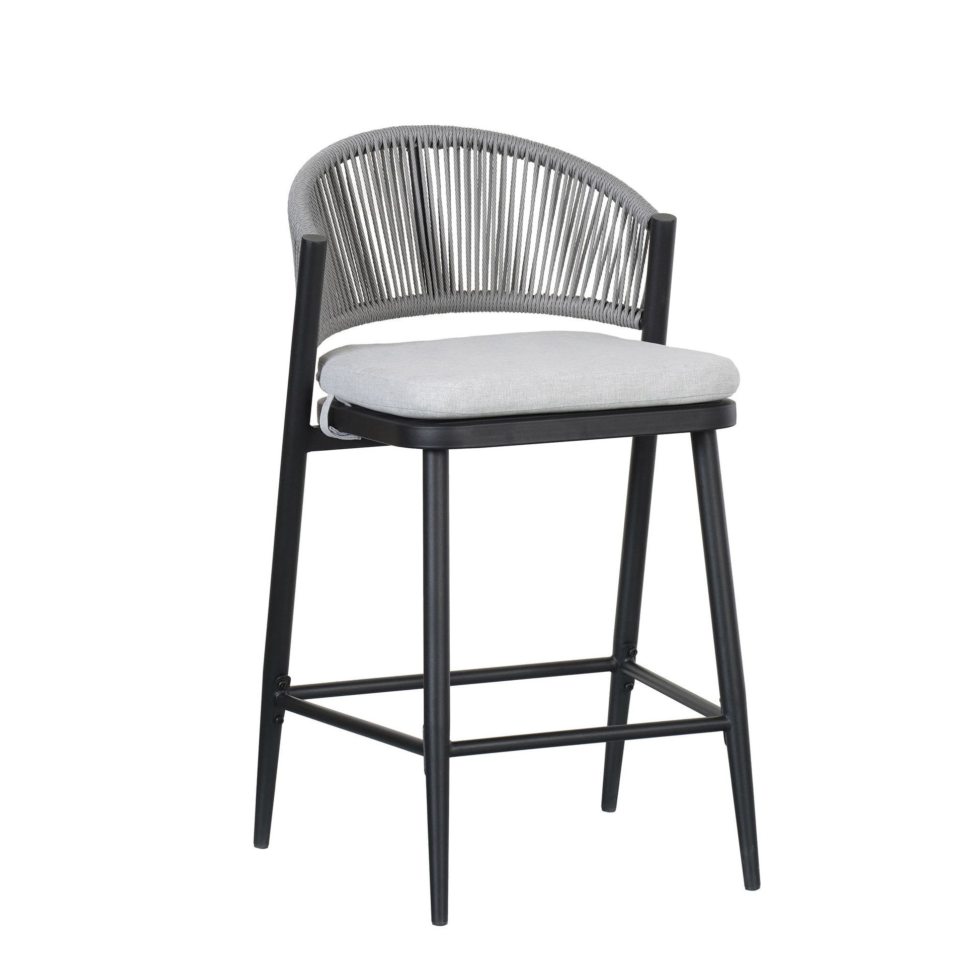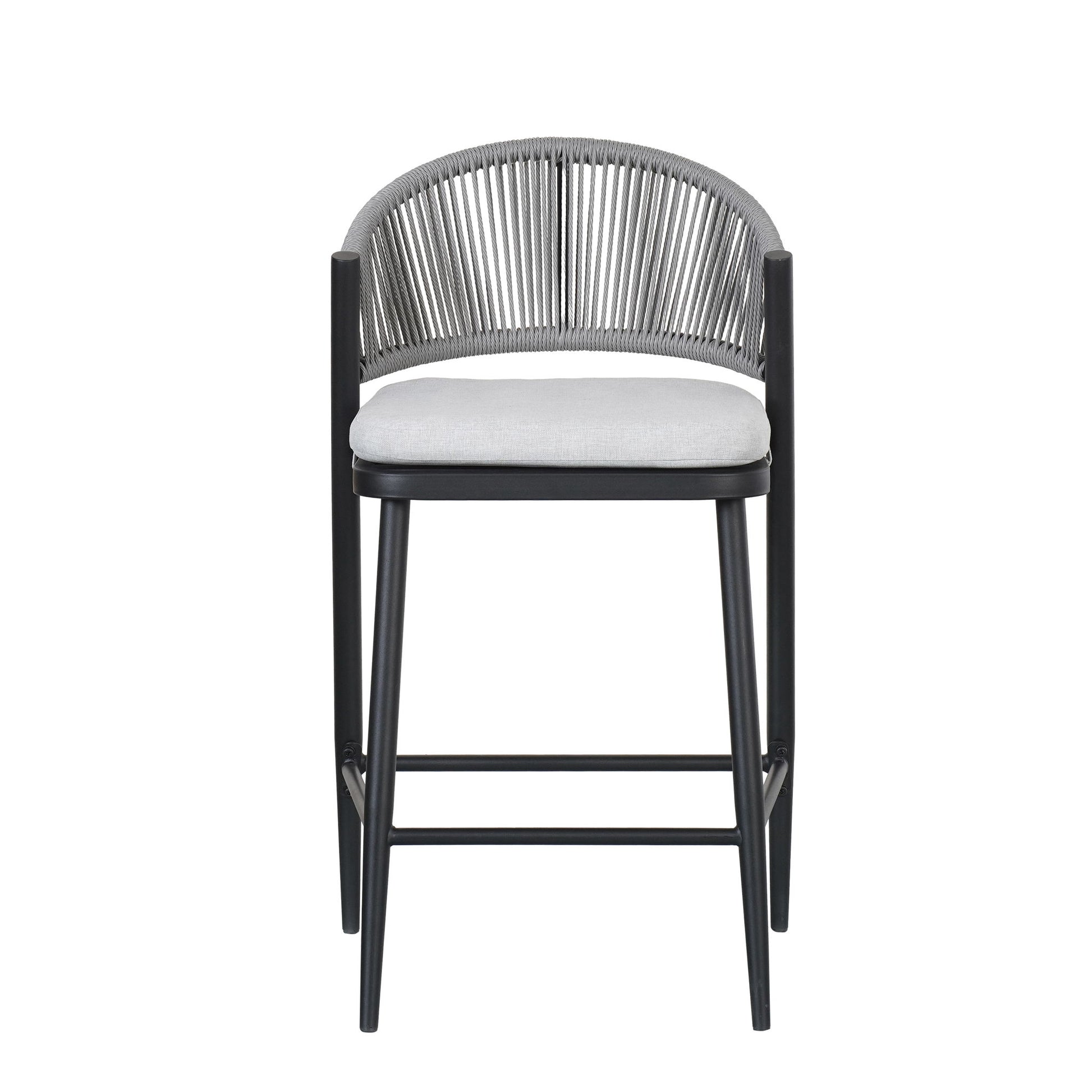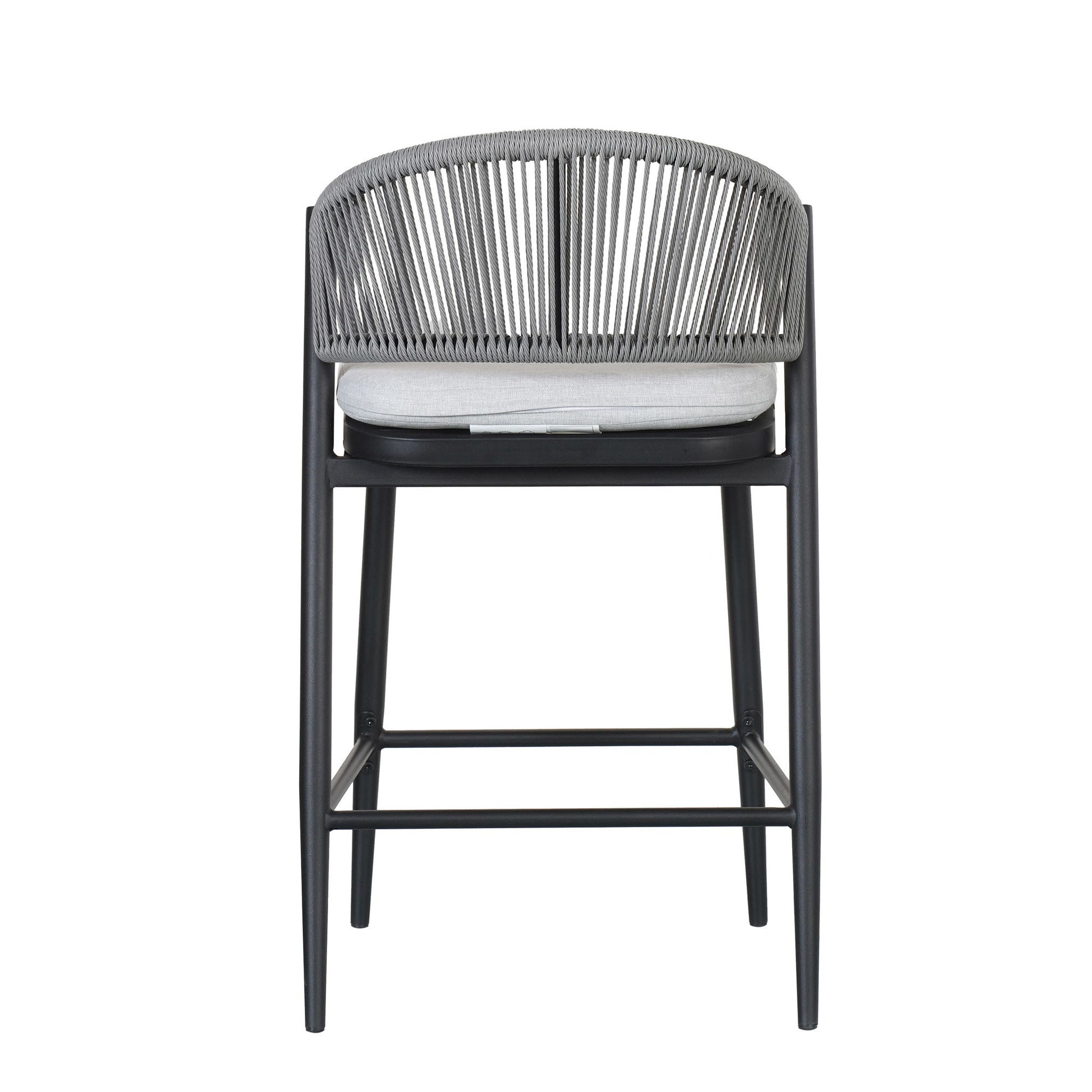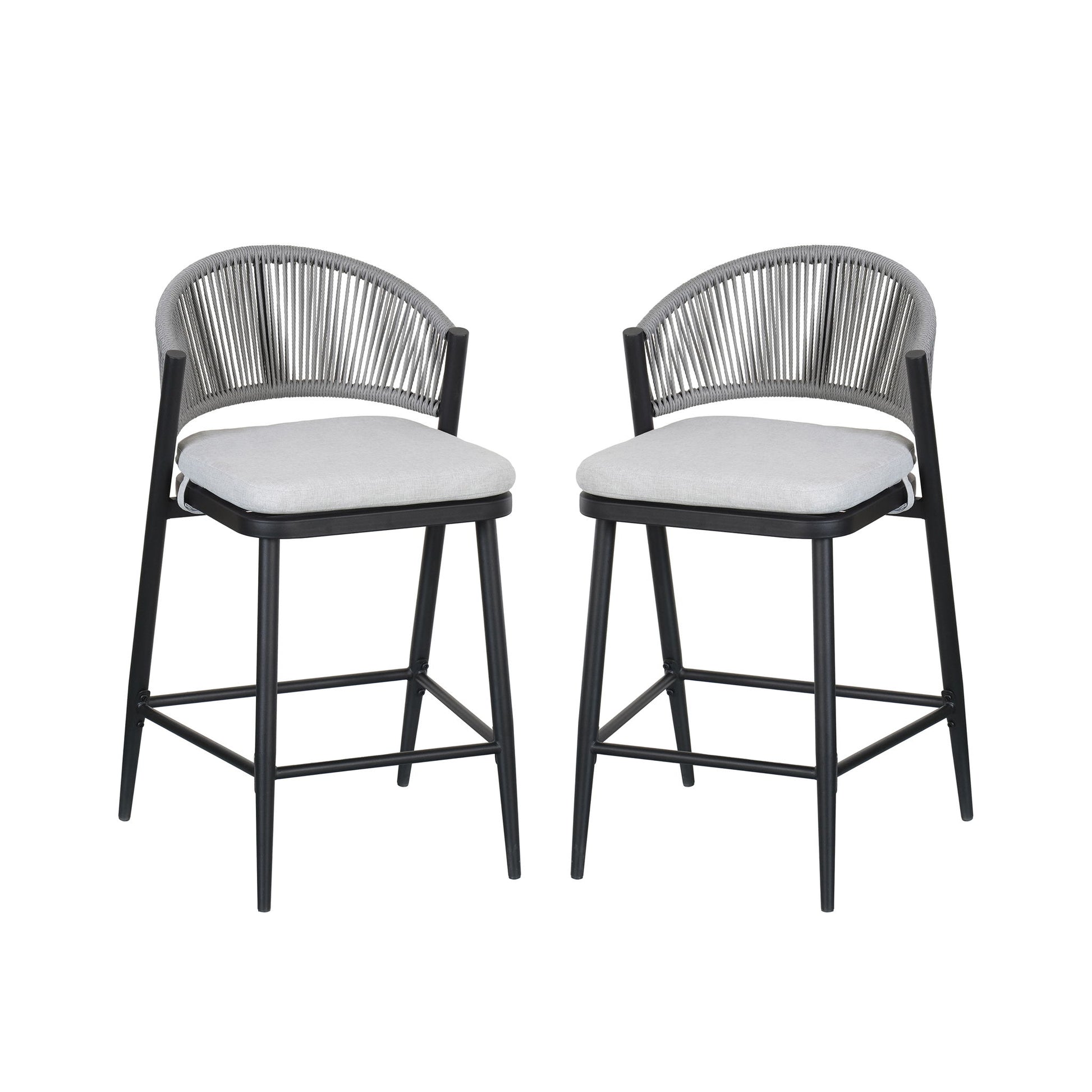 Outdoor Counter Height Metal Frame Counter Stools With Scallop Shaped Backrest & Water Resistant Cushions (Set of 2) - Matte Gray
