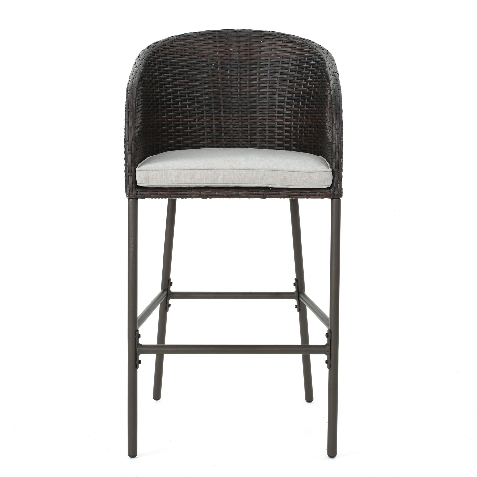 Outdoor 31" Rattan Barstools With Waterproof Cushions (Set of 2) - Multi Brown