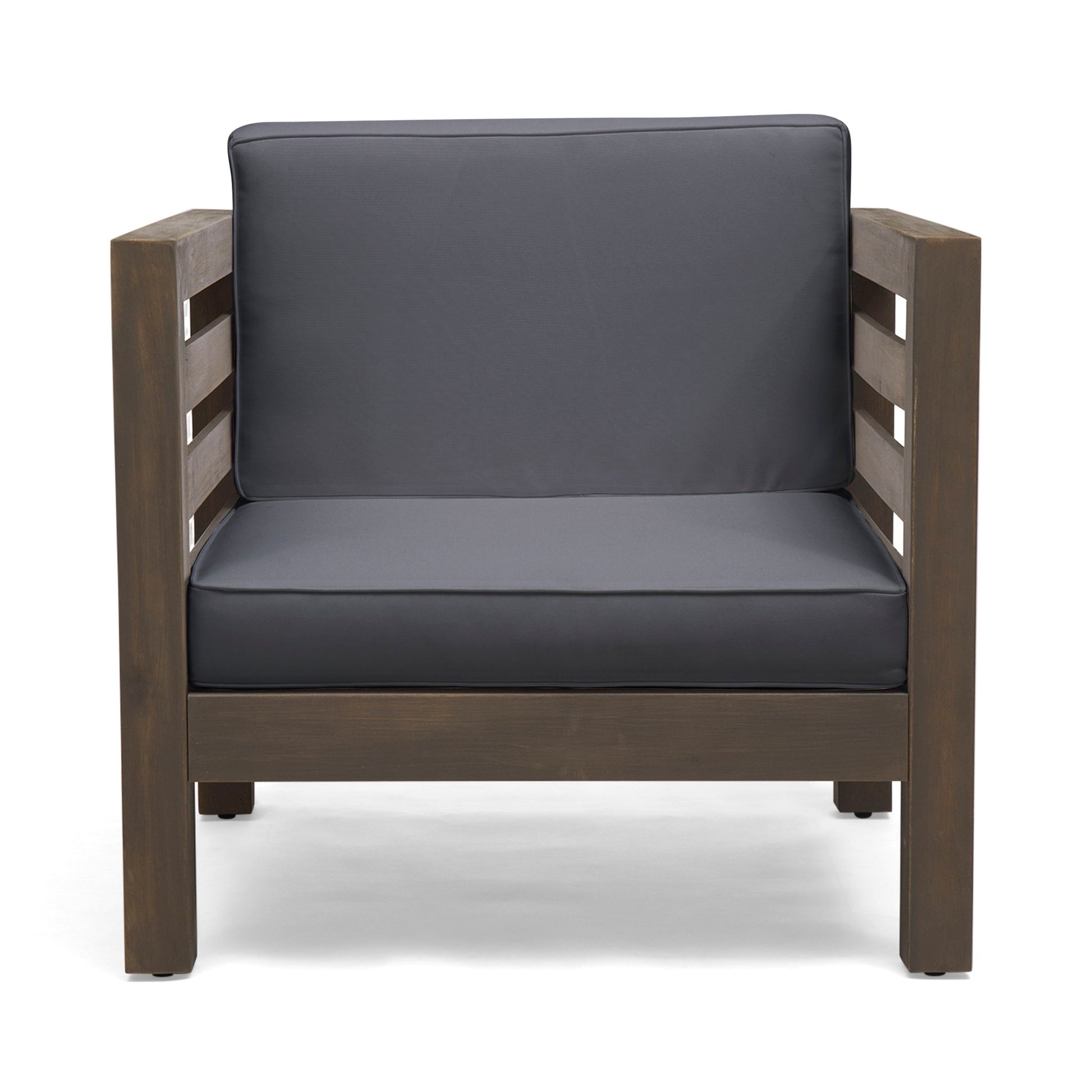 Outdoor Club Chair, Acacia Wood Patio Chair With Fabric Cushion For Backyard, Poolside, Garden Or Porch - Gray