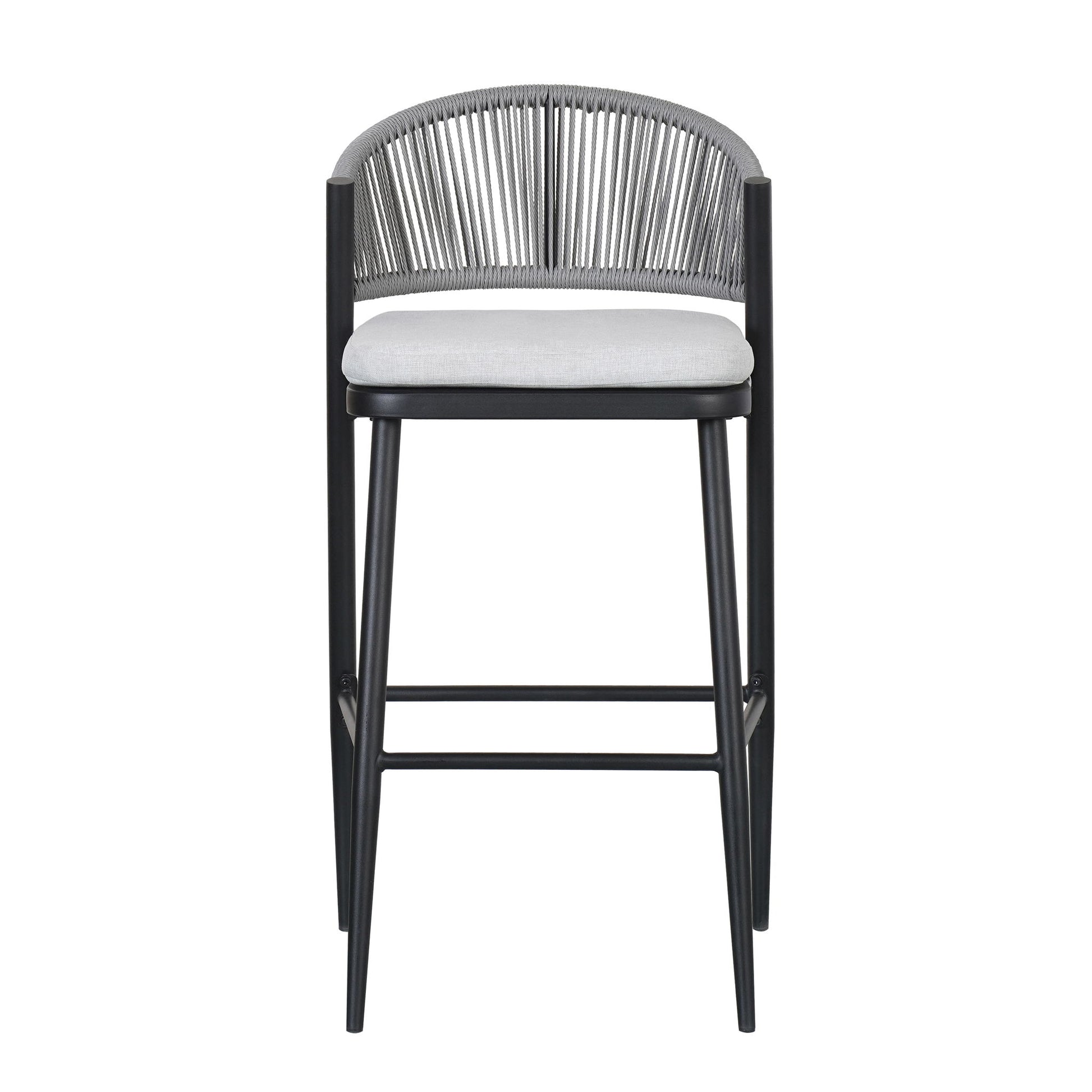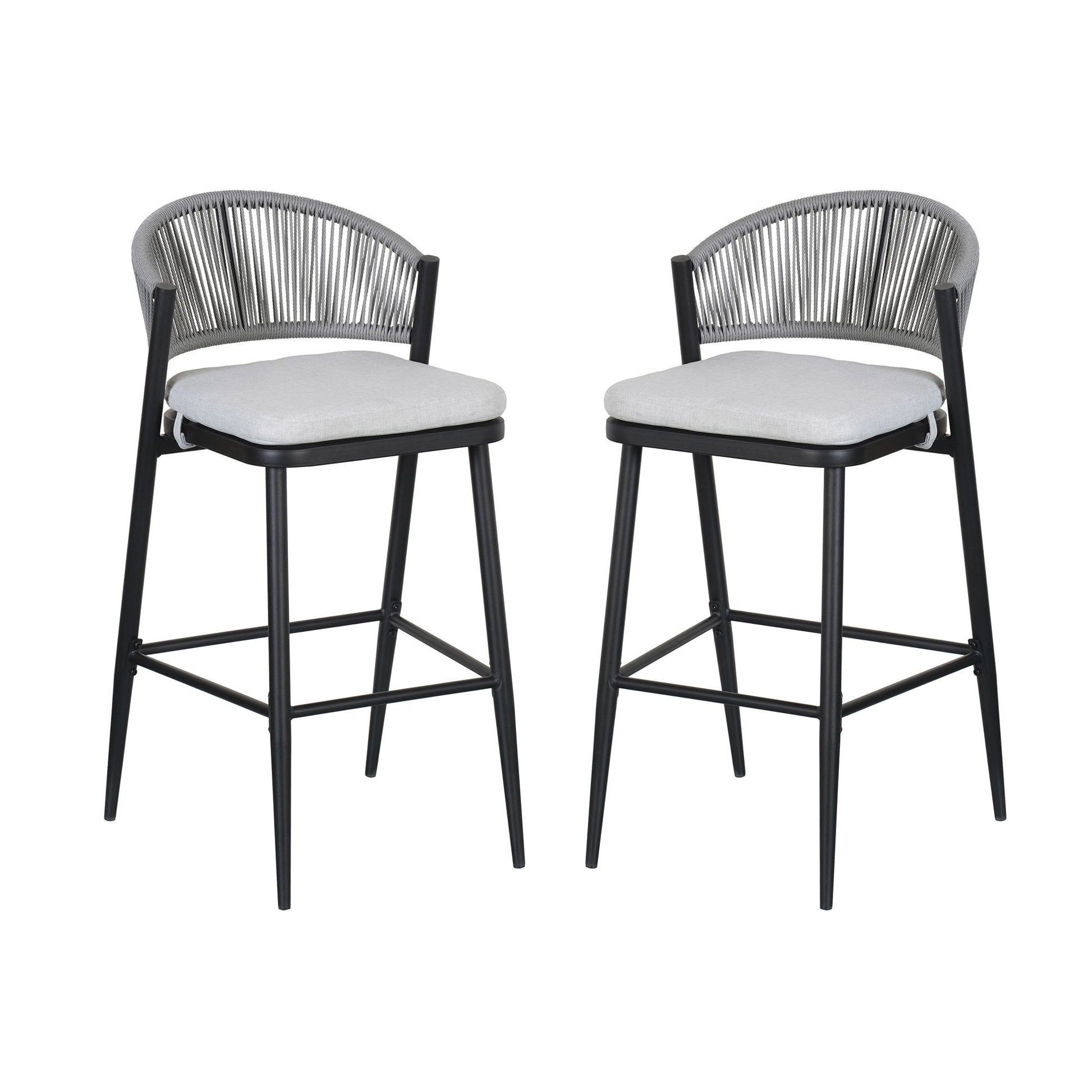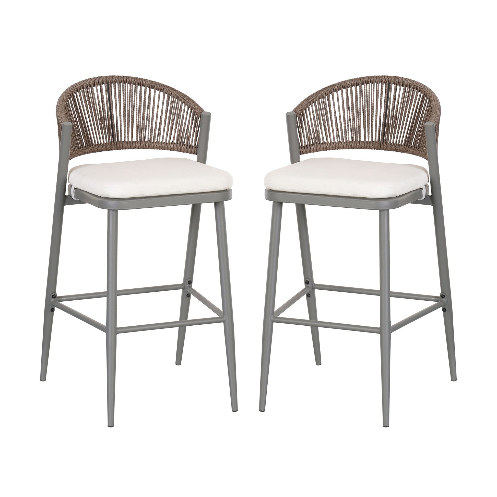 Outdoor Bar Height Metal Frame Counter Stools With Scallop Shaped Backrest & Water Resistant Cushions (Set of 2) - Matte Gray