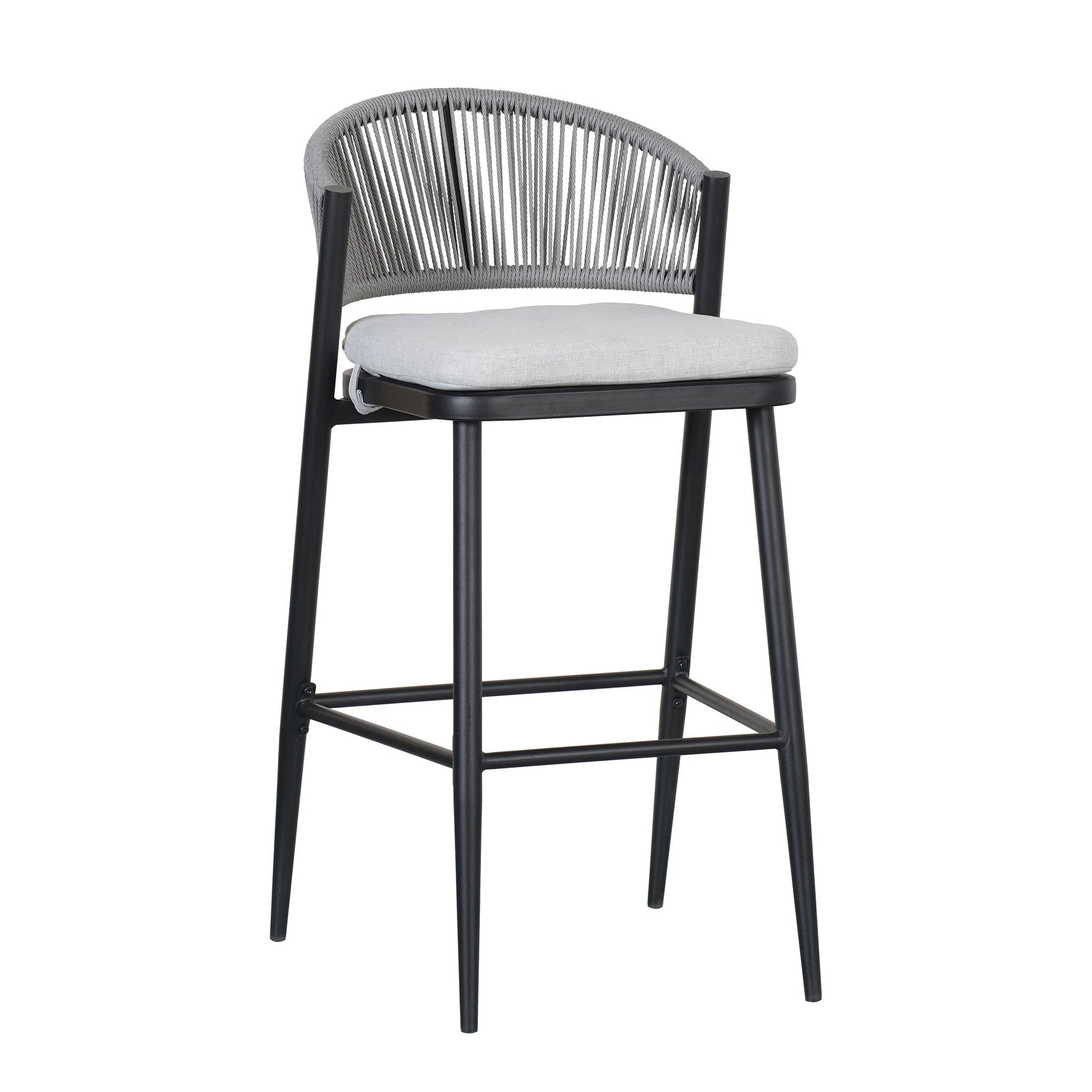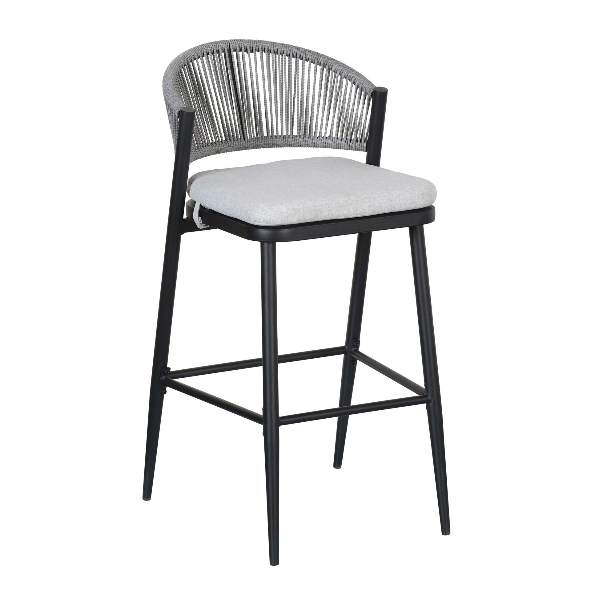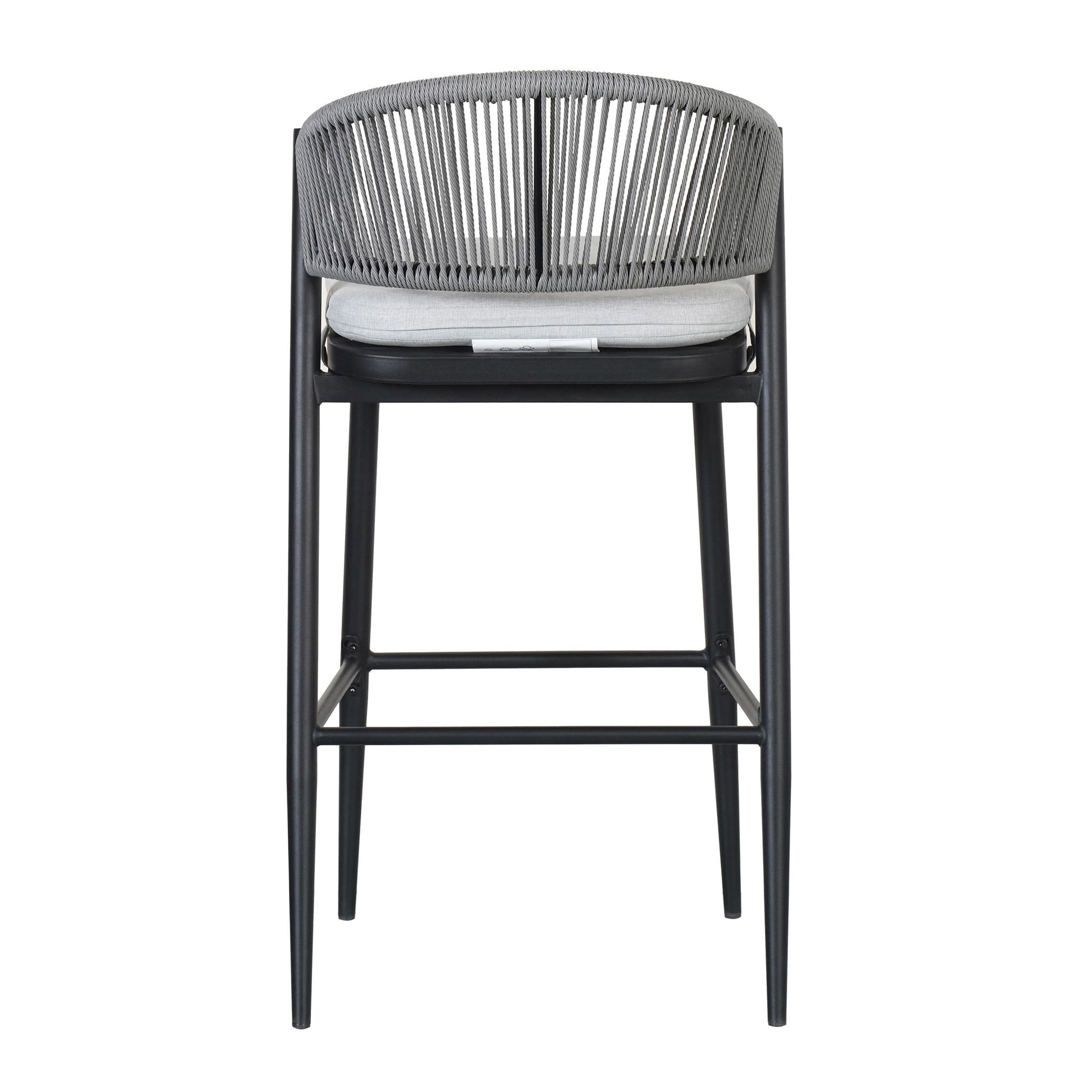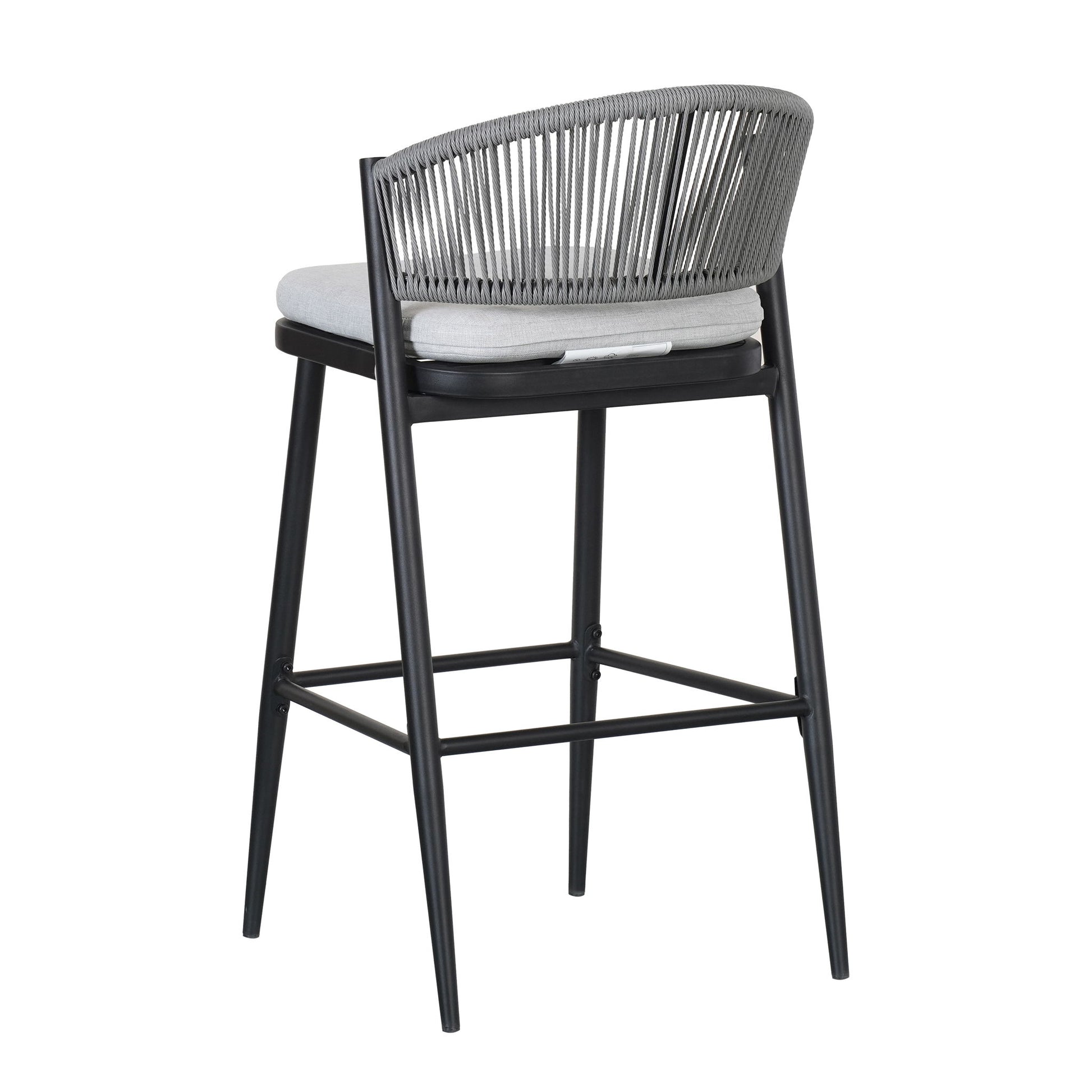 Outdoor Bar Height Metal Frame Counter Stools With Scallop Shaped Backrest & Water Resistant Cushions (Set of 2) - Matte Gray