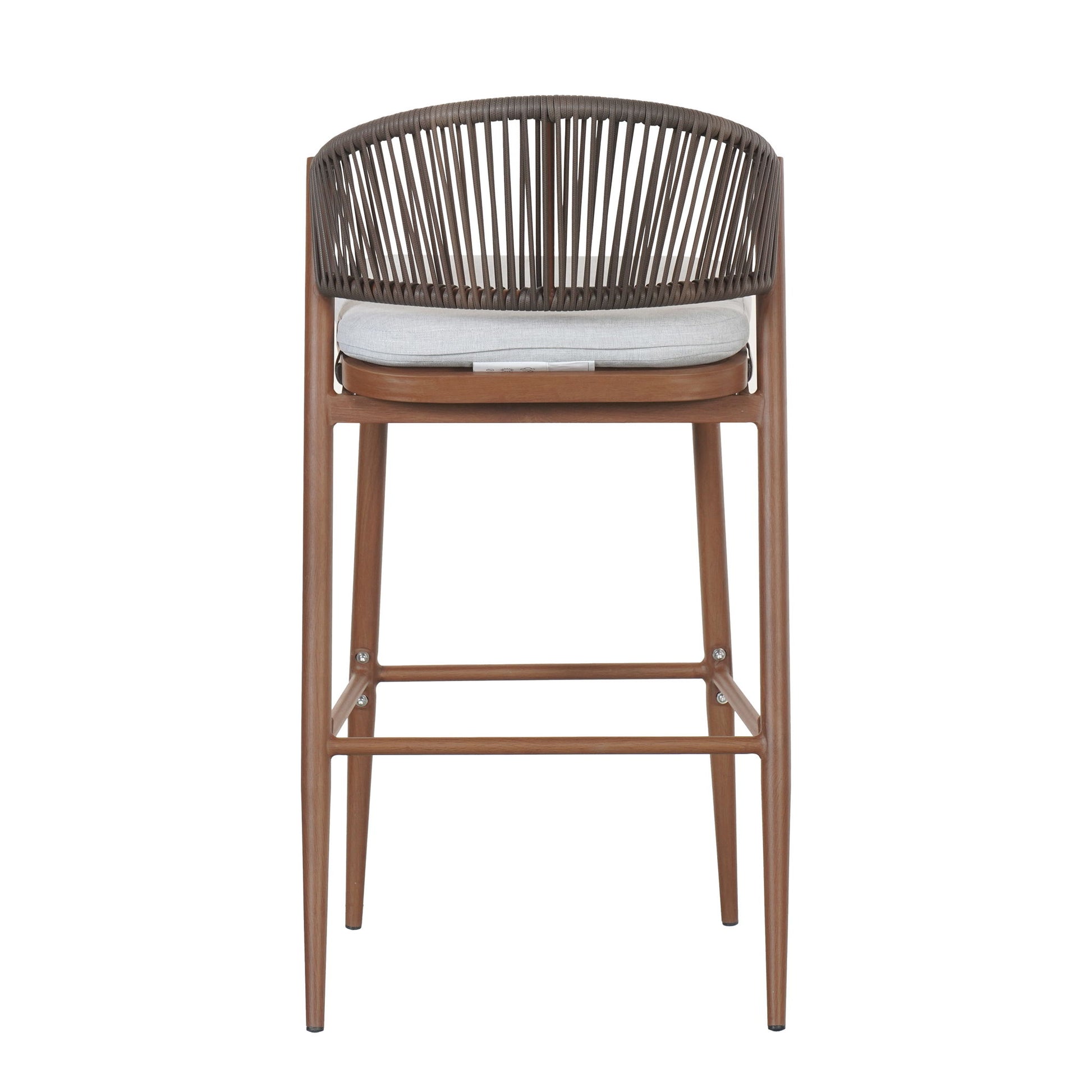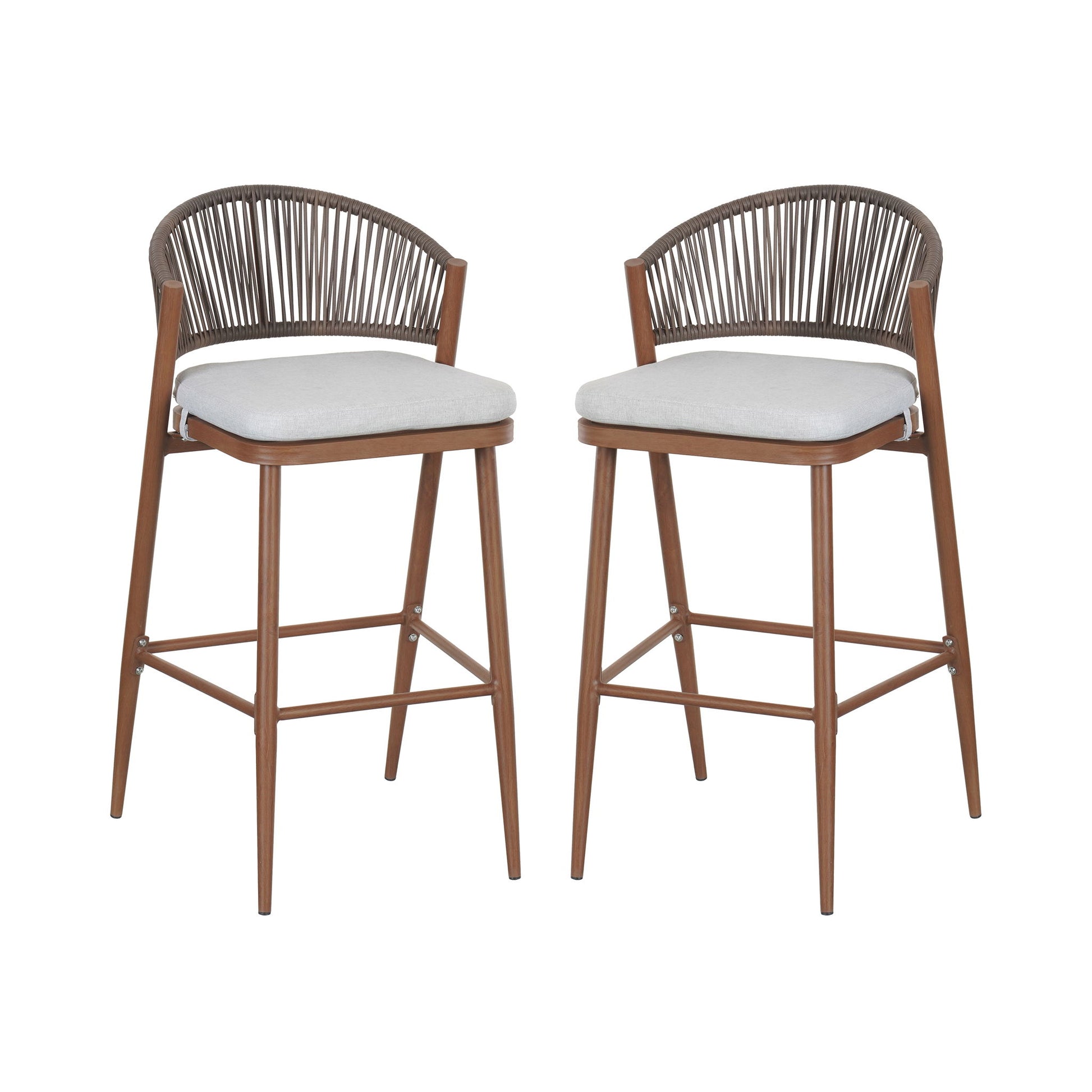 Outdoor Bar Height Aluminum Frame Counter Stools With Scallop Shaped Backrest & Water Resistant Cushions (Set of 2) - Maple