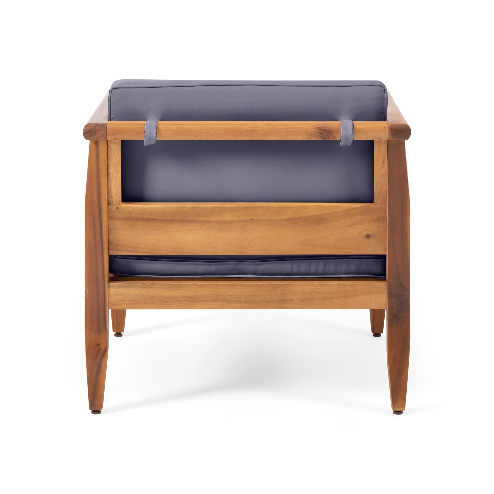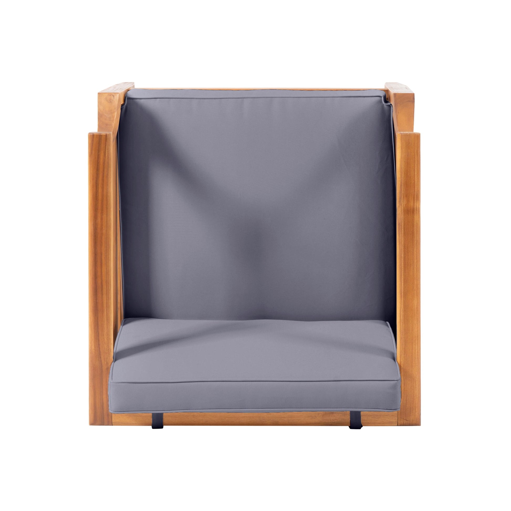 Outdoor Club Chair With Recessed Arms And Cushions - Dark Gray / Teak
