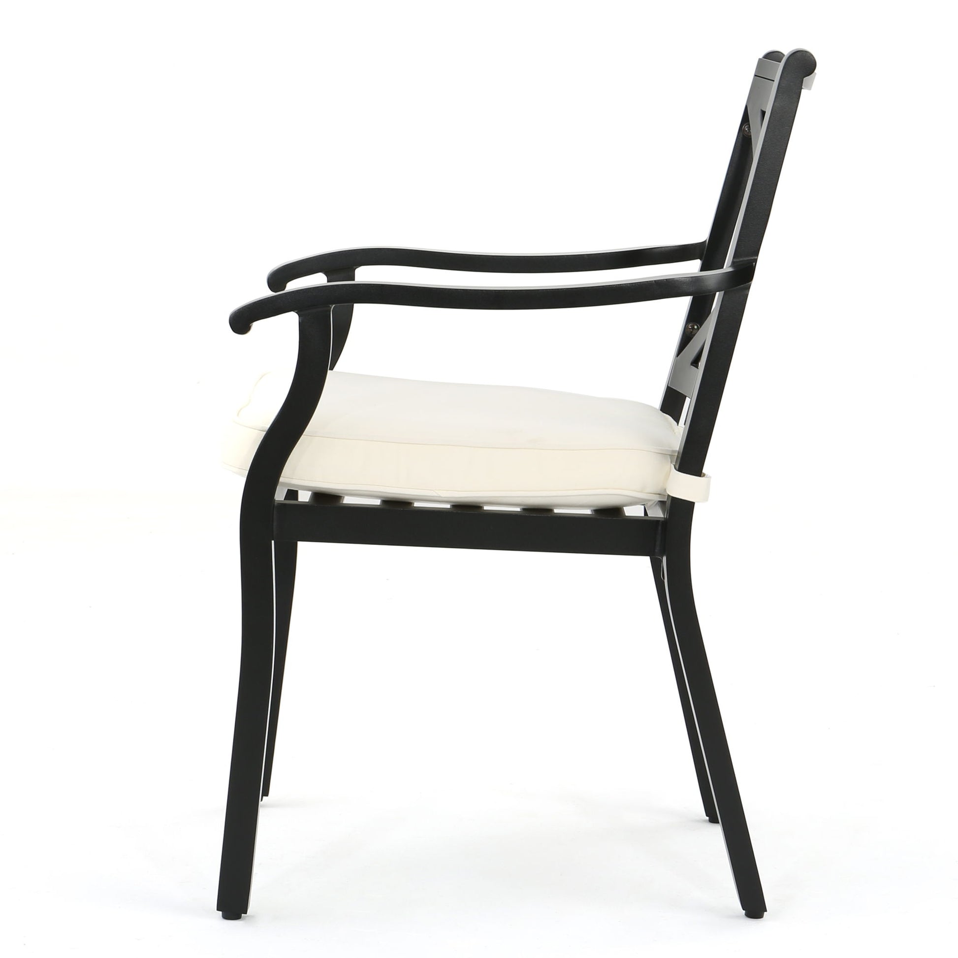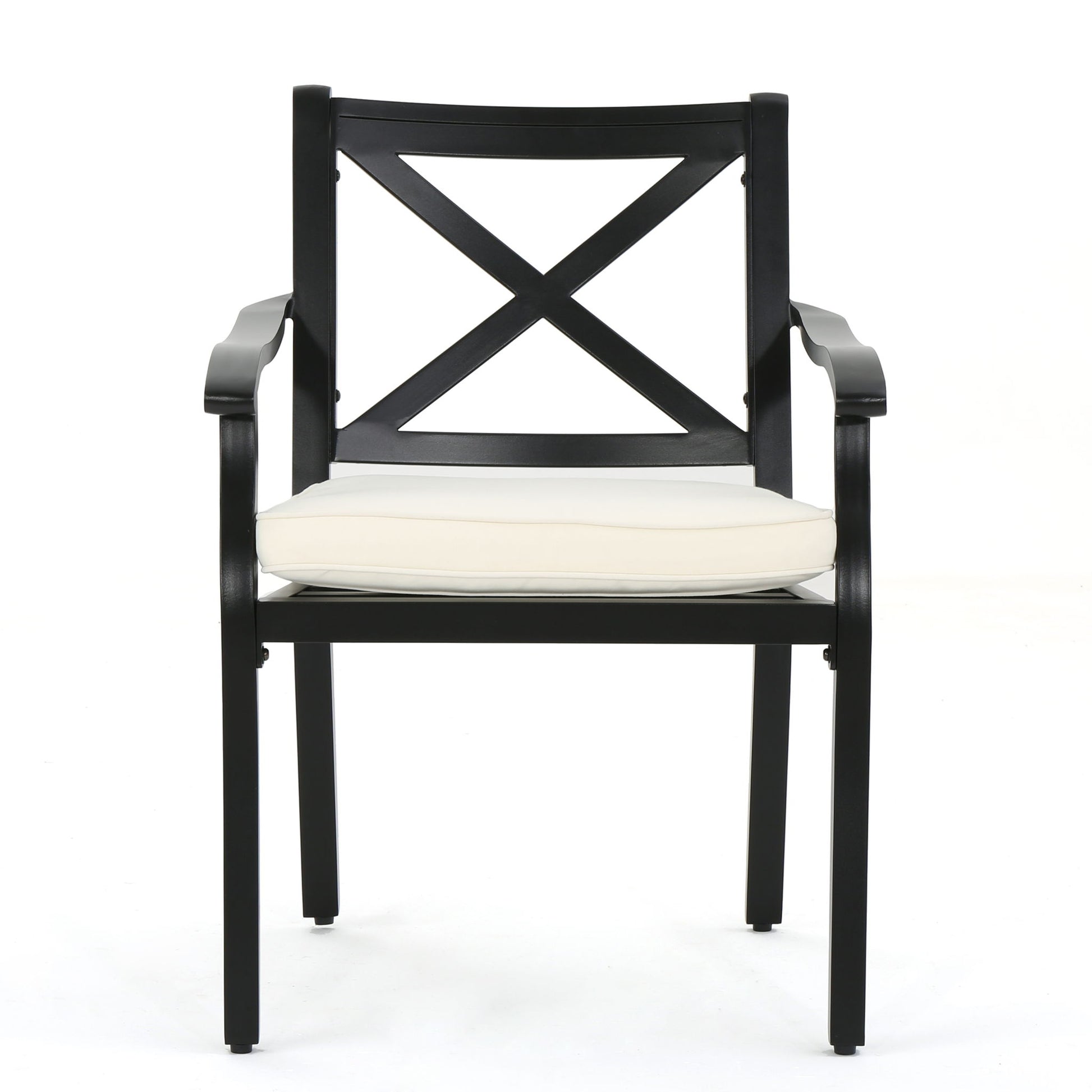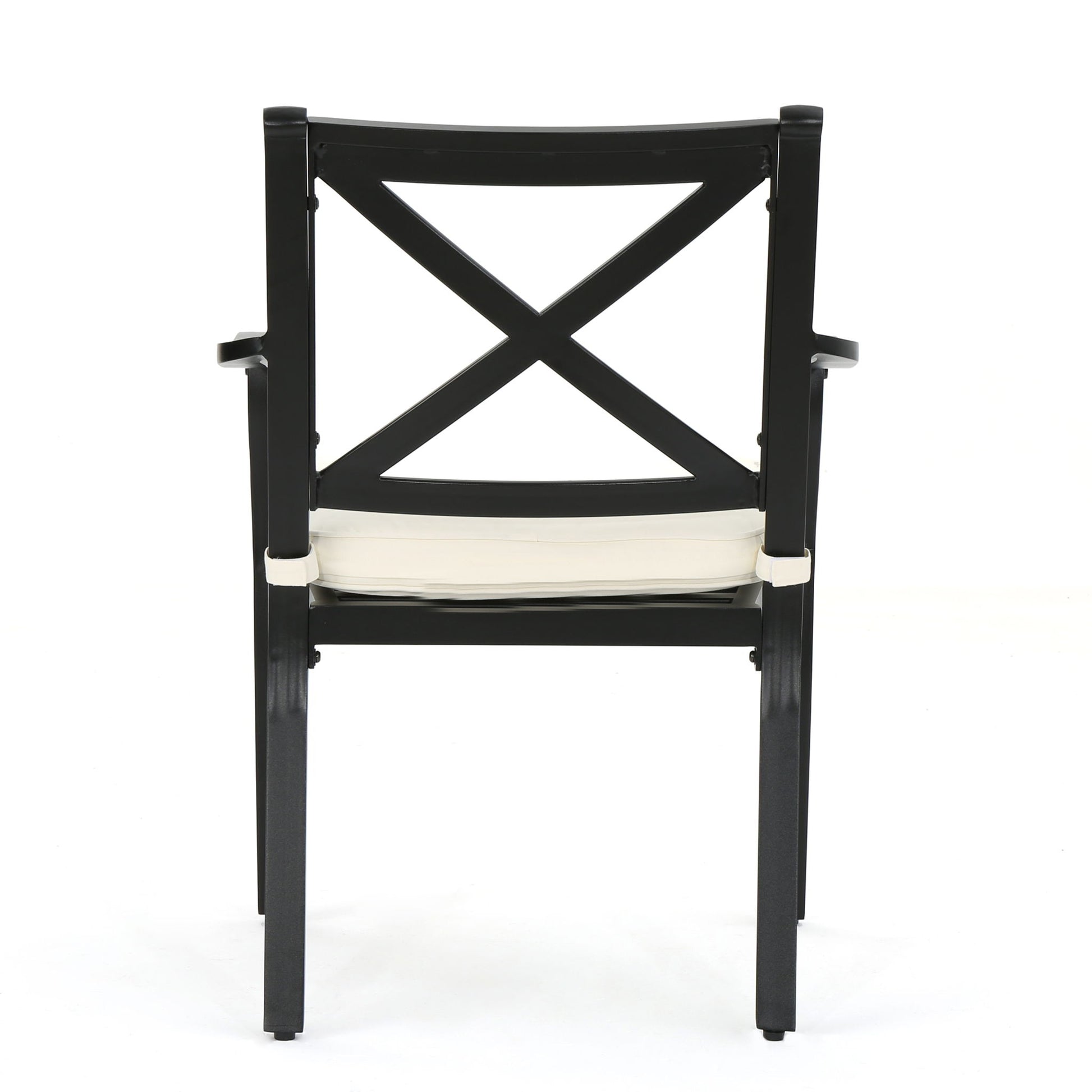 Outdoor Dining Chair Set With Water Resistant Cushions - Black / Ivory