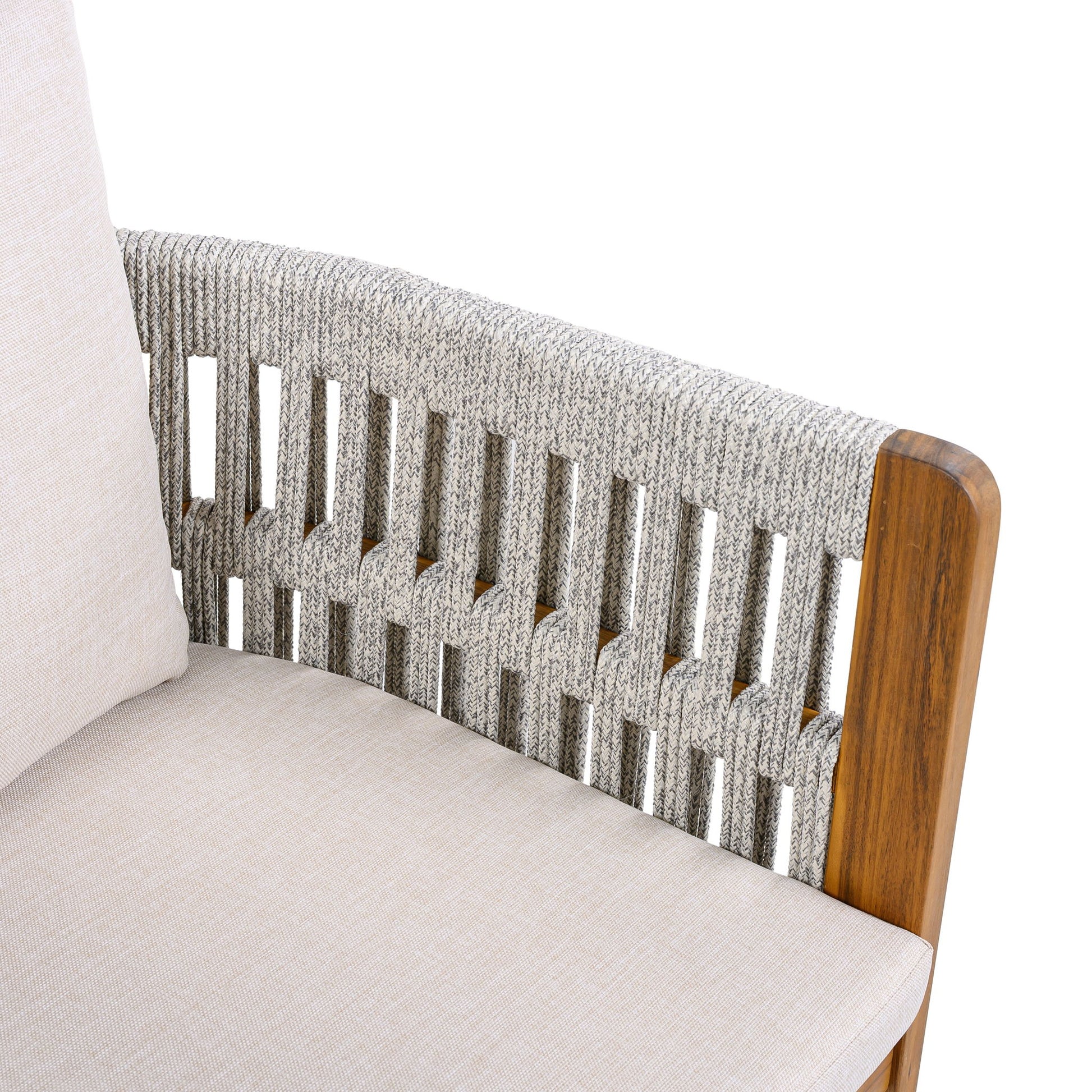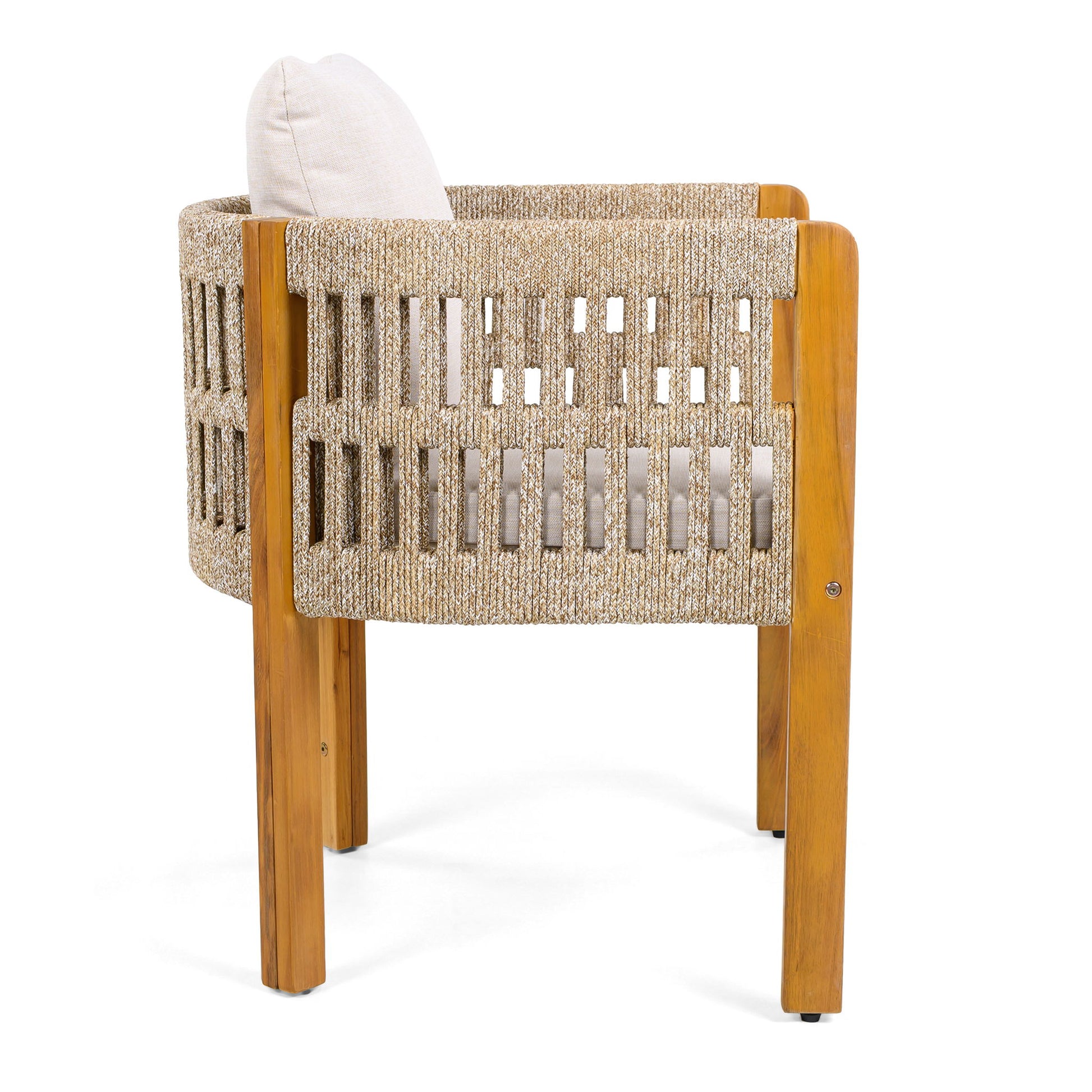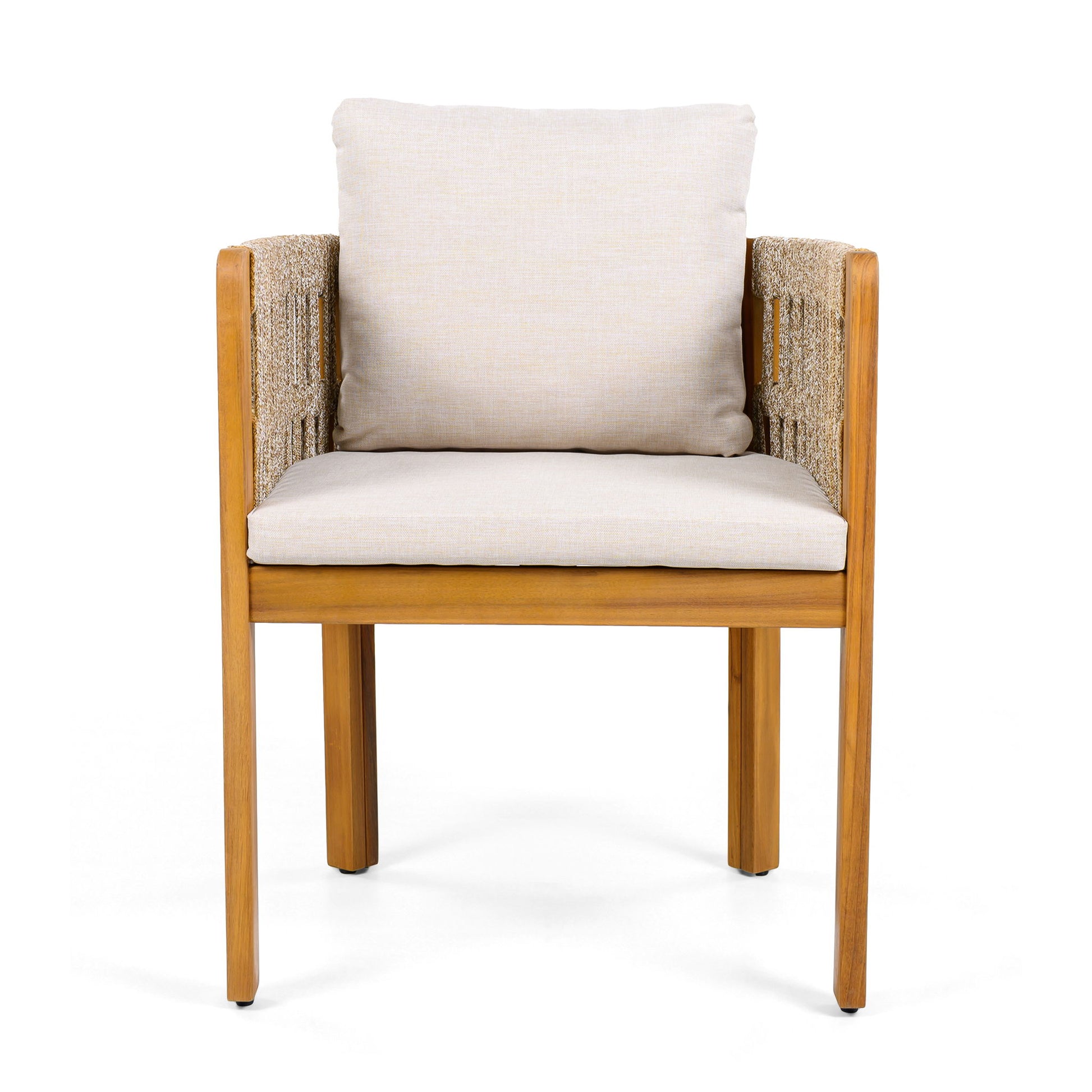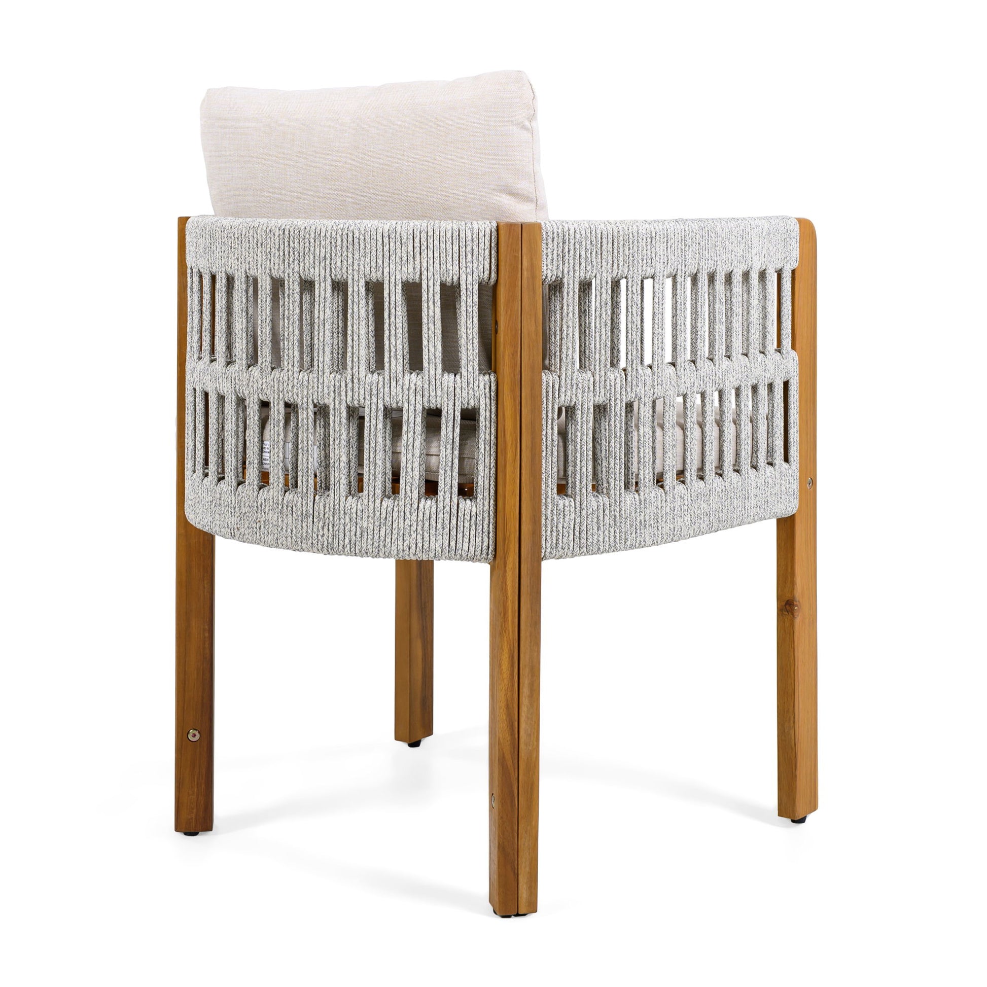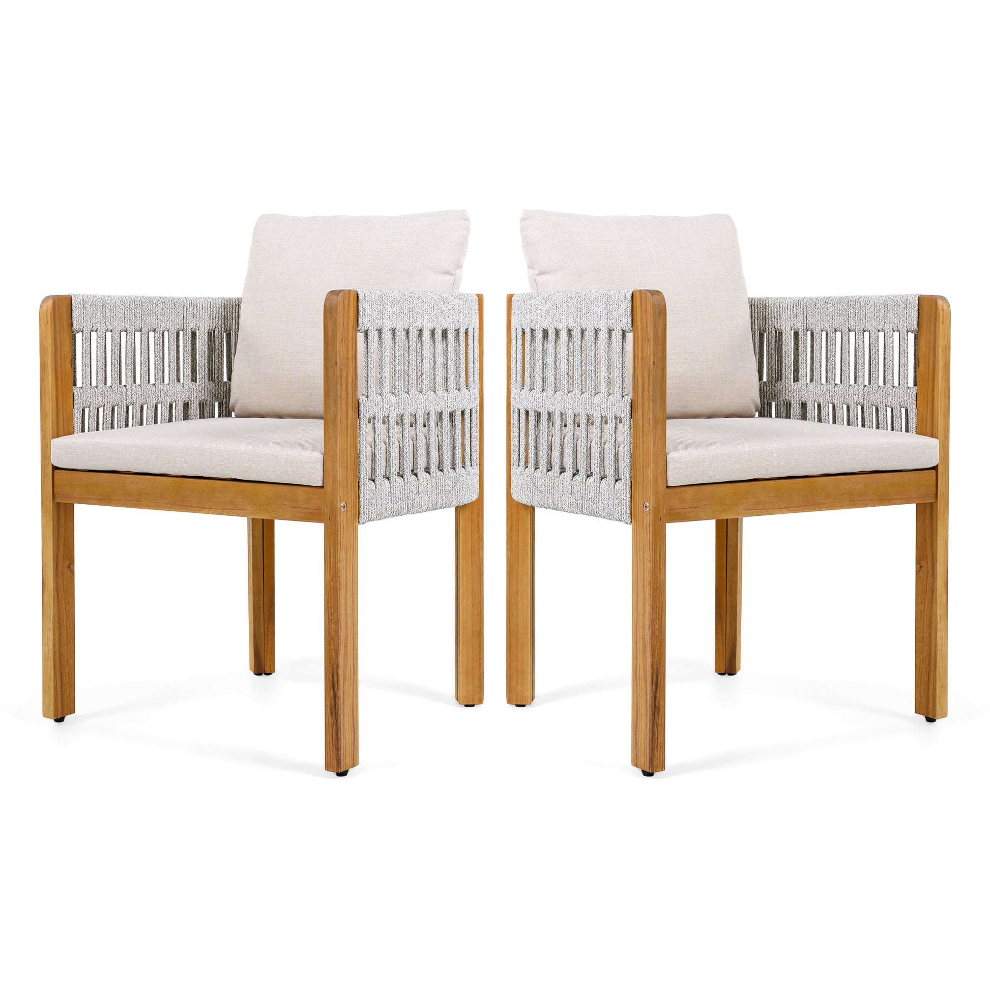 Outdoor Dining Chairs With Rope Handles (Set of 2) - Beige / Teak / White