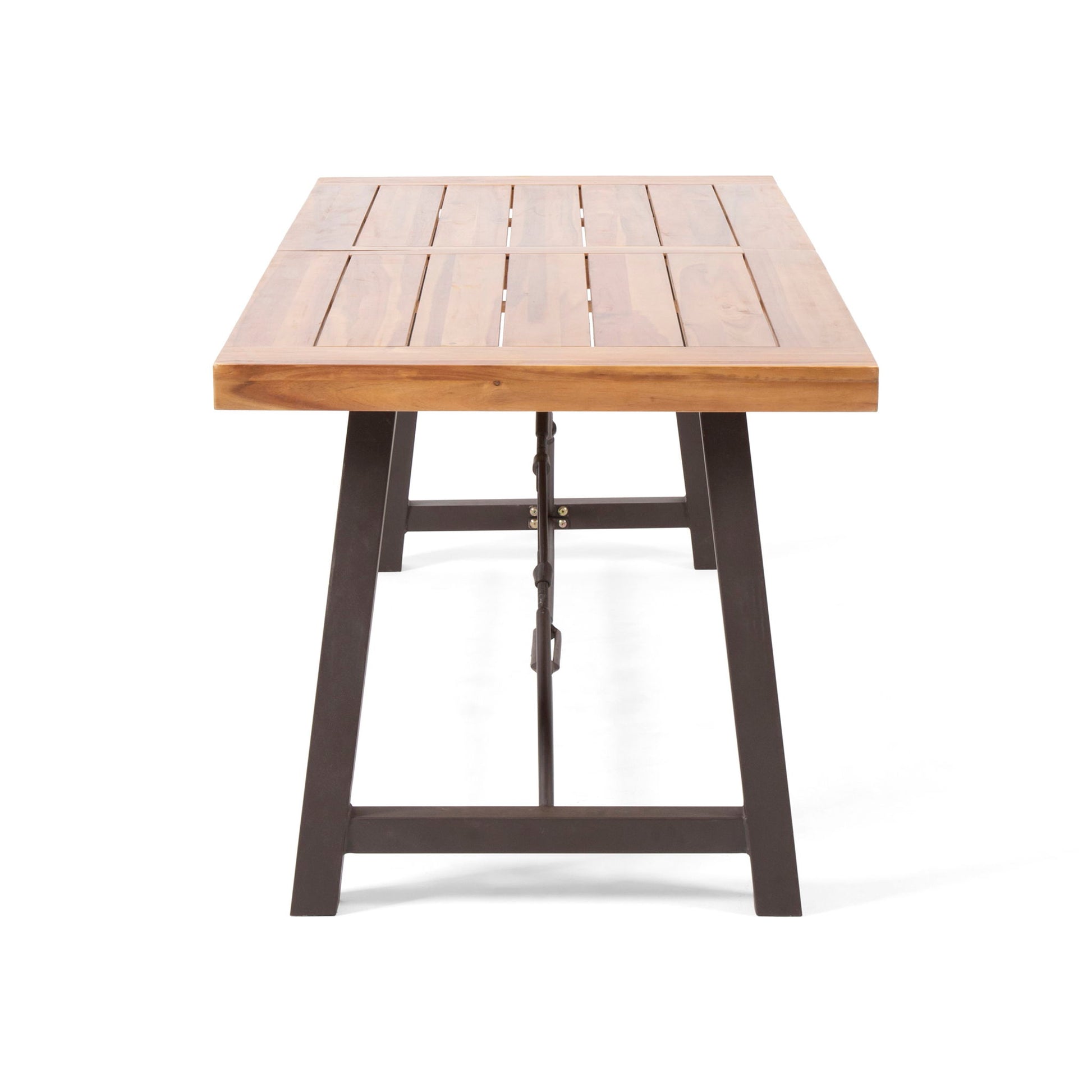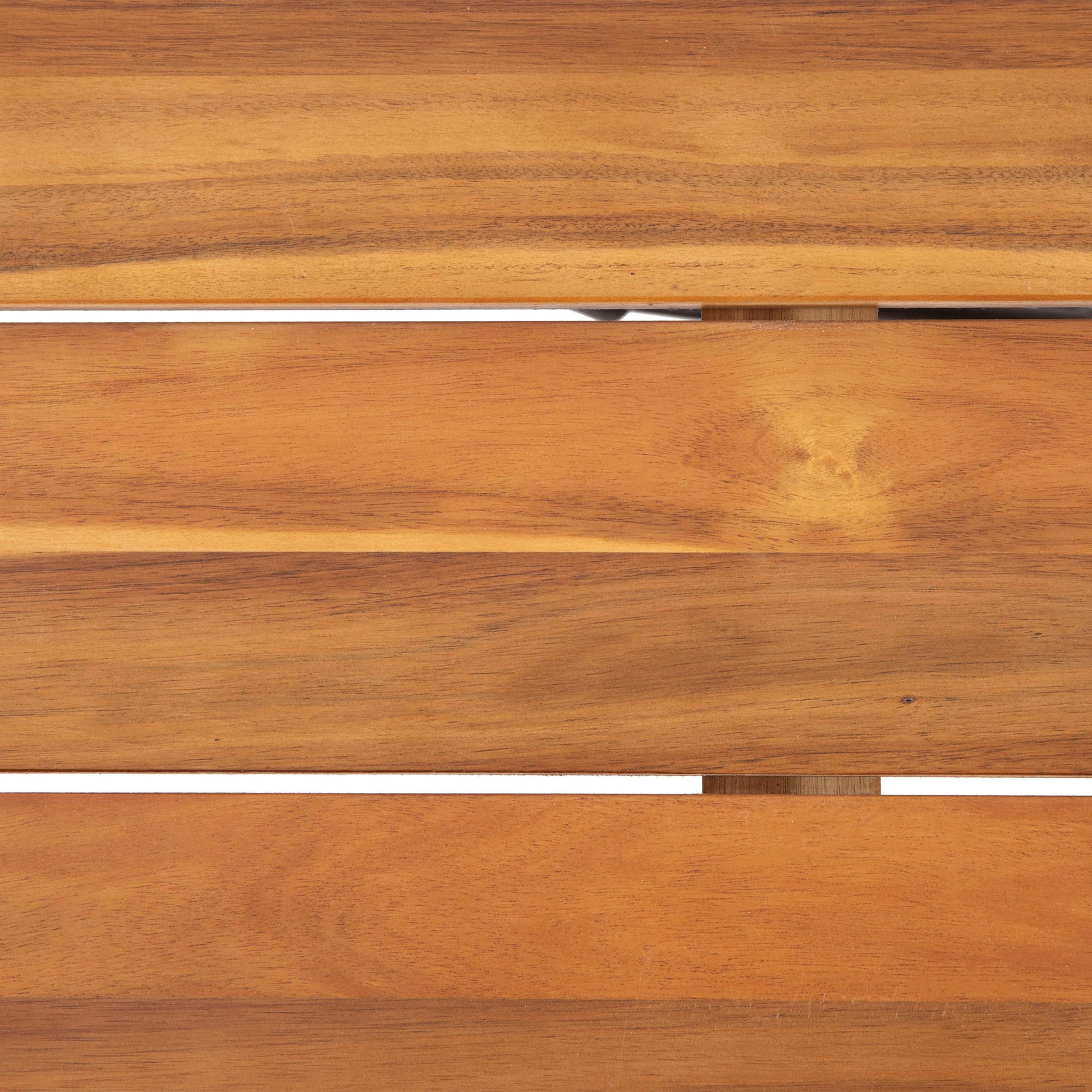 - Durable Acacia Wood Top: Made with acacia wood, known for its sleek and exotic appearance, this tabletop withstands outdoor elements and maintains its color over time, offering a solid, heavy frame that resists wear and tear.