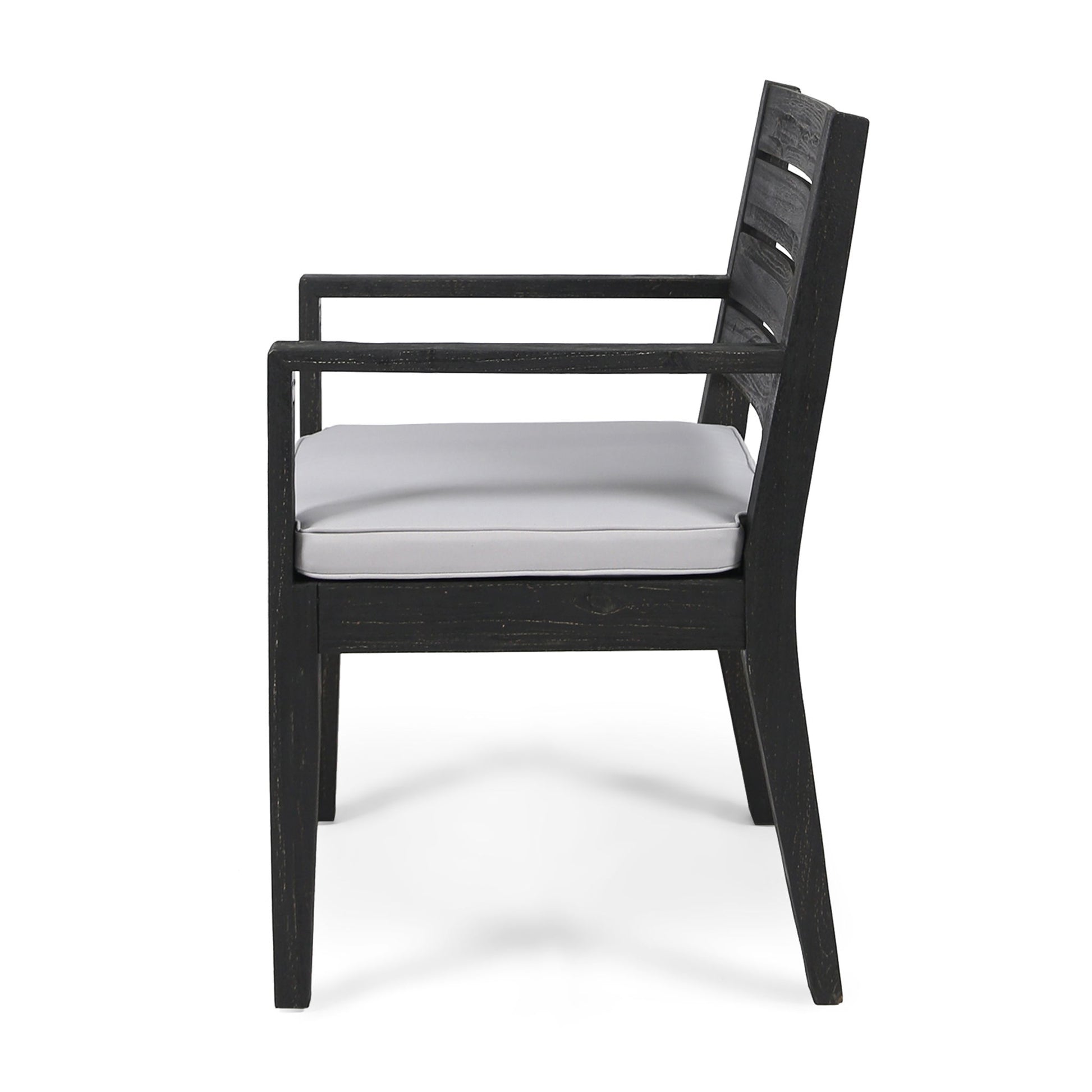 - Elegant Design: Enhance your outdoor dining experience with these classy and upscale acacia wood dining chairs, designed with slatted frames and water-resistant cushions for a comfortable and stylish setting.