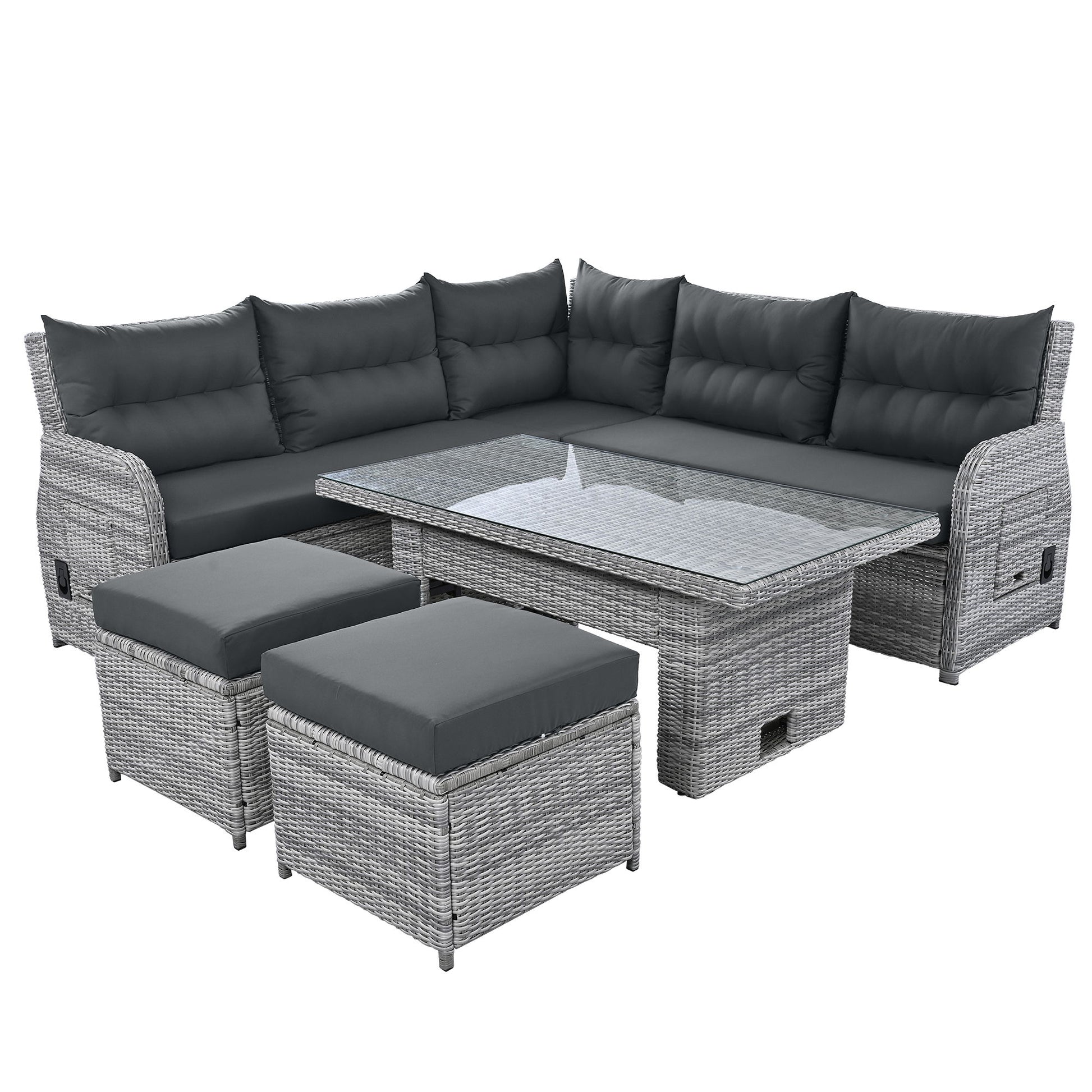 Outdoor Furniture Set Patio Rattan Furniture Set With An Adjustable Table, Recliners With Extendable Side Tables, And 2 Ottomans For Patio, Lawn, Backyard, Pool - Gray