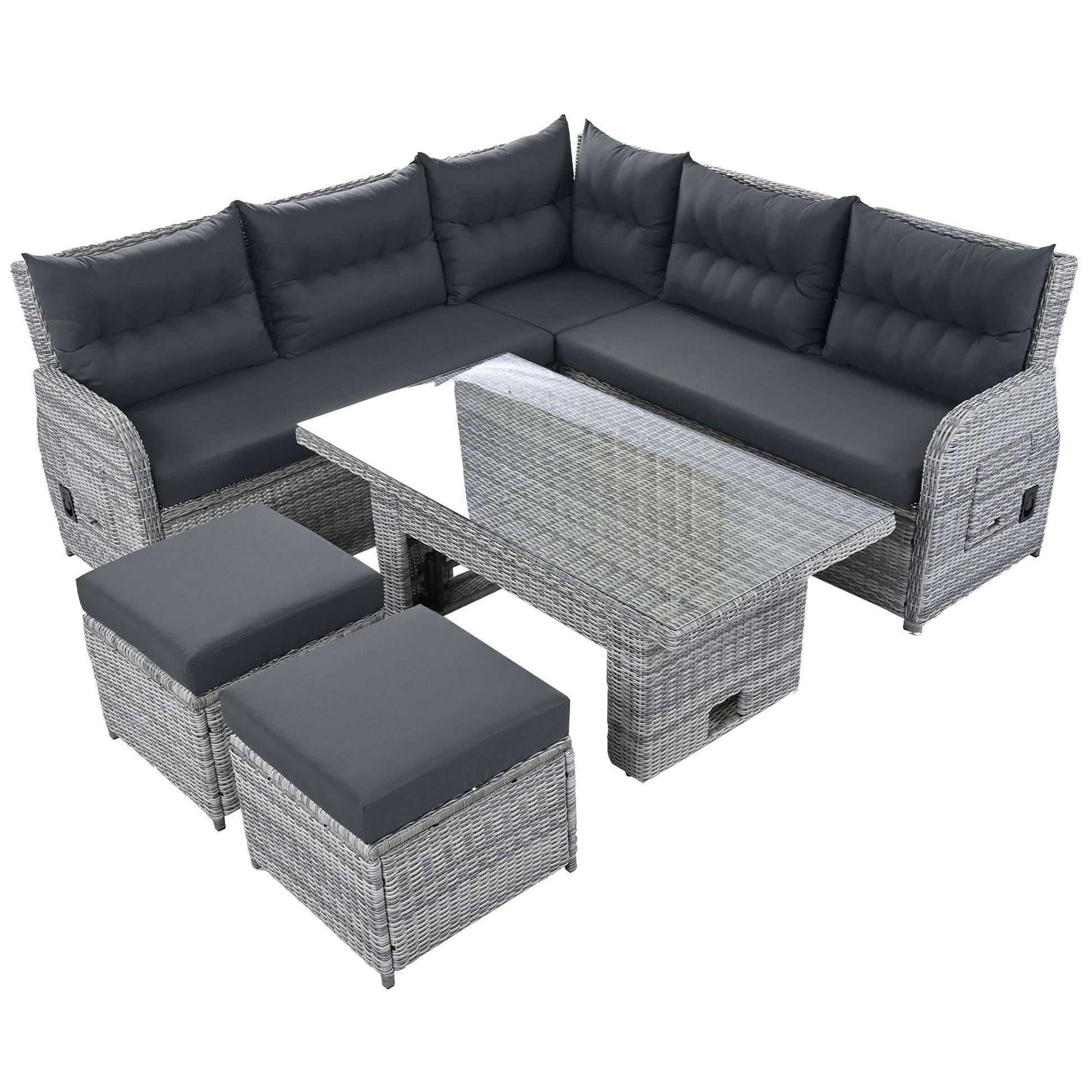 Outdoor Furniture Set Patio Rattan Furniture Set With Adjustable Table, Recliners With Extendable Side Tables And 2 Ottomans