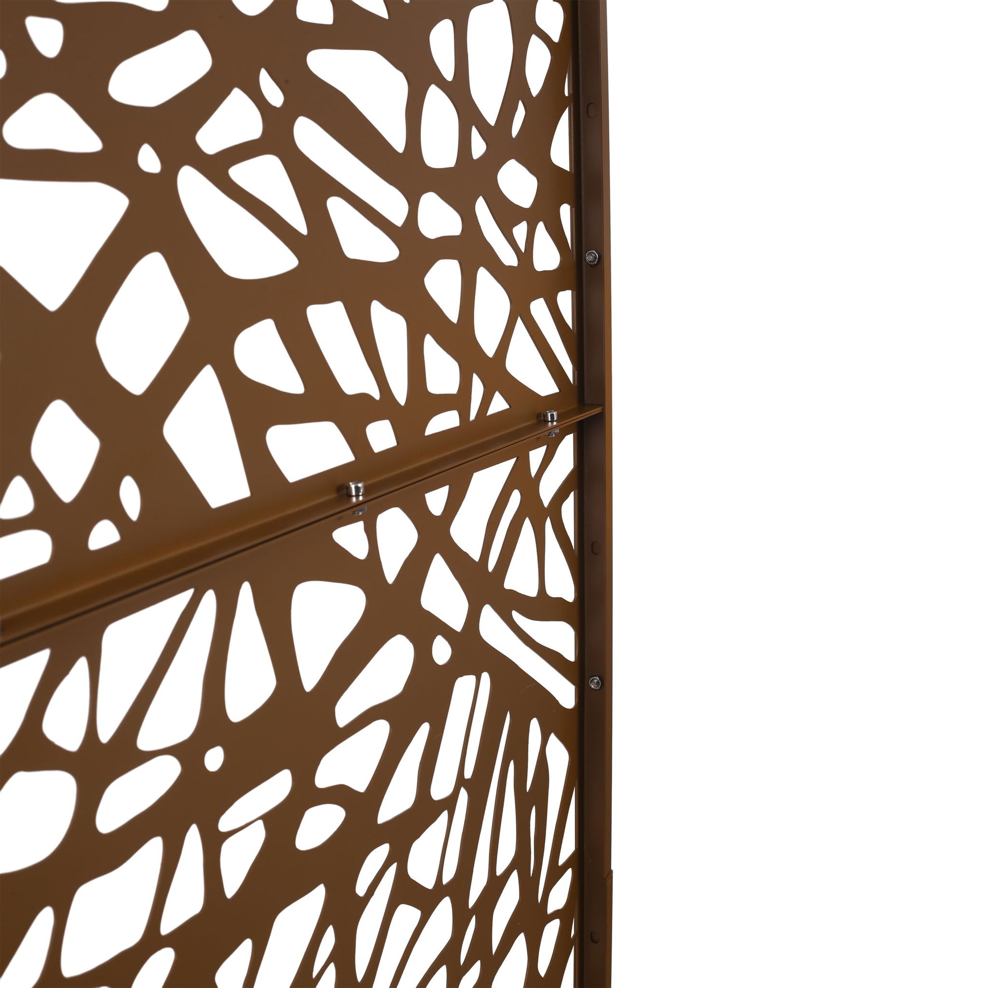 Outdoor & Indoor Metal Privacy Screen Freestanding Decorative Privacy Screen, Privacy Fence Panels For Deck Balcony Patio Garden - Brown