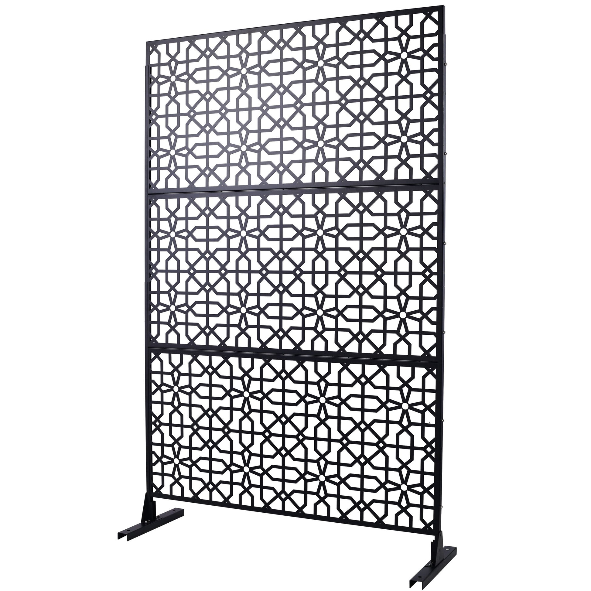 Outdoor & Indoor Privacy Screen Metal Privacy Screen Freestanding Decorative Privacy Screen Steel - Black
