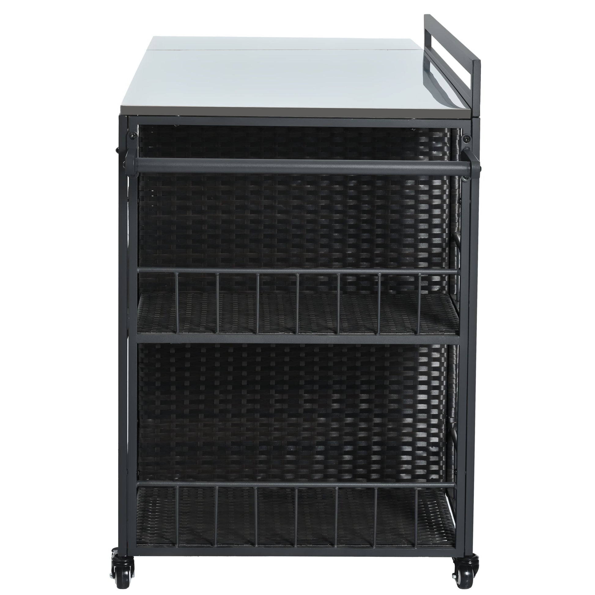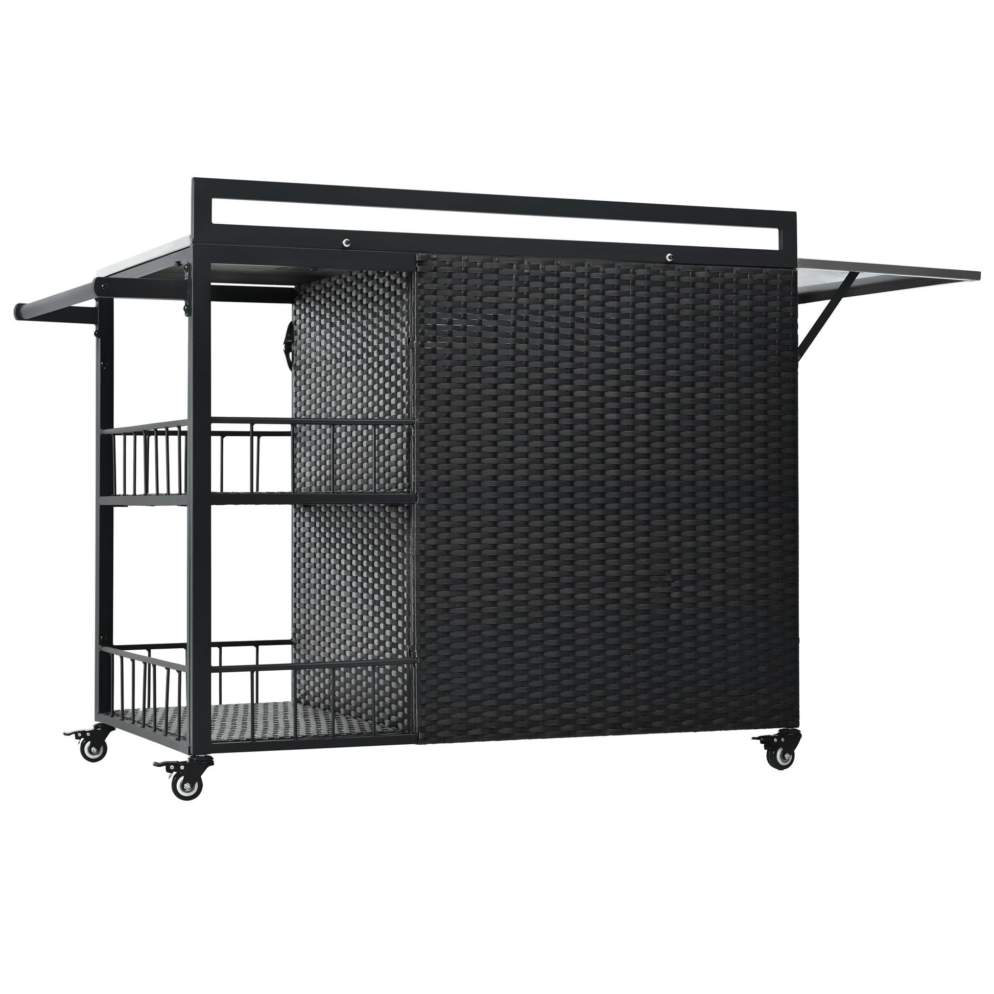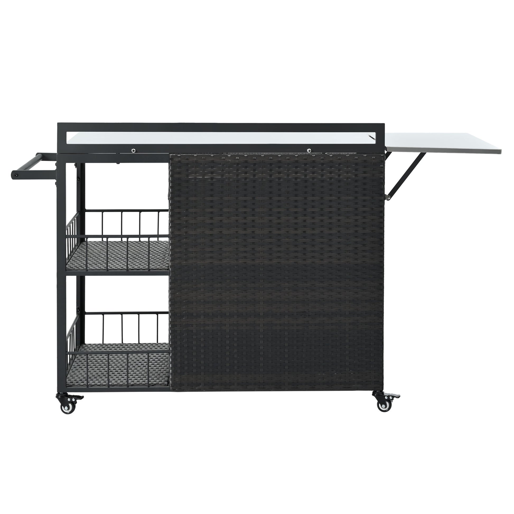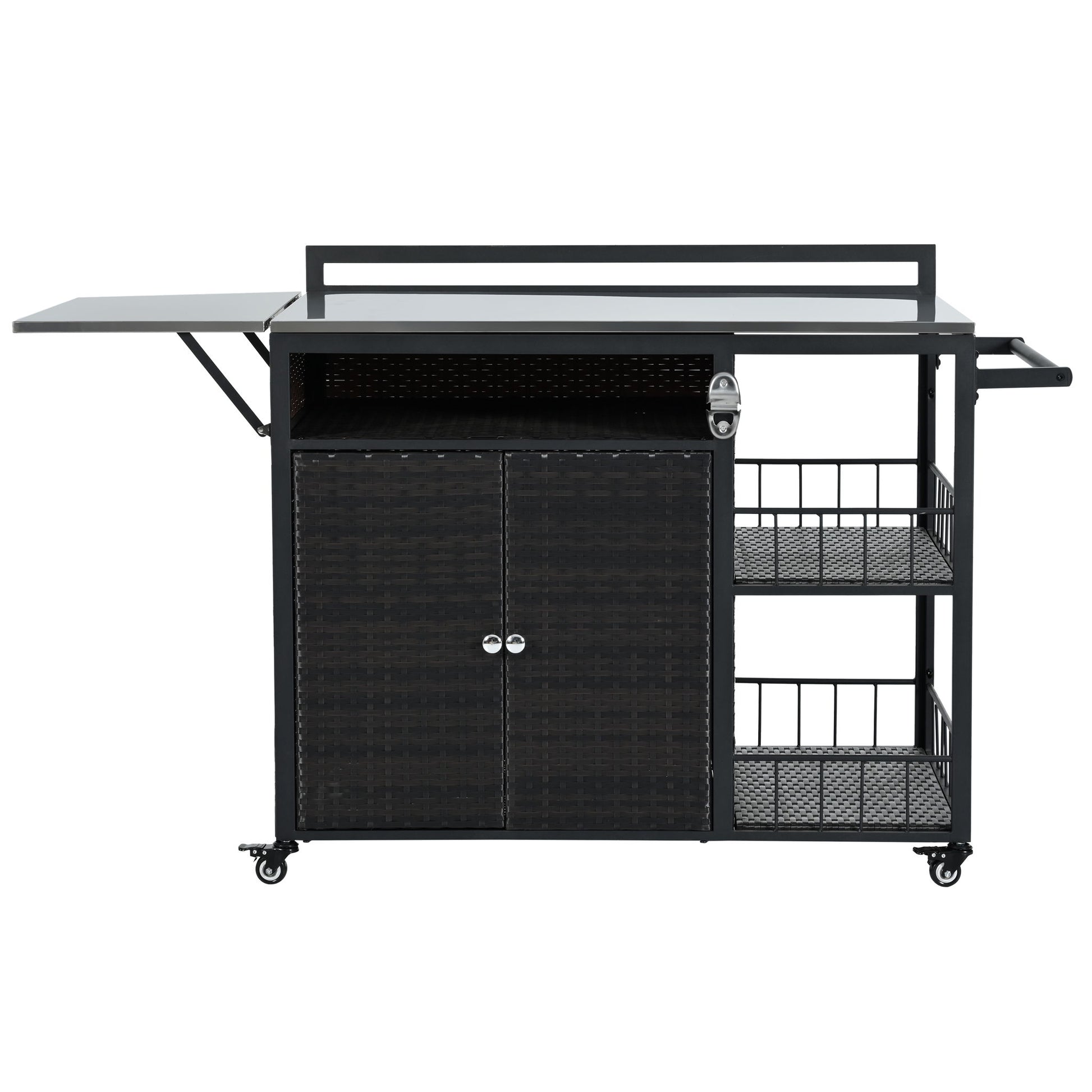 Outdoor Kitchen Island With Storage, Cooking Station, Grill Cart, Foldable Tabletop, And Bottle Opener - Dark Brown