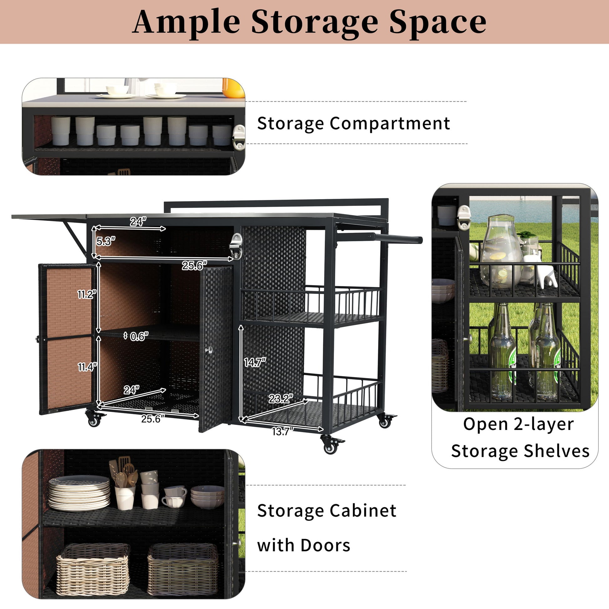 - Multifunctional Design: Serves as a mobile bar, buffet station, or storage unit for outdoor gatherings.