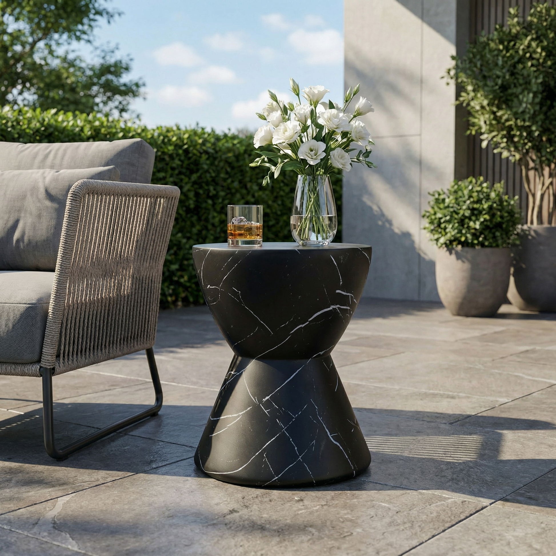 - Unique Hourglass Design: This side table features an hourglass shape that adds a modern touch to both indoor and outdoor spaces, enhancing the overall decor with its distinctive silhouette.