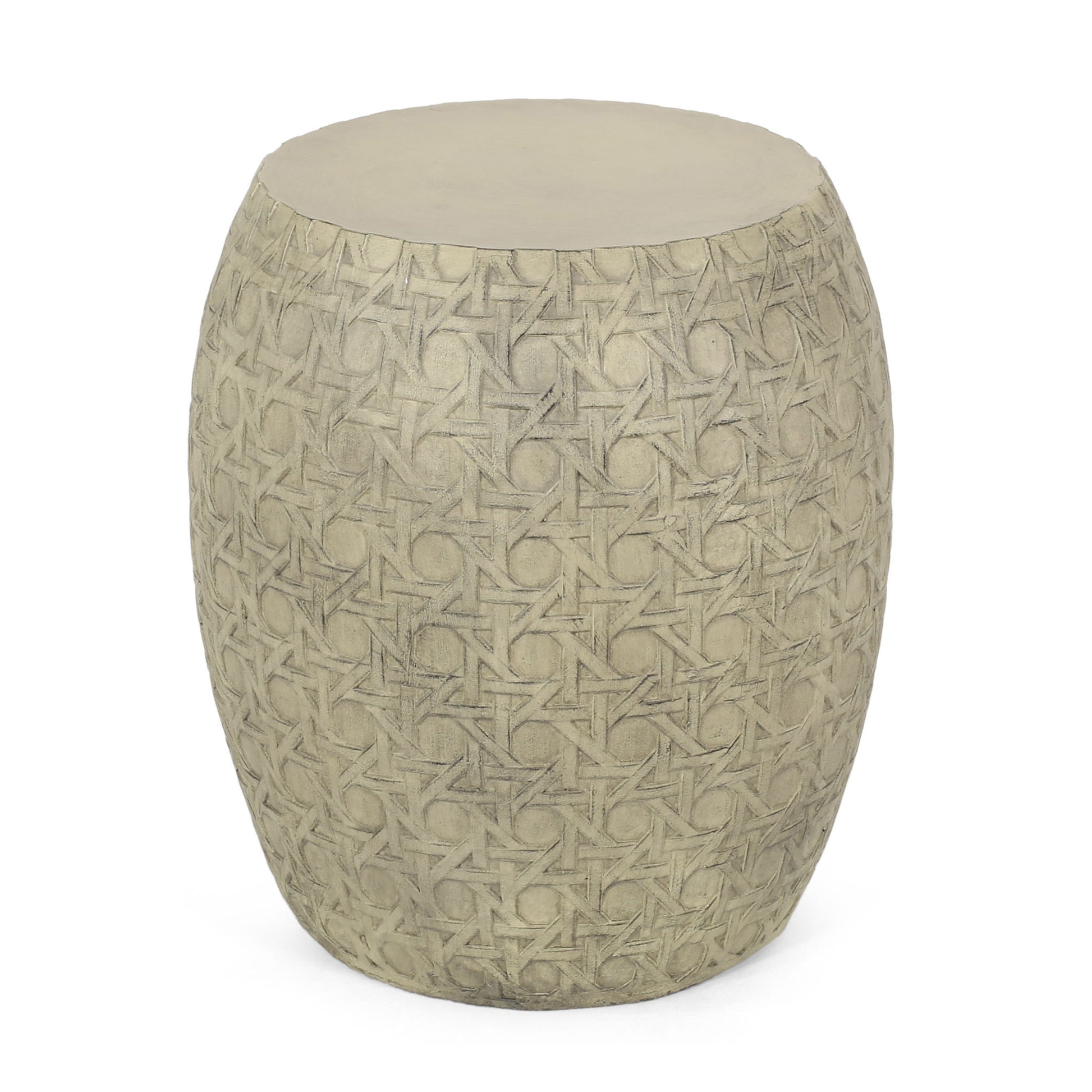 - A TOUCH OF PERSONALITY: Bring your outdoor space to life with our end table that features a delightful barrel structure and intricate cane wicker pattern. With charming aesthetics, this side table will be sure to enliven any home.