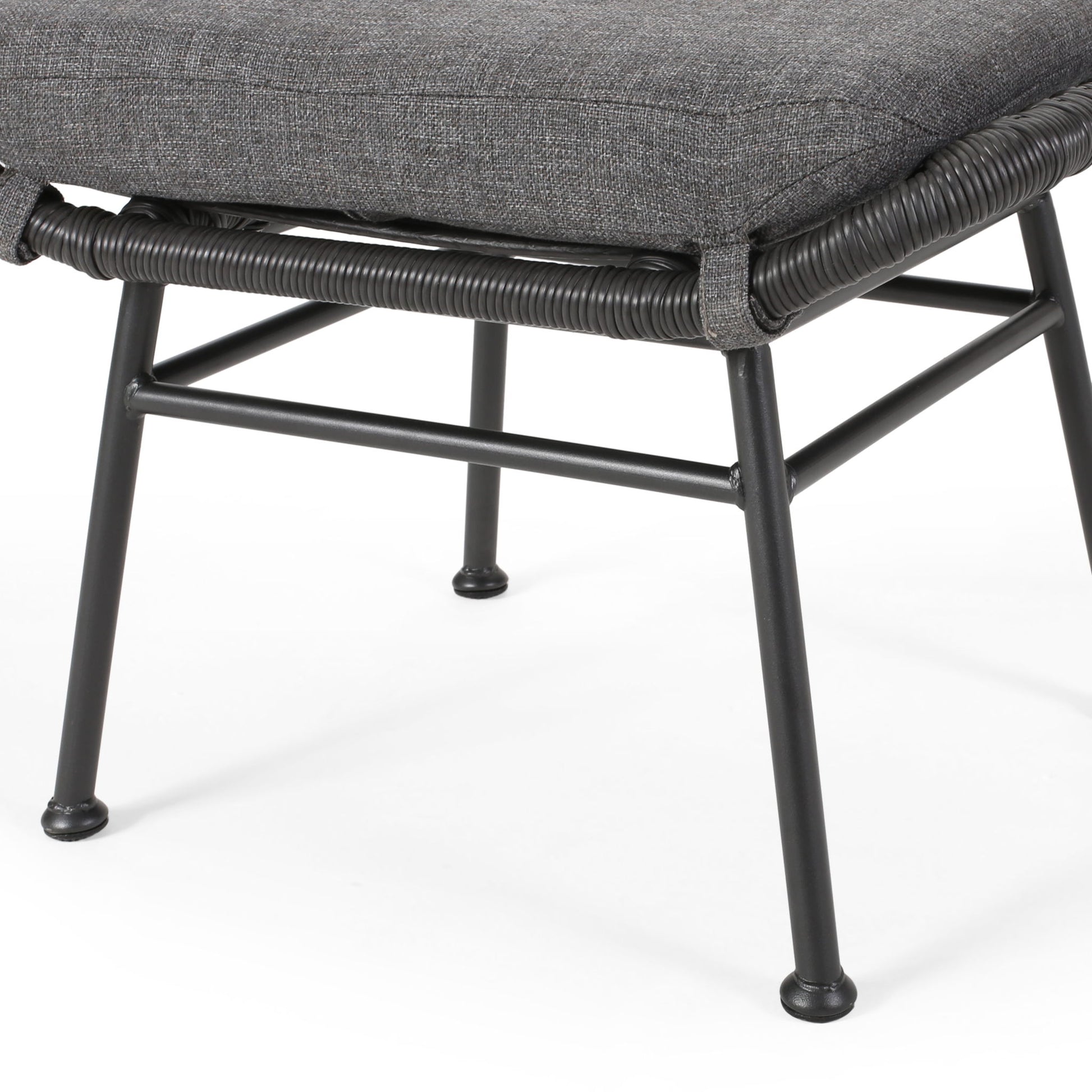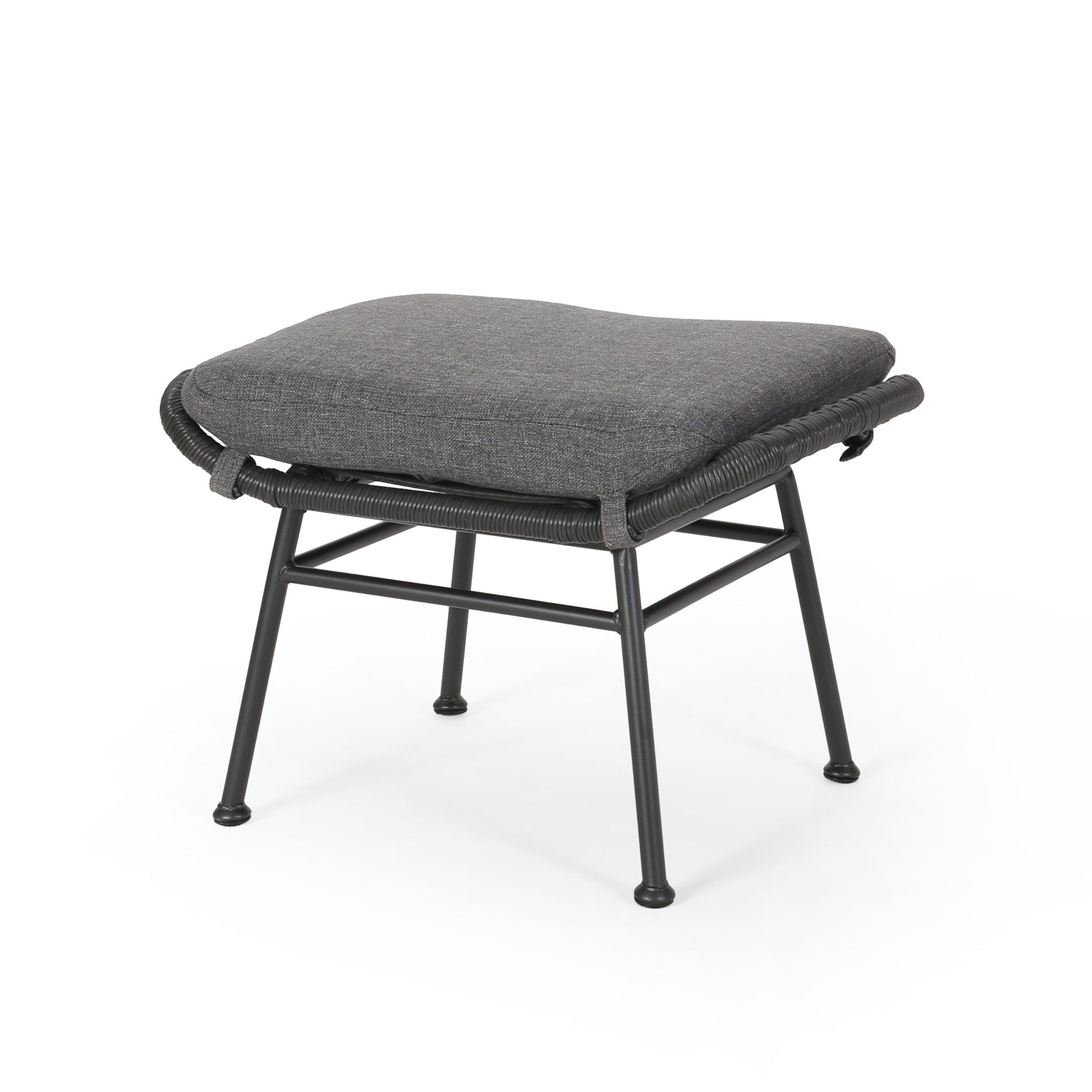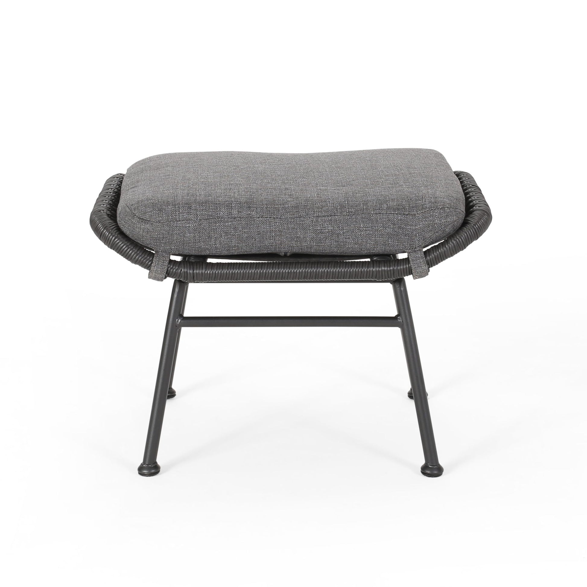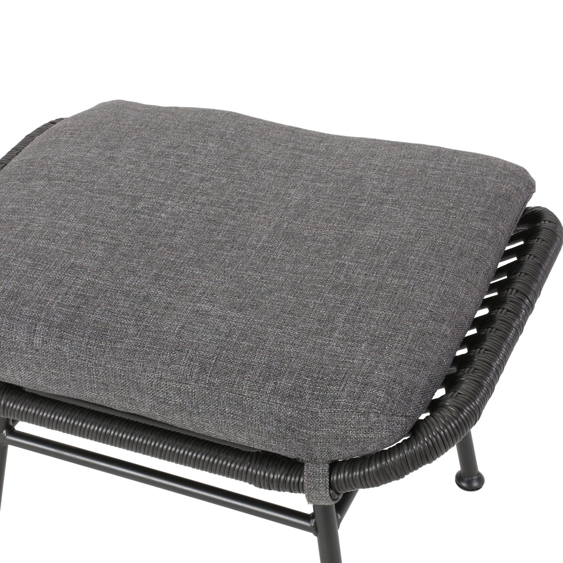 Outdoor Modern Boho Wicker Ottoman With Cushions (Set of 2) - Gray