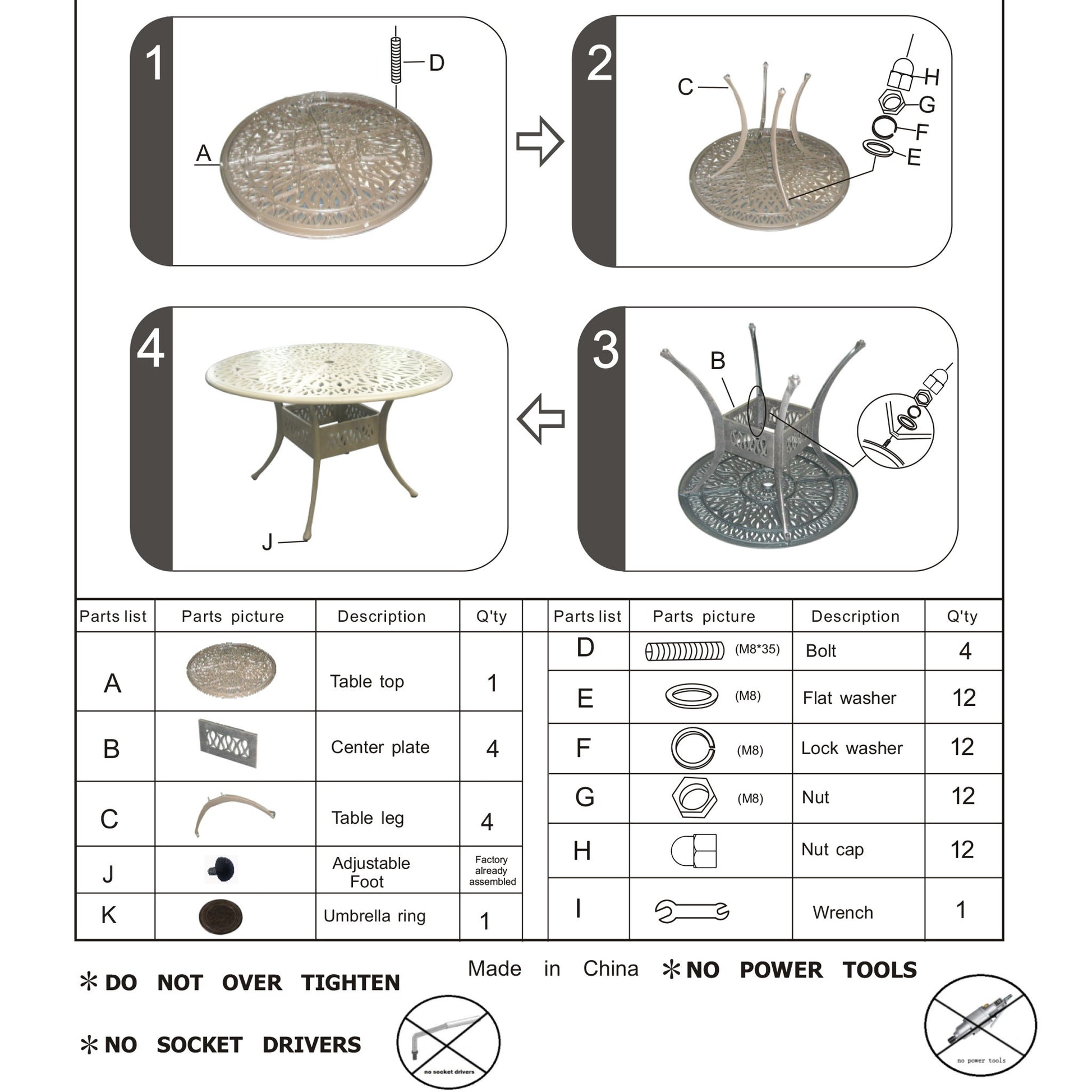 - SPACIOUS SEATING: With a generous size of 48" round, this outdoor dining table comfortably seats four people, making it perfect for intimate gatherings, family meals, and entertaining guests.
