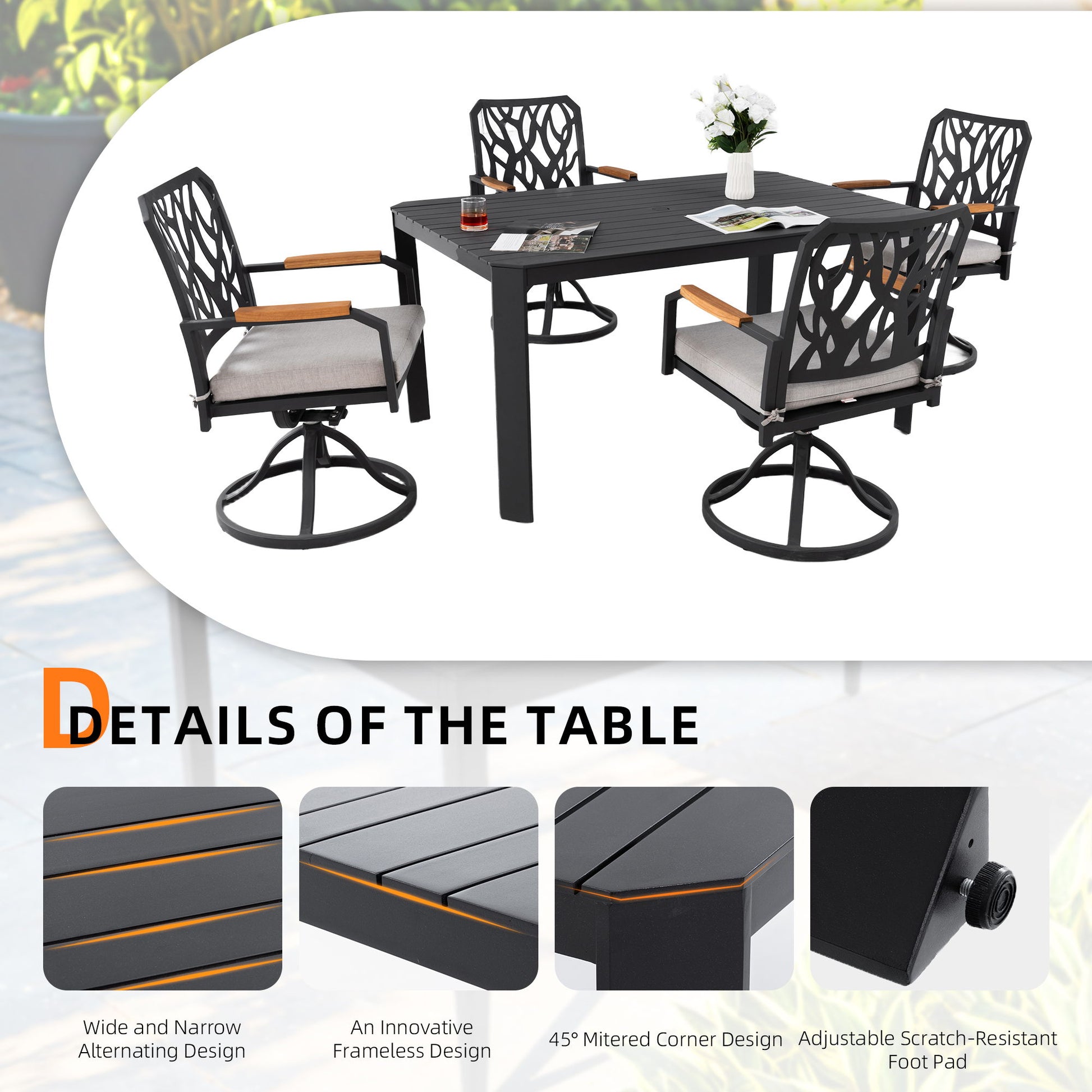 5 Pieces Outdoor Patio Aluminum Furniture Set, Rectangular Table With Umbrella Hole - Bourbon Brown