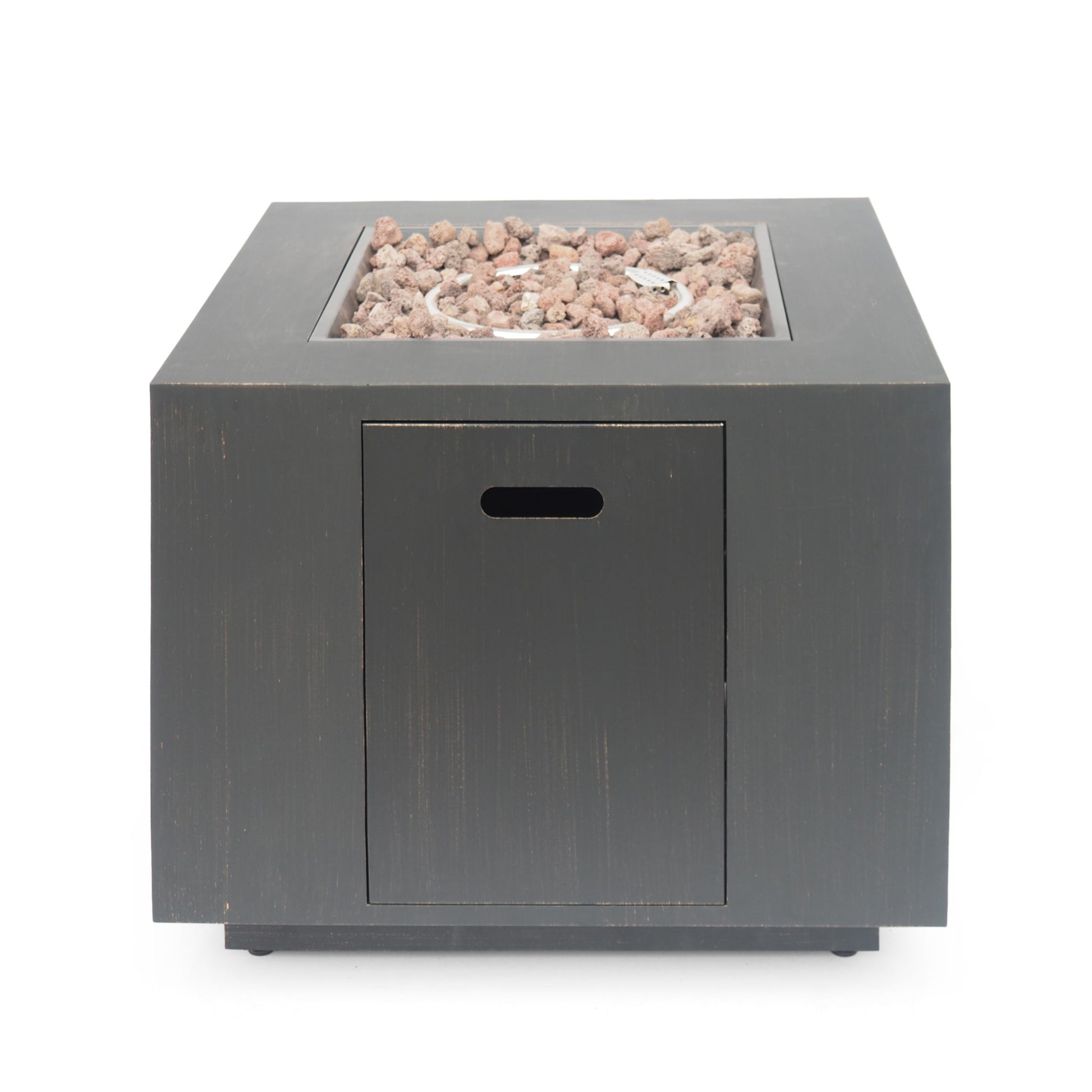 Outdoor Iron Square Propane Fire Pit With Tank Space - Brushed / Brown