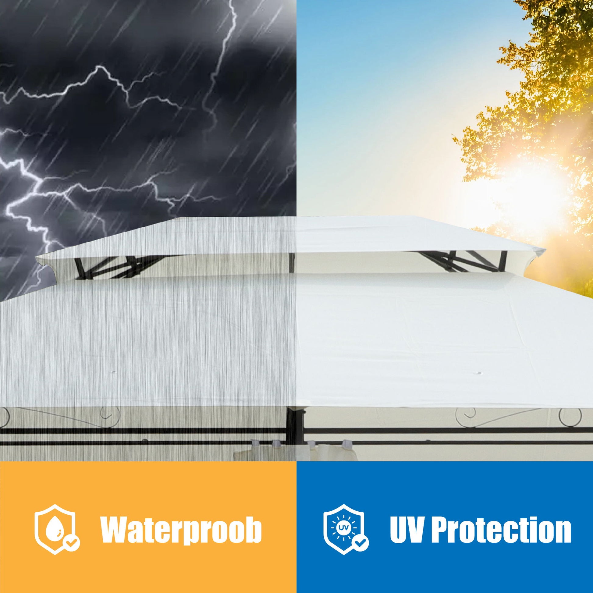 - All-Weather Fabric: High-density polyester roof provides waterproof and sunscreen protection while remaining breathable for comfortable year-round use.