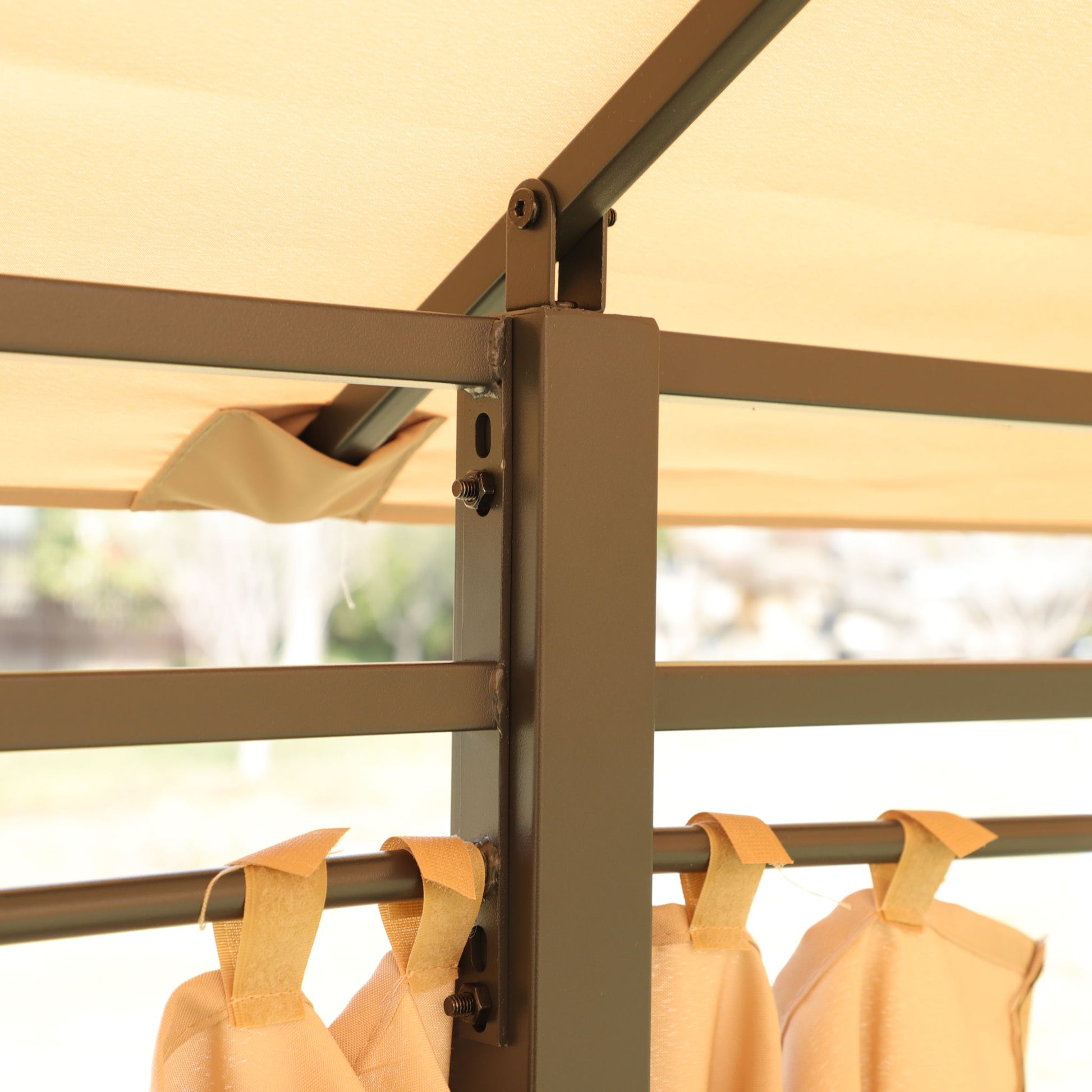 - Spacious Outdoor Shelter: Powder-coated dark steel frame (10 lbs snow load capacity) provides shade for 3-4 people with furniture space, includes sidewalls for added protection.