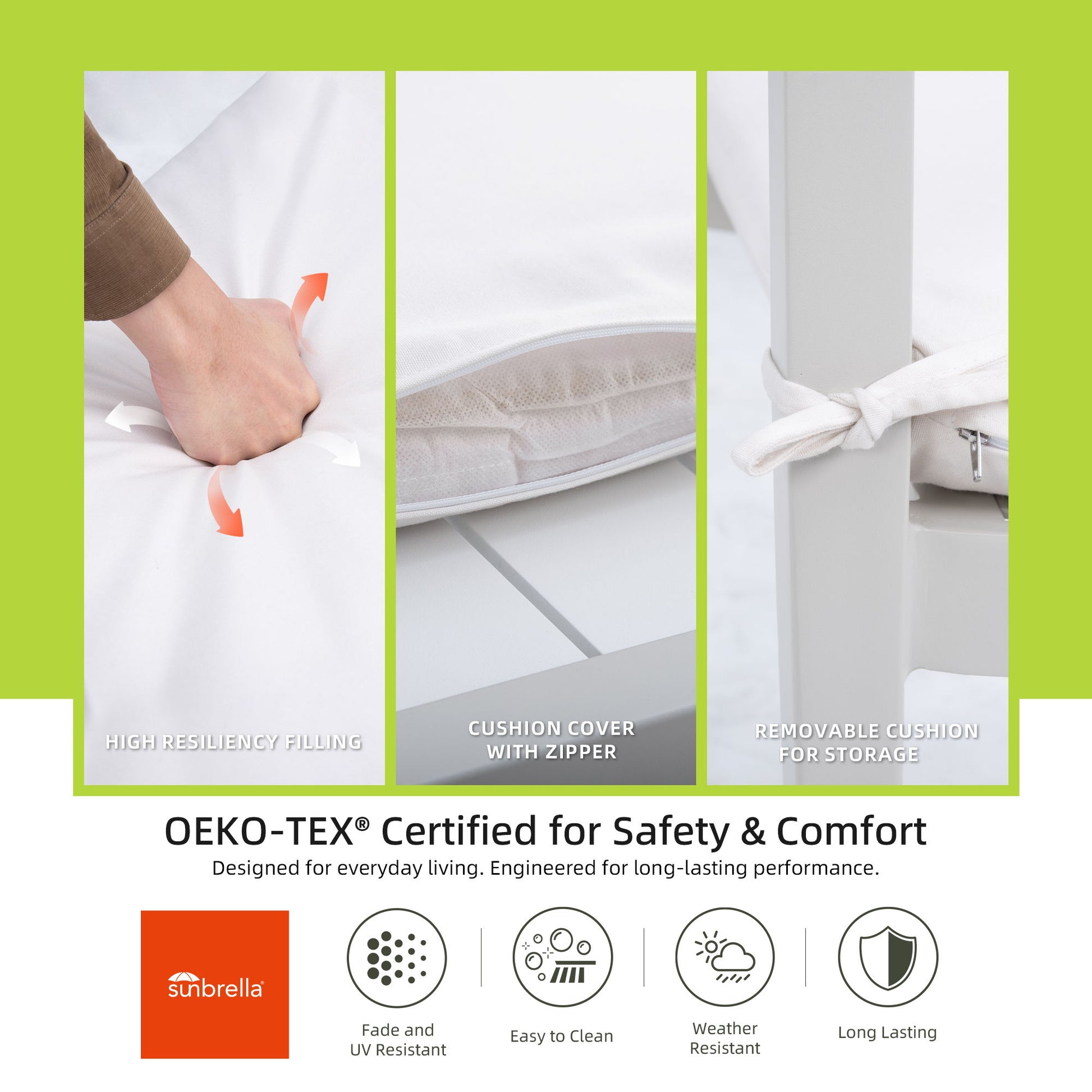 - Weather-Resistant Sunbrella Cushion: Soft yet durable fabric; resists sun, rain, snow, and humidity, and is easy to clean with mild soap or diluted bleach