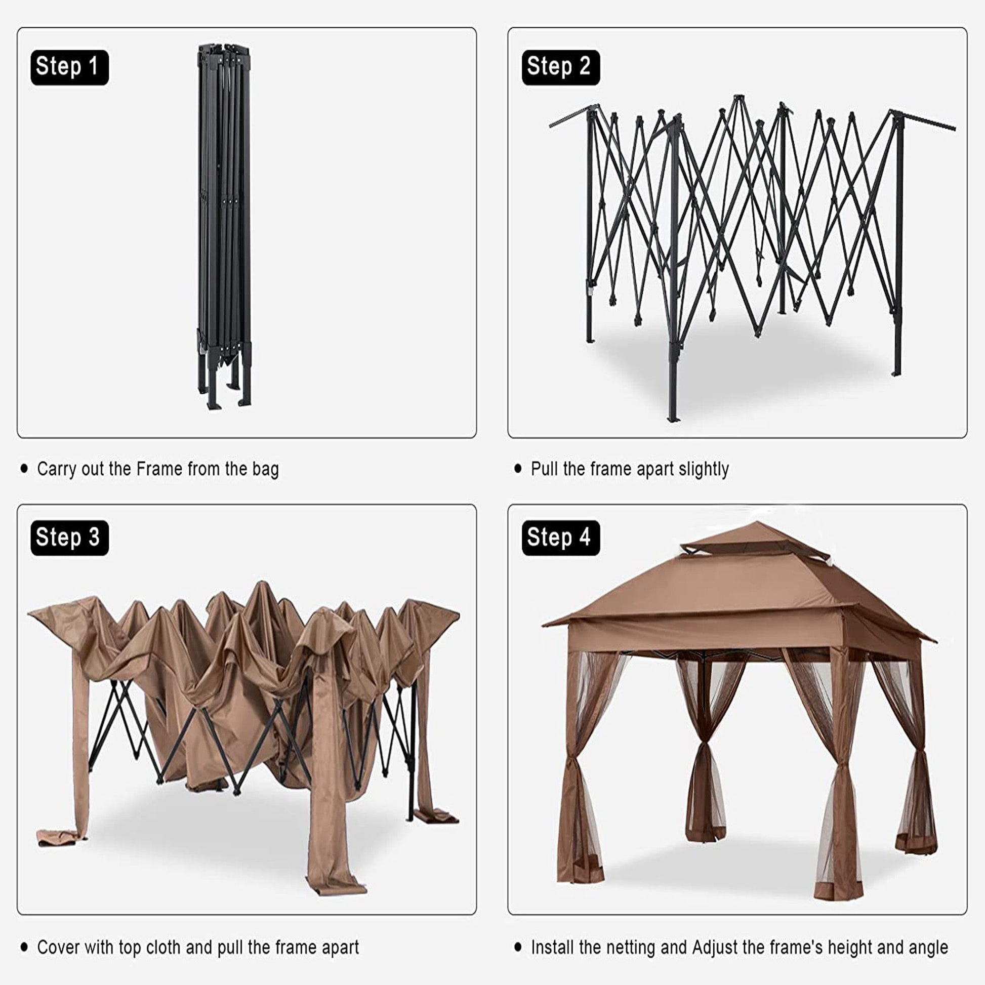 Outdoor Pop Up Gazebo Canopy 11 X 11 Ft With 2 Tier Soft Top And Removable Zipper Netting - Coffee