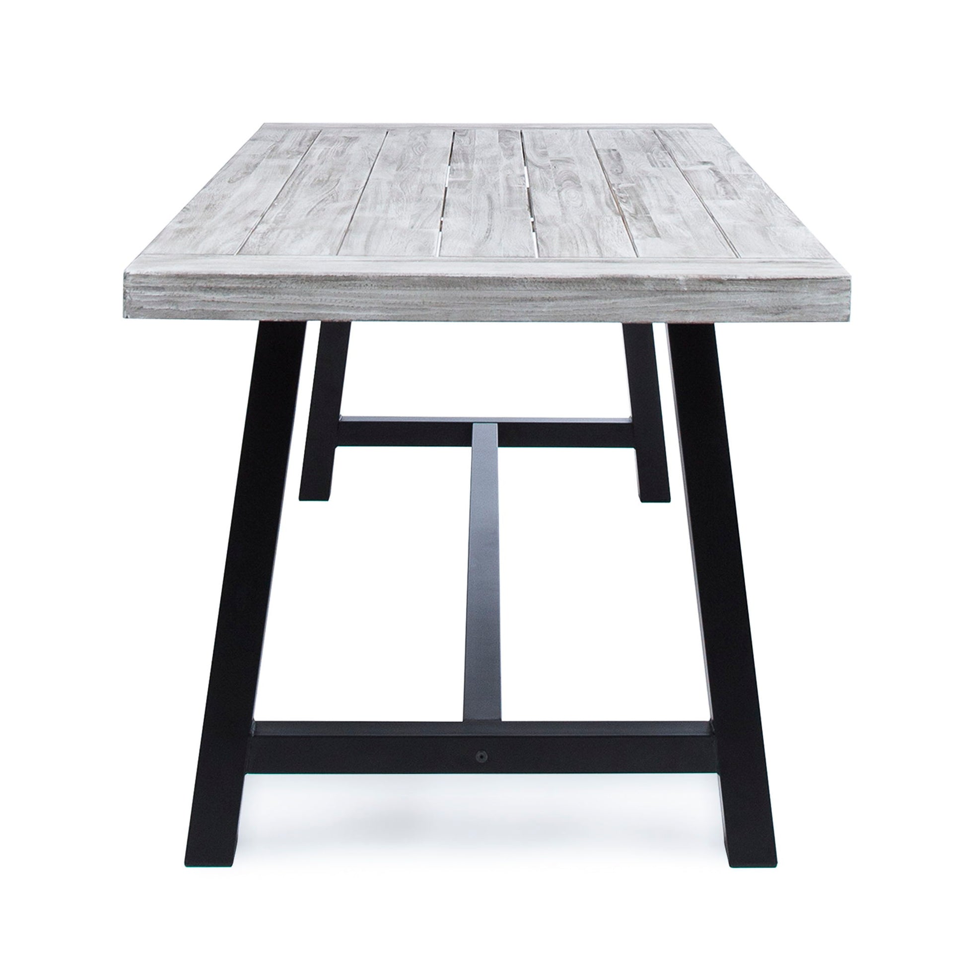 Rustic Outdoor Sandblast Acacia Wood Dining Table - Light Gray / Black