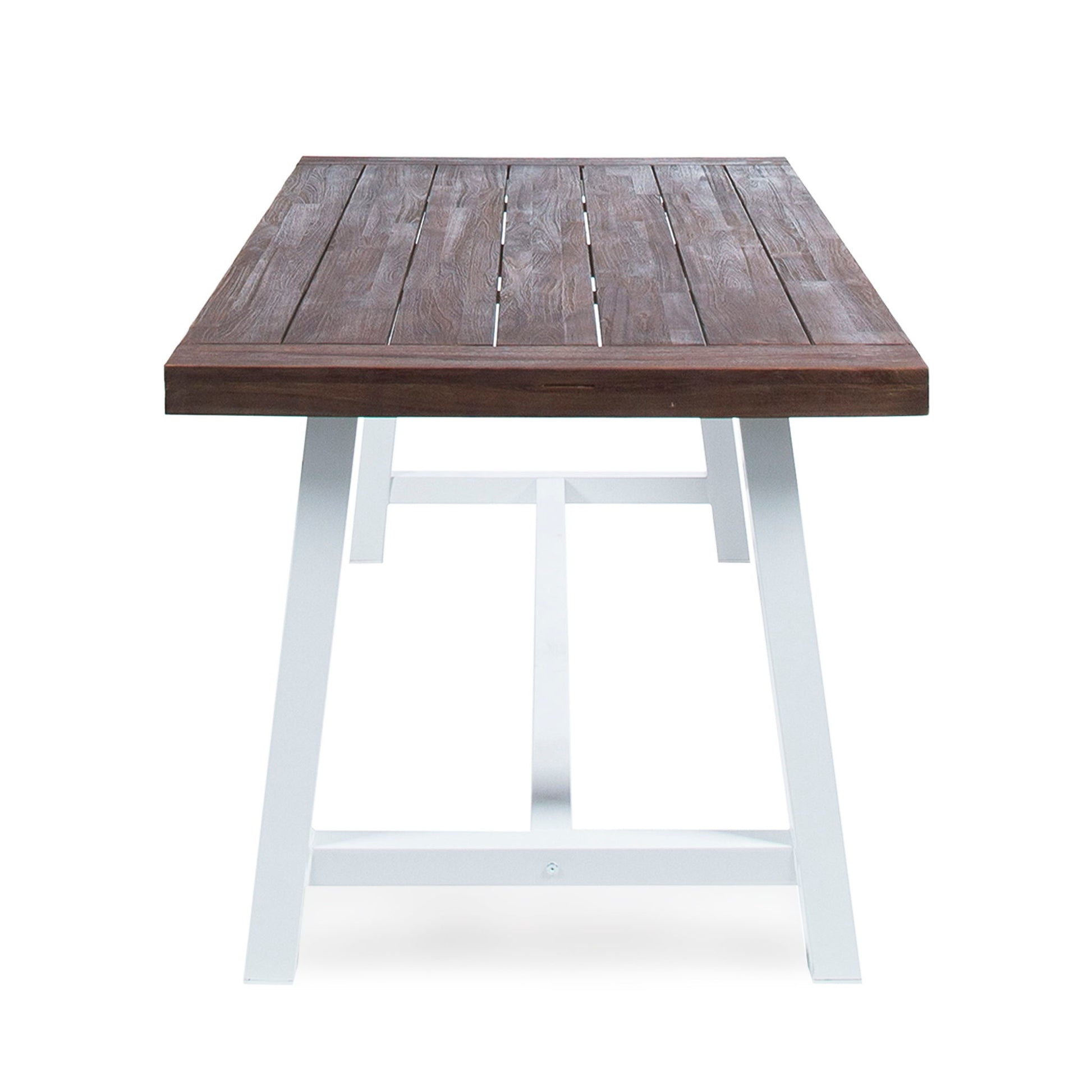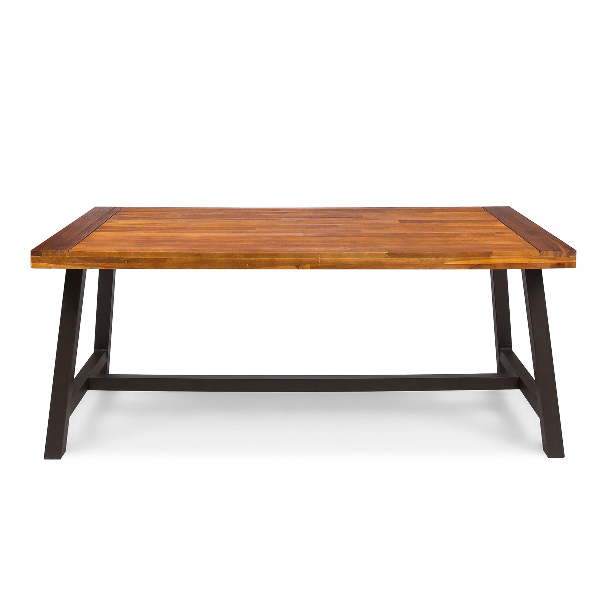 Outdoor Sandblast Acacia Wood Dining Table With Rustic Metal Frame, Weather Resistant - Brown White