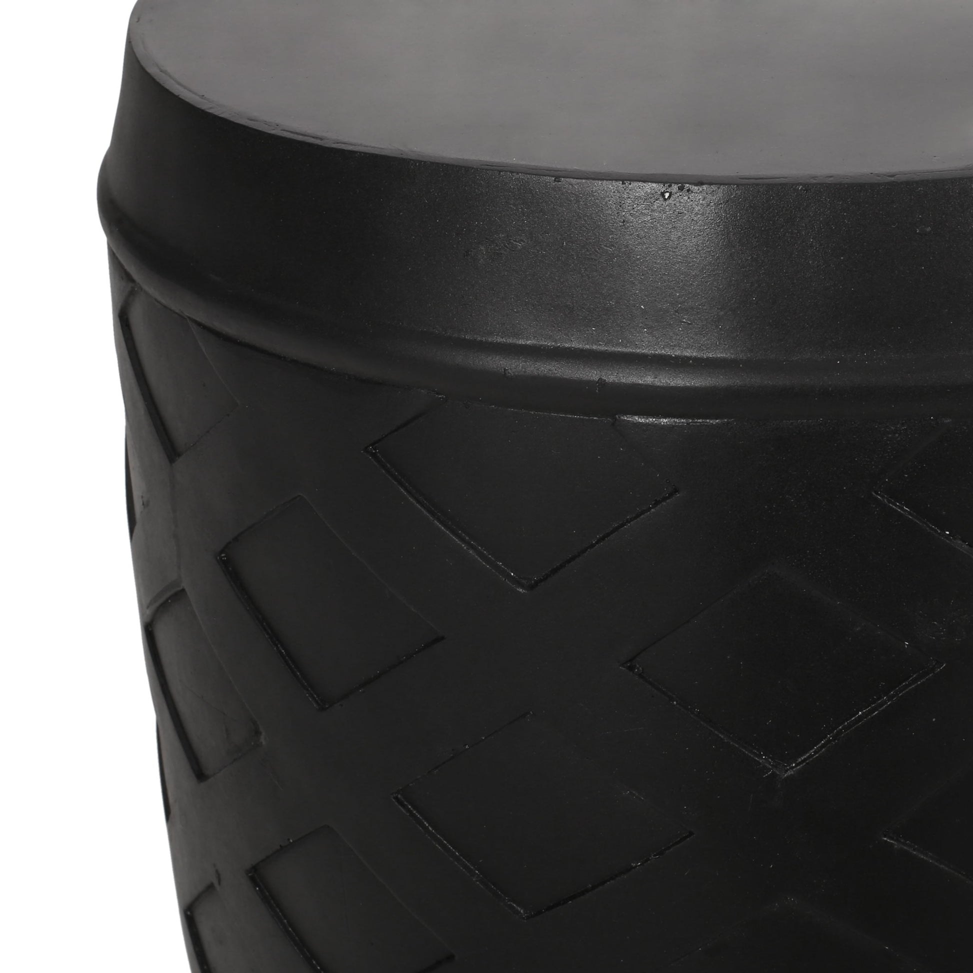 Outdoor Side Table With Lattice Design And Round Top - Black